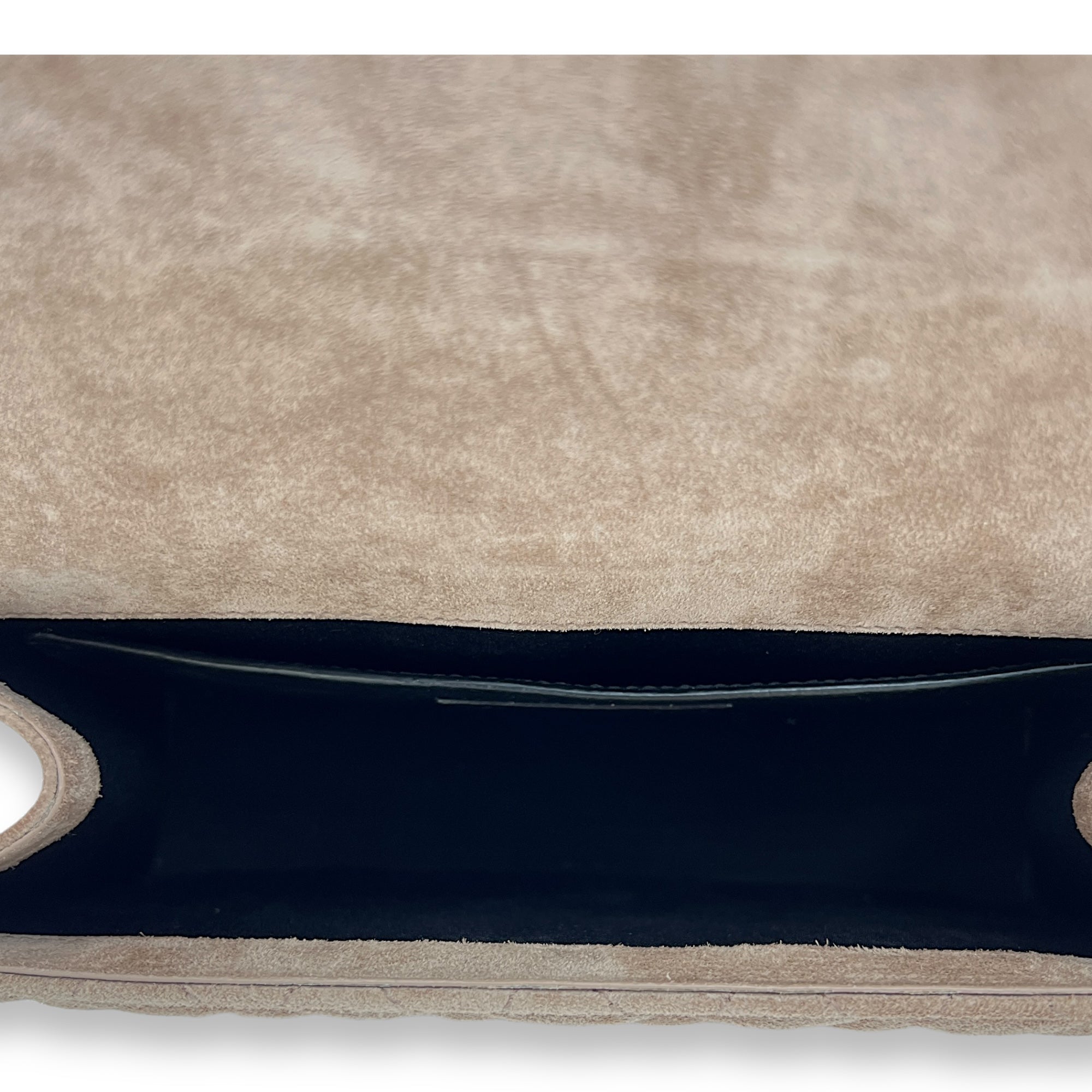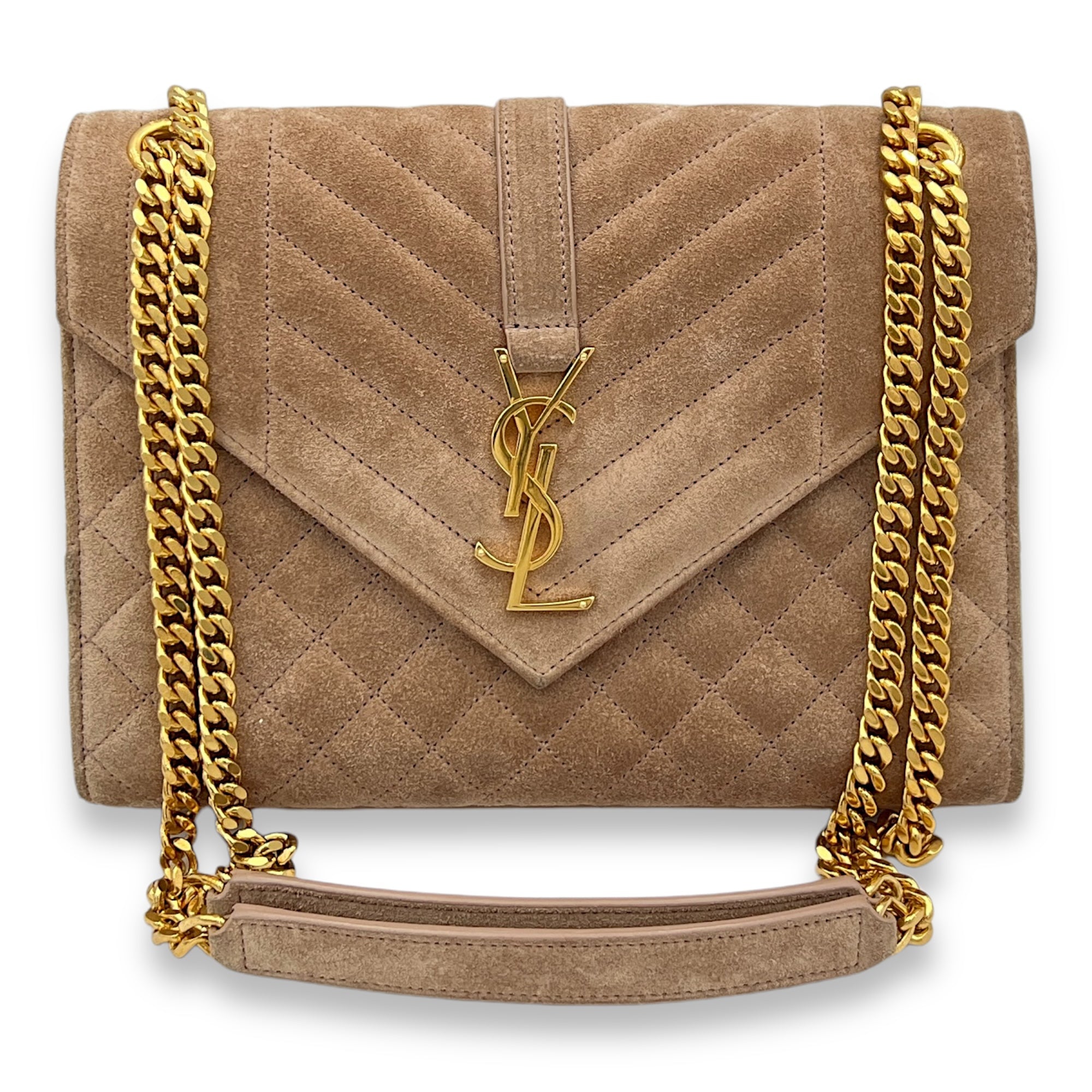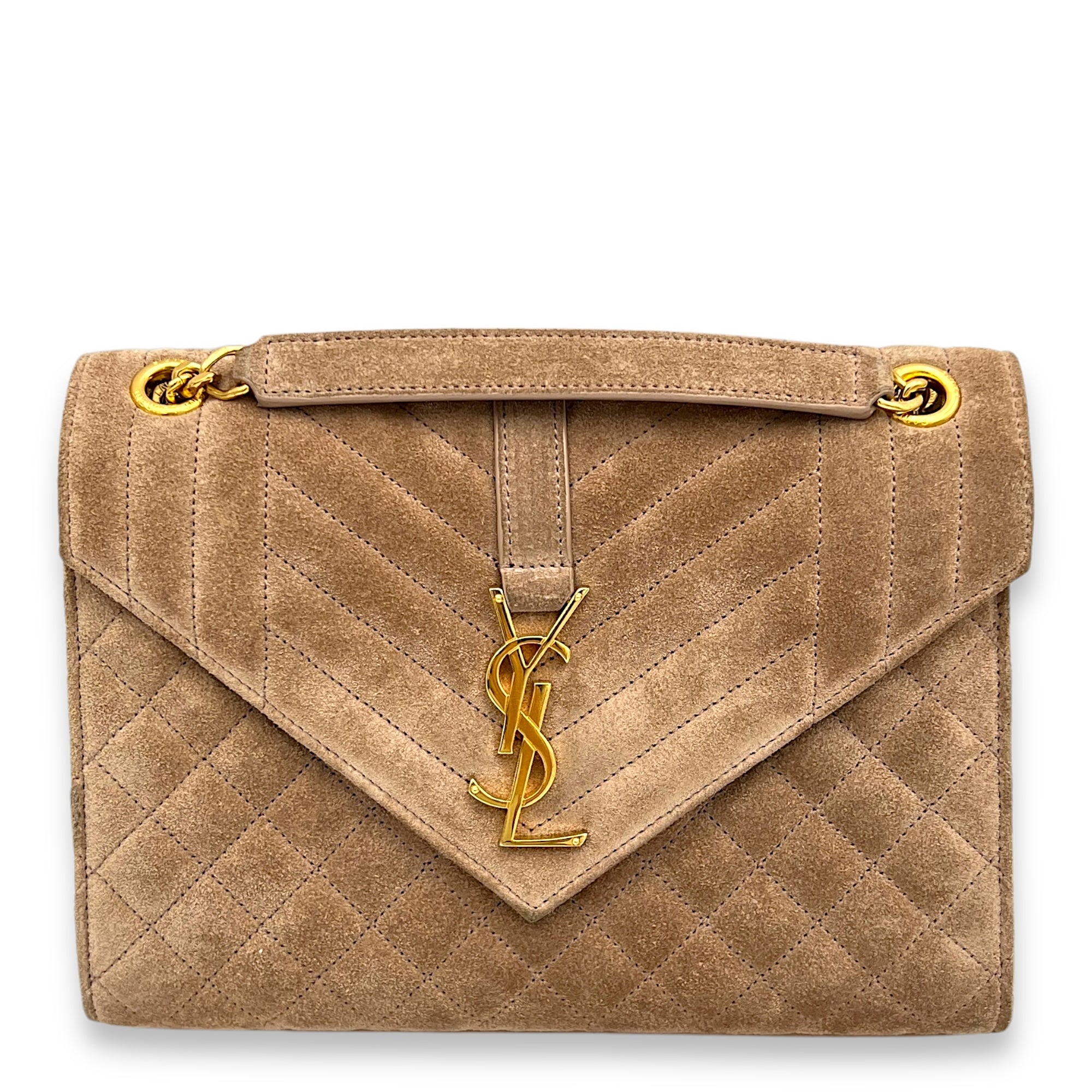 Triquilt Envelope Medium Gold Shoulder Bag in Suede Leather, Gold hardware