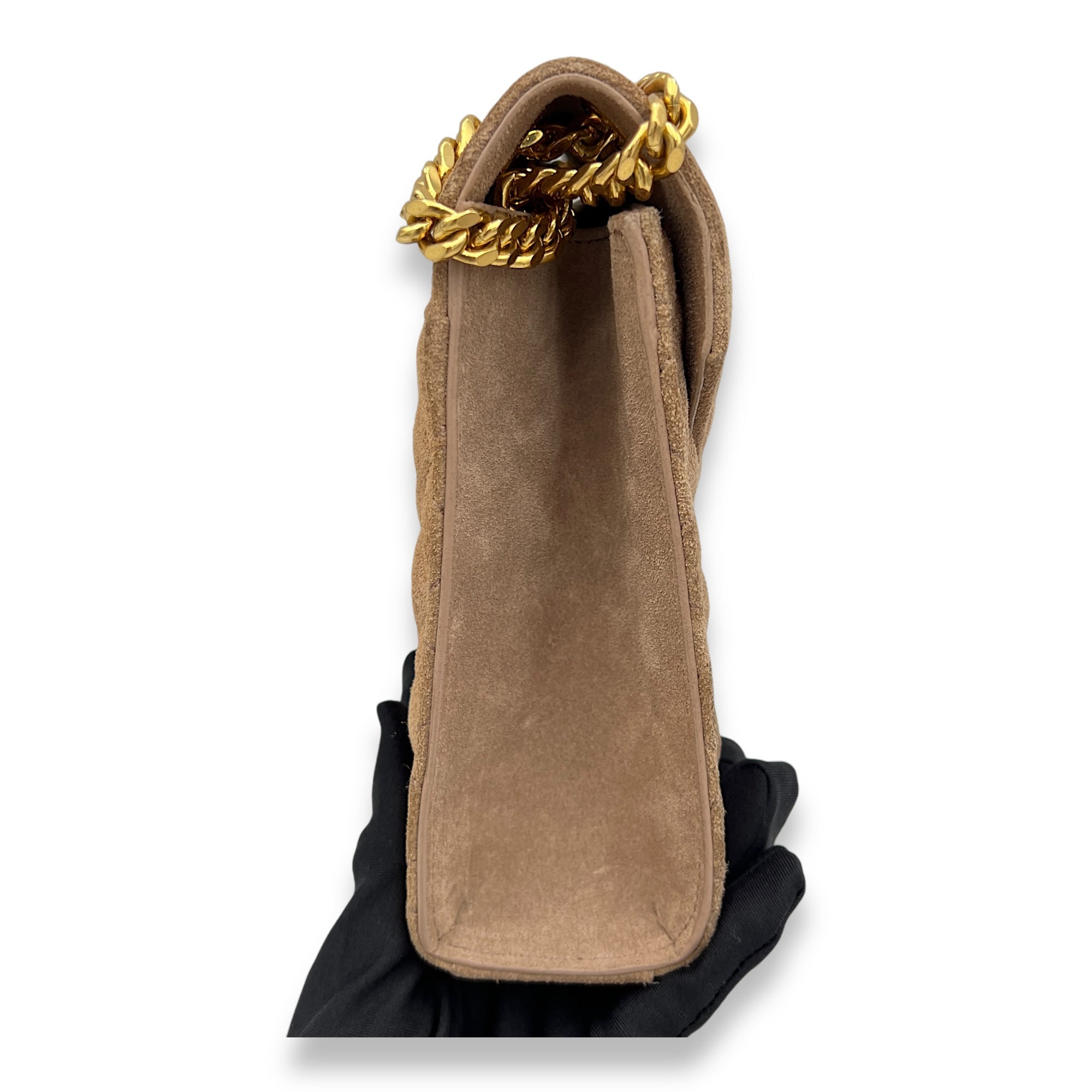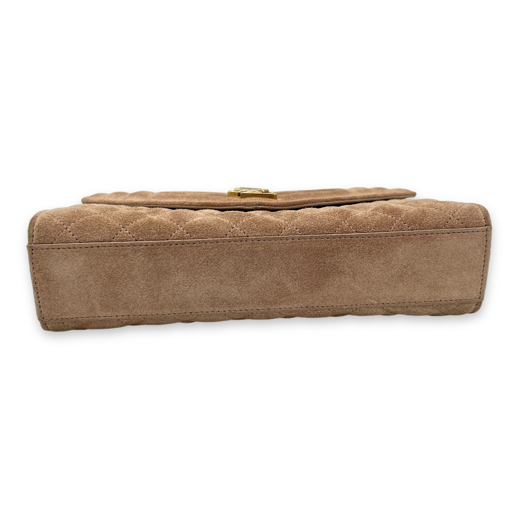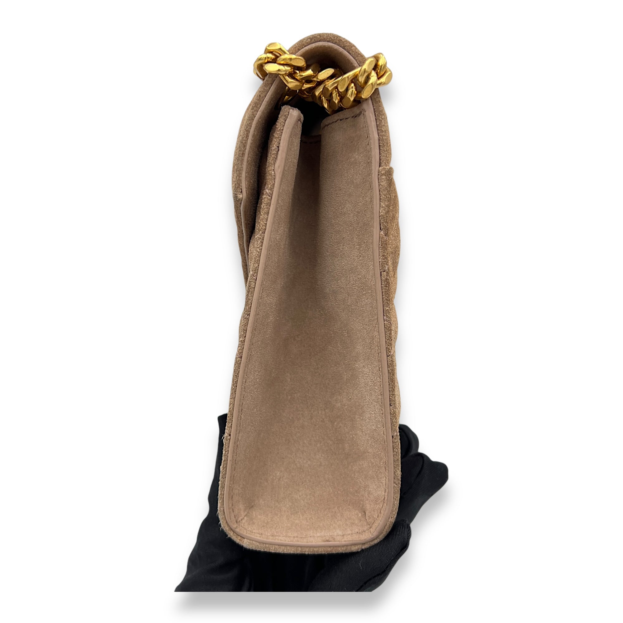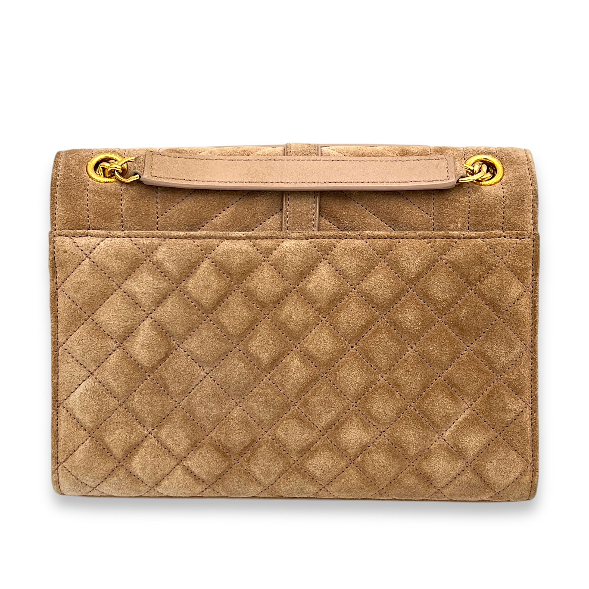 Triquilt Envelope Medium Gold Shoulder Bag in Suede Leather, Gold hardware
