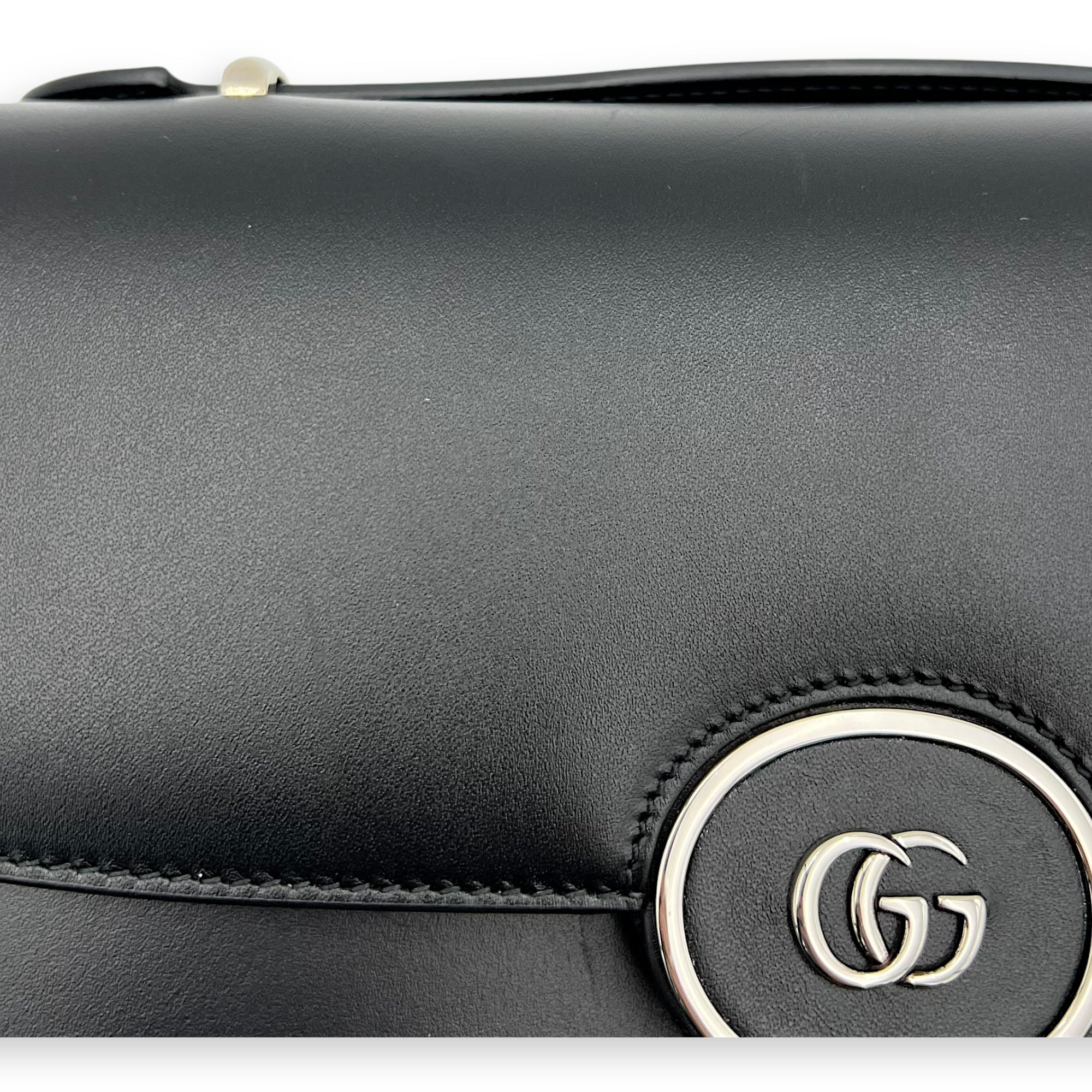 Petite GG Small Black Crossbody Bag in Calfskin, Silver hardware