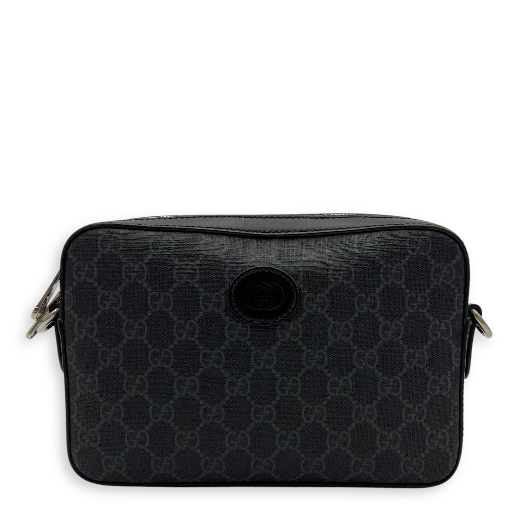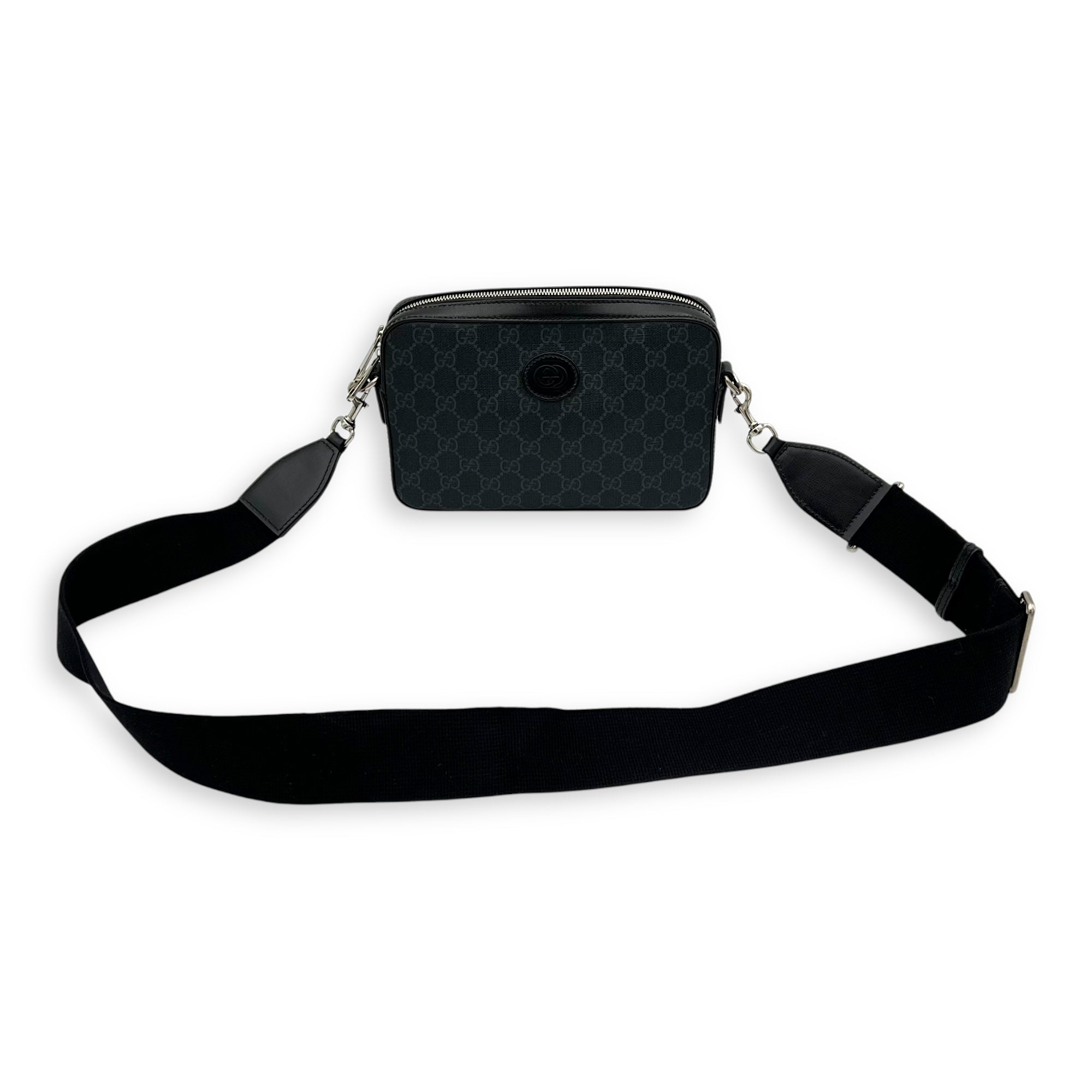 Bags Gucci GG Supreme Black Crossbody Bag in Coated Canvas, Silver hardware Very Good Condition Black Crossbody Bag Men Unisex