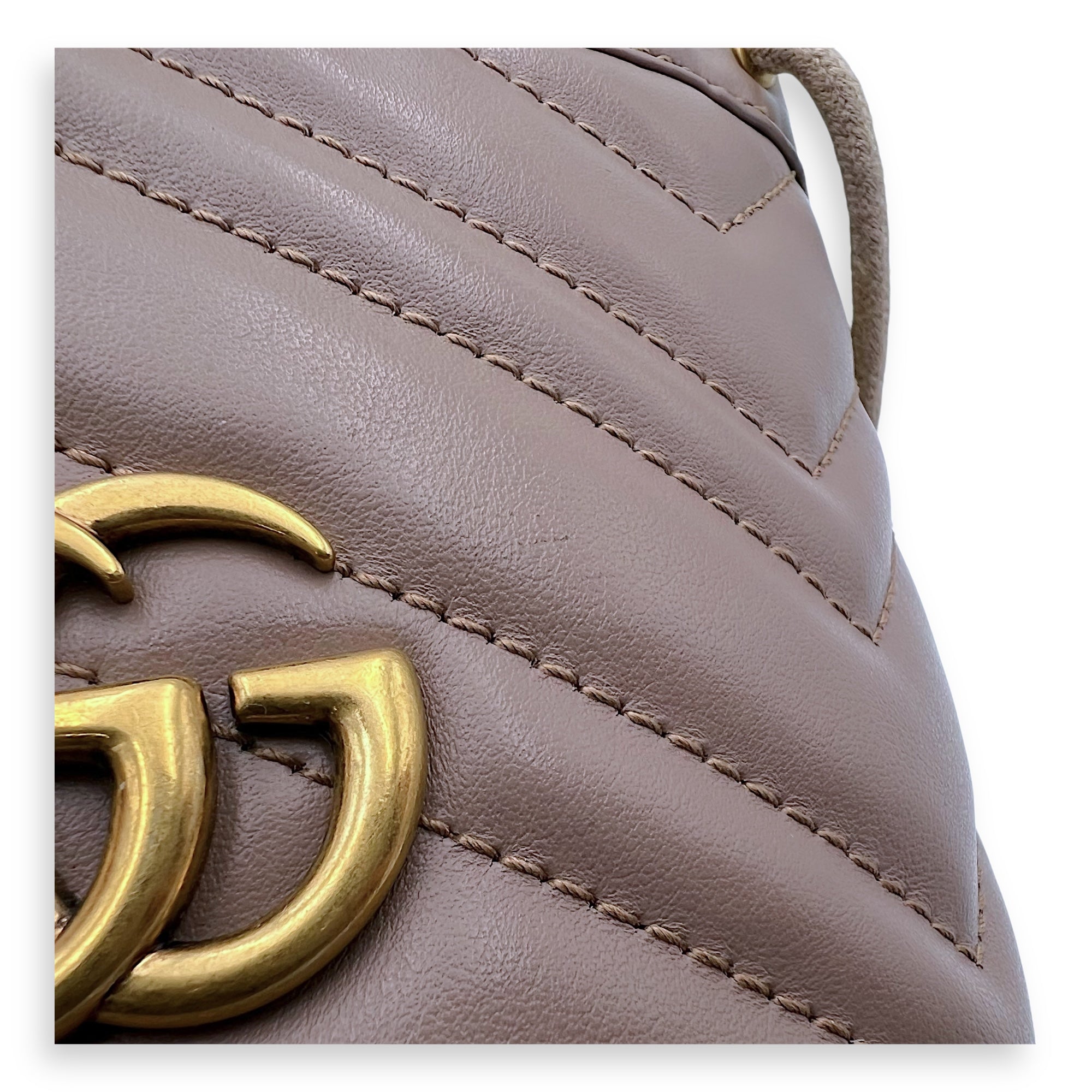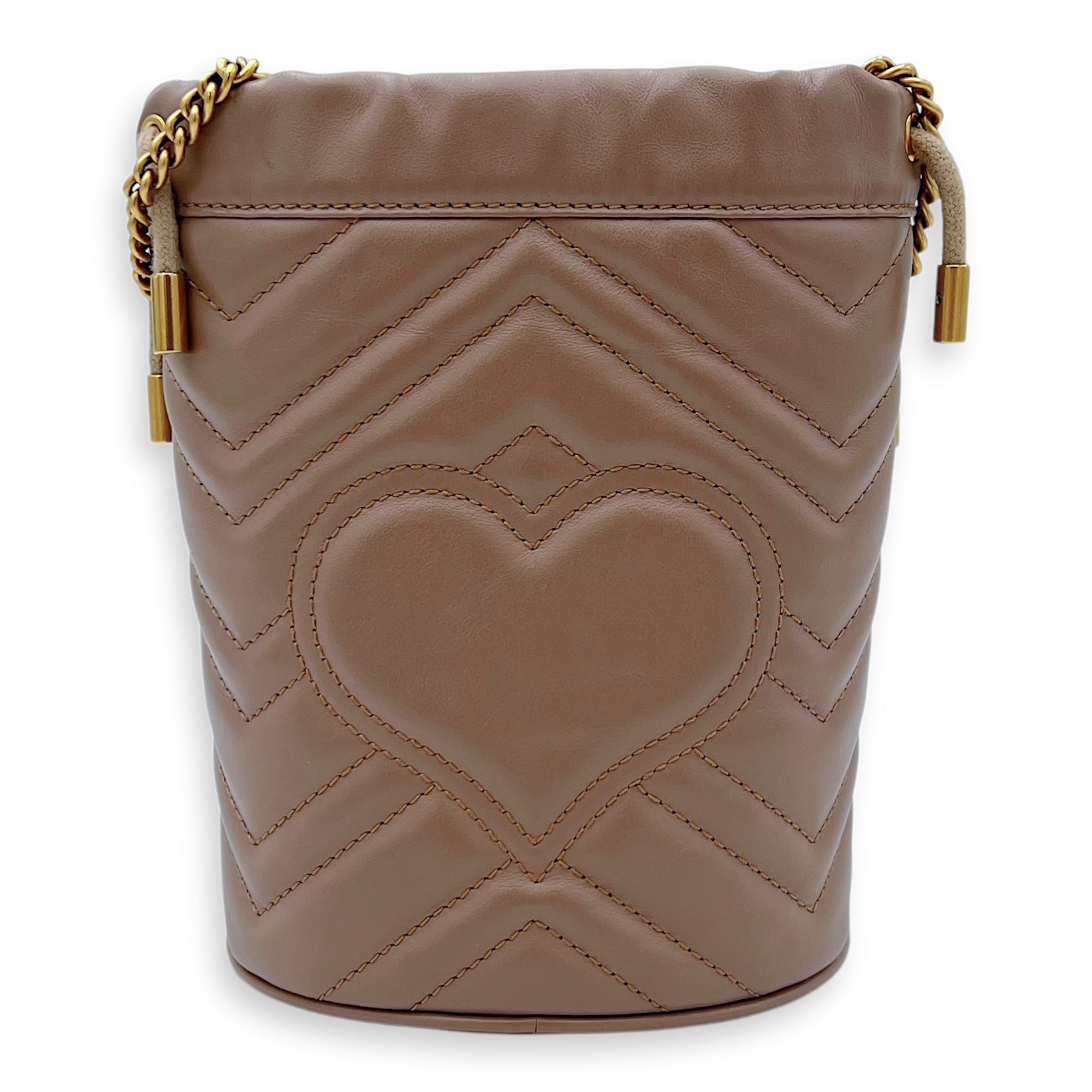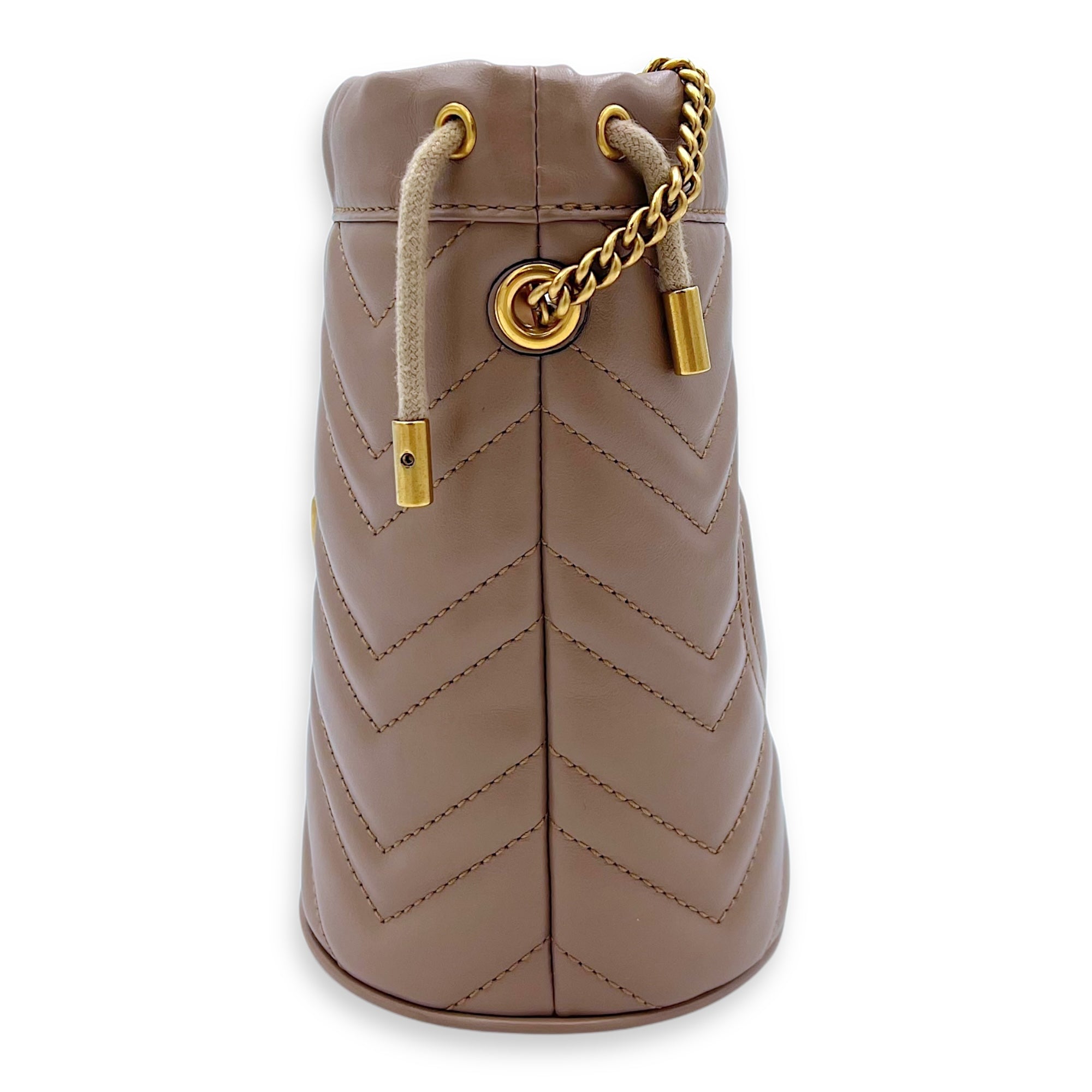 Bags Gucci GG Marmont Bucket Bag Beige in Calfskin, Gold hardware Very Good Condition Beige Bucket Bag Women Lady Girl