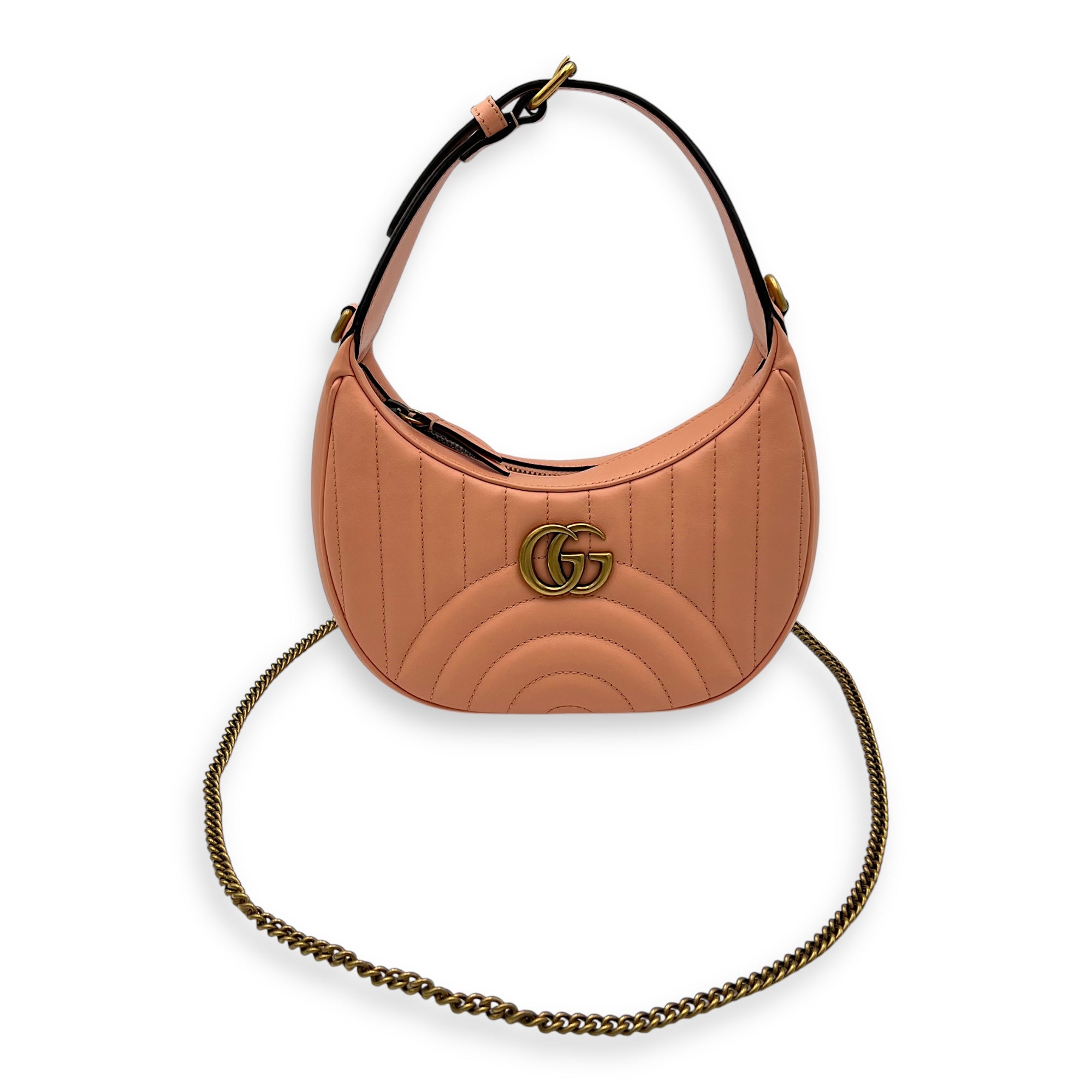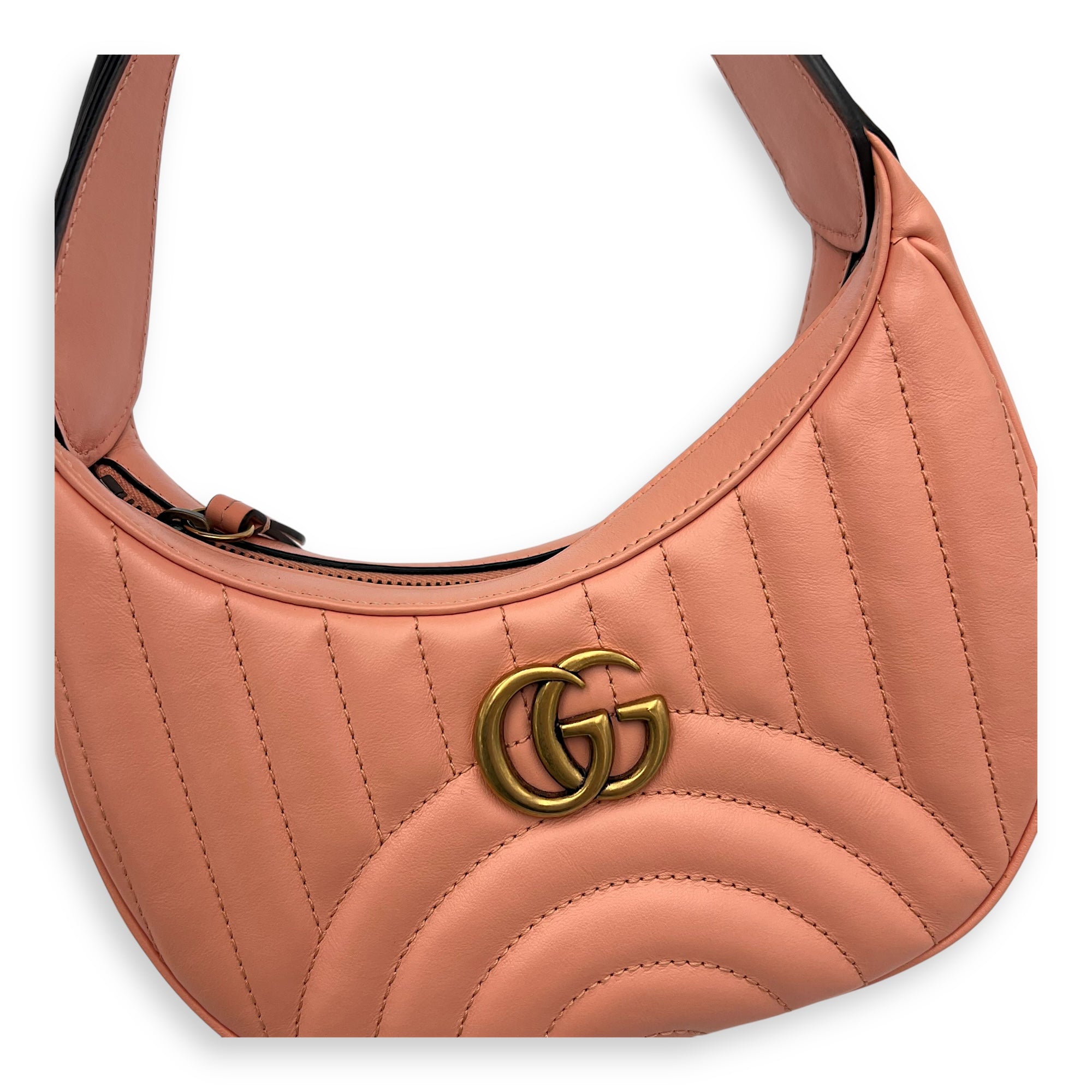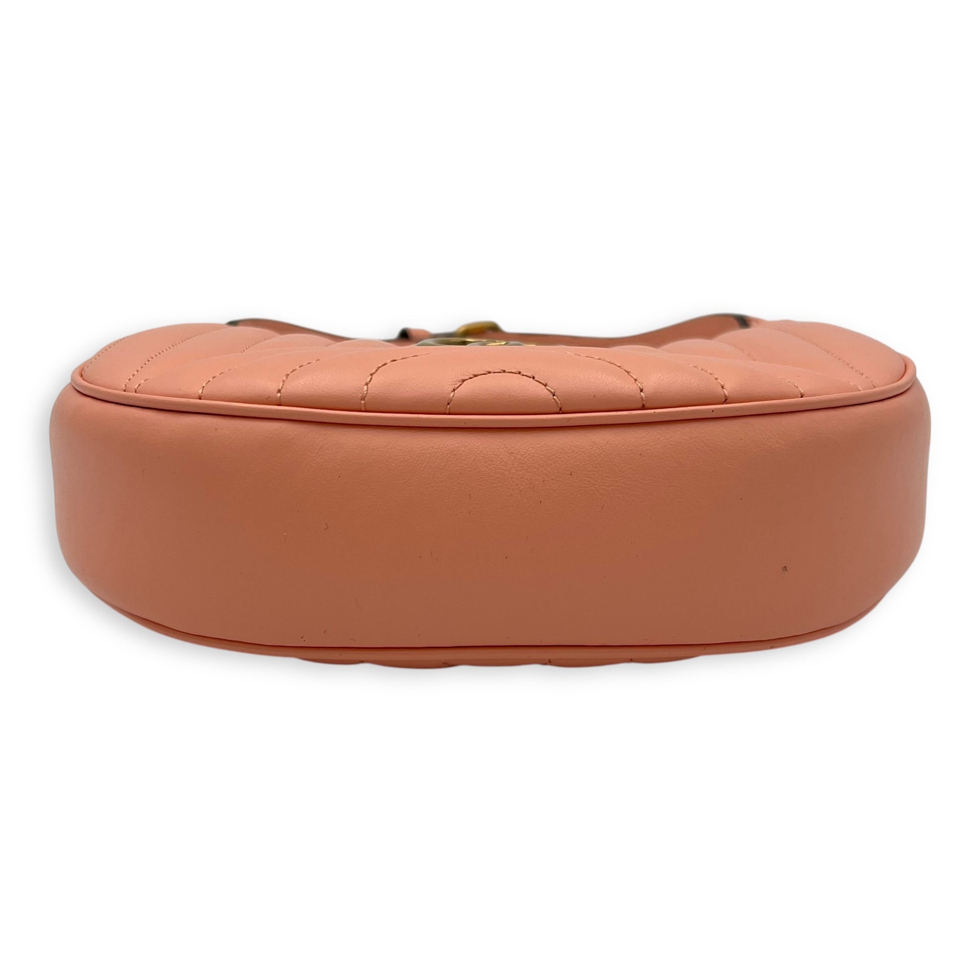 Bags Gucci Half Moon Marmont Peach Shoulder Bag in Calfskin, Gold hardware Very Good Condition Peach Orange Shoulder Bag Women Lady Girl