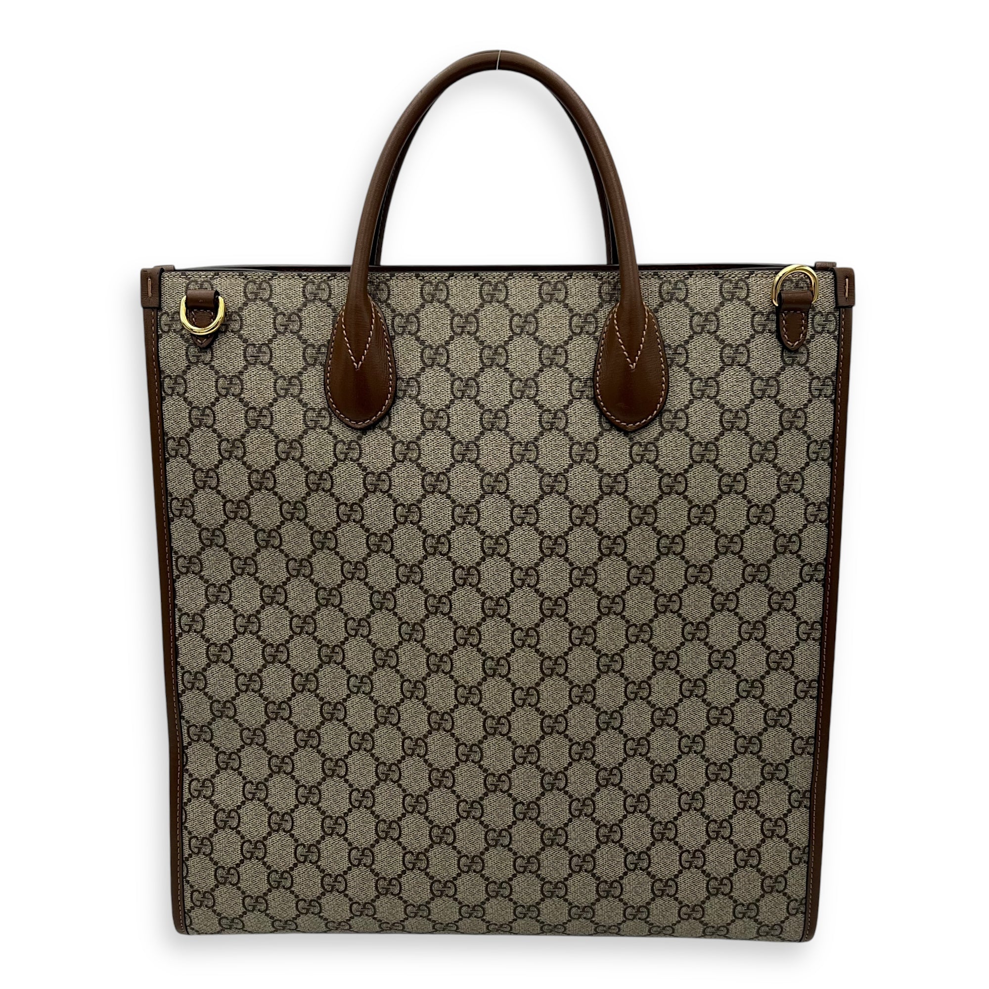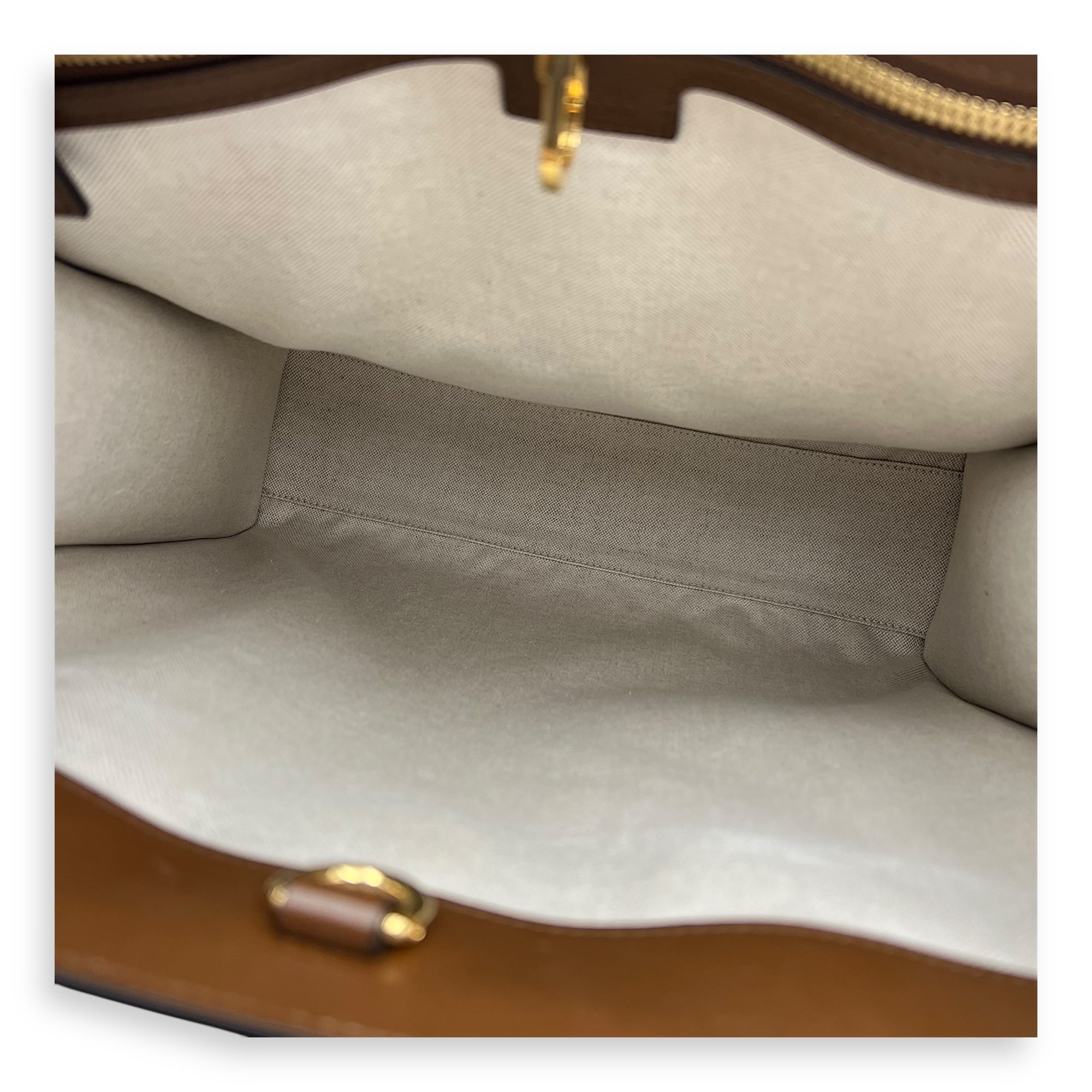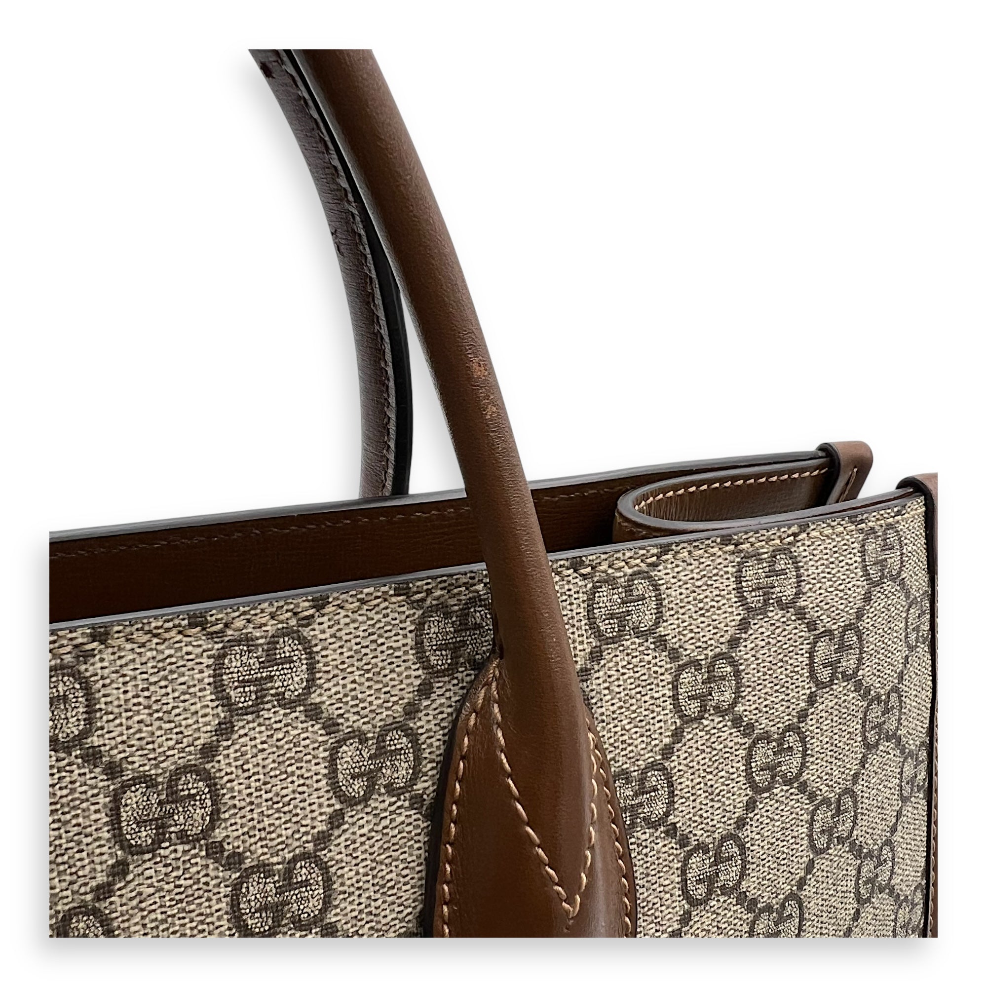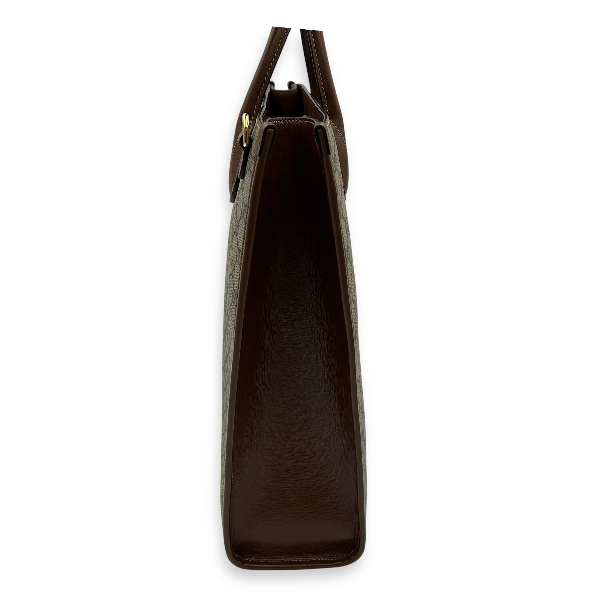 Interlocking G Brown Top Handle Bag in Coated Canvas, Gold hardware