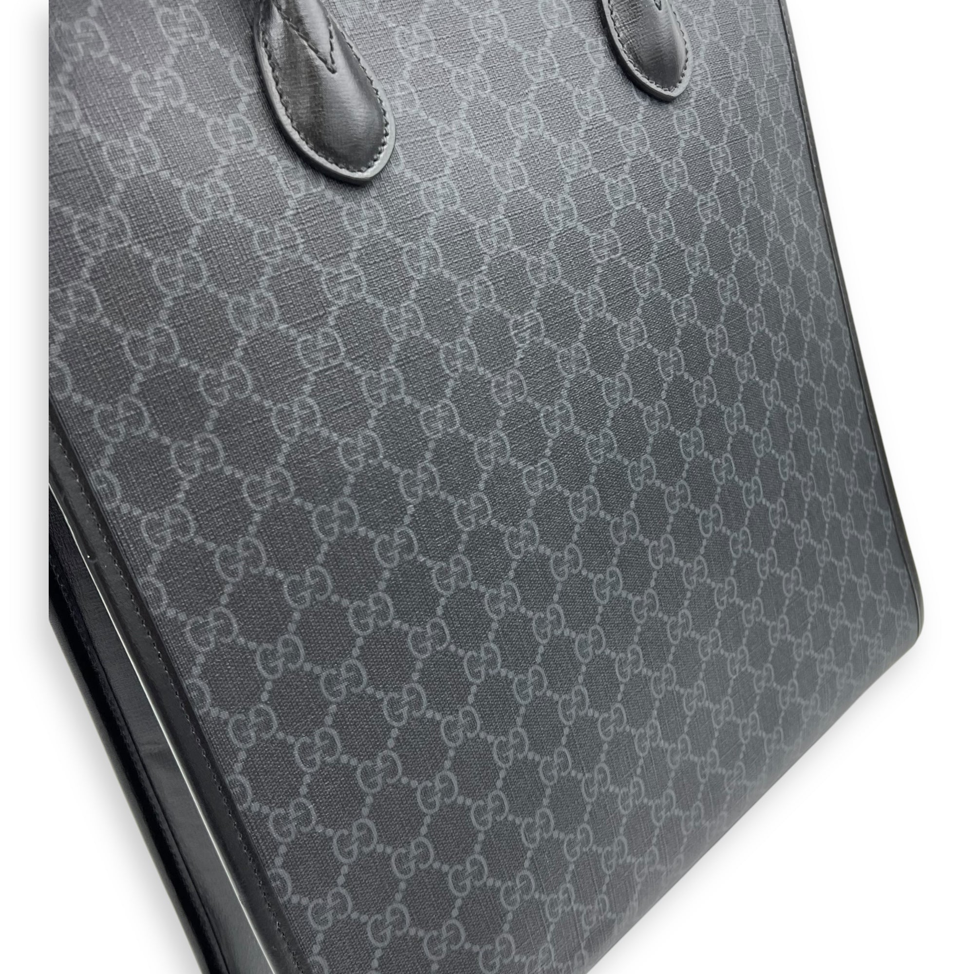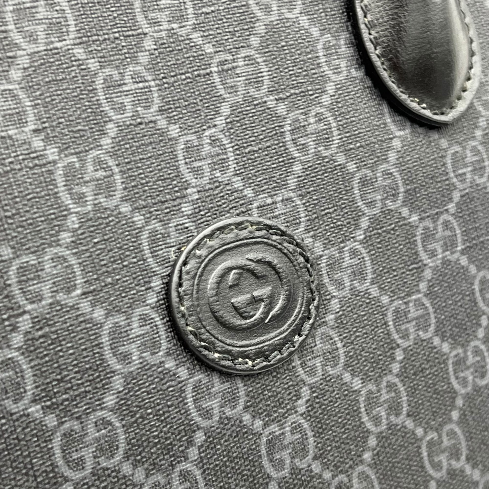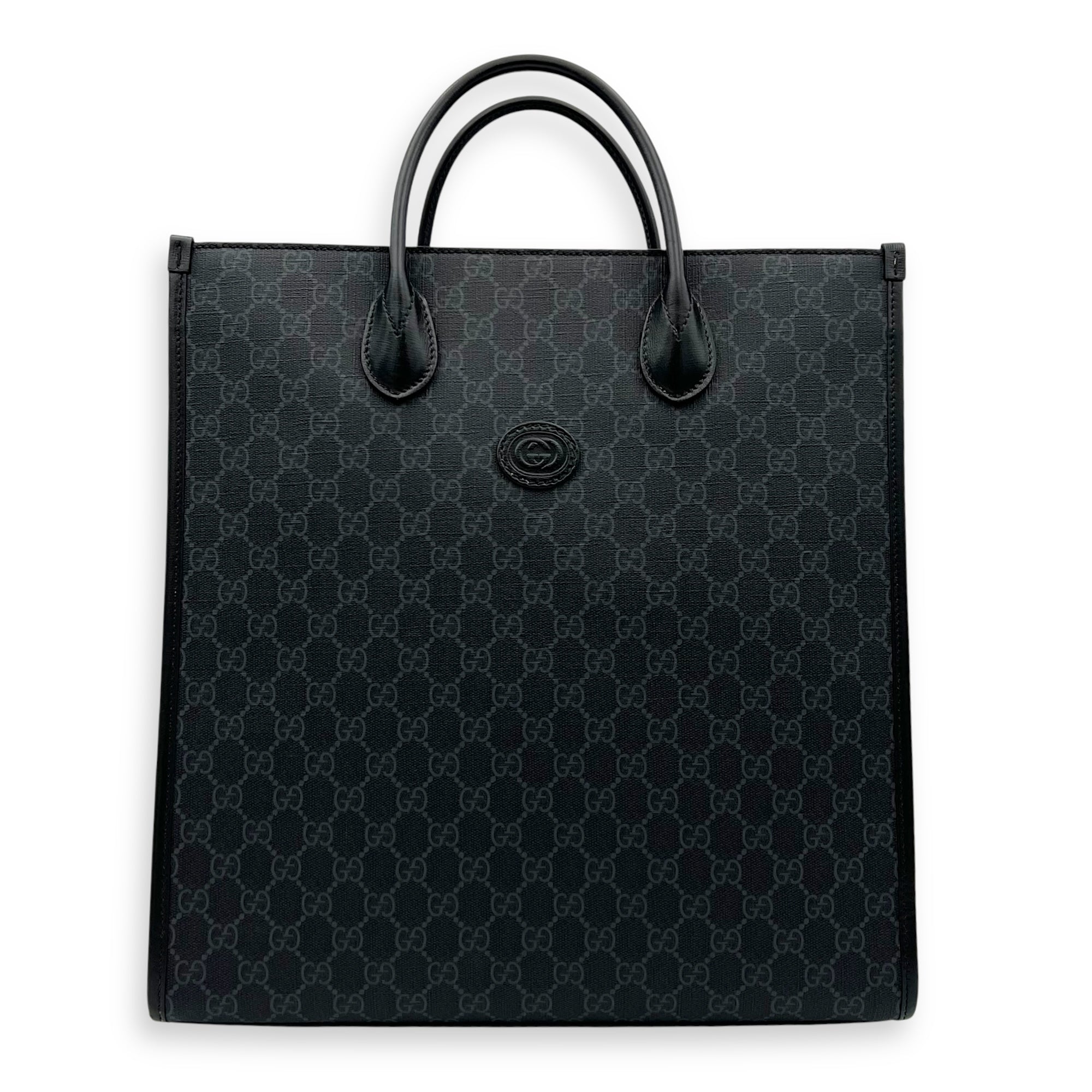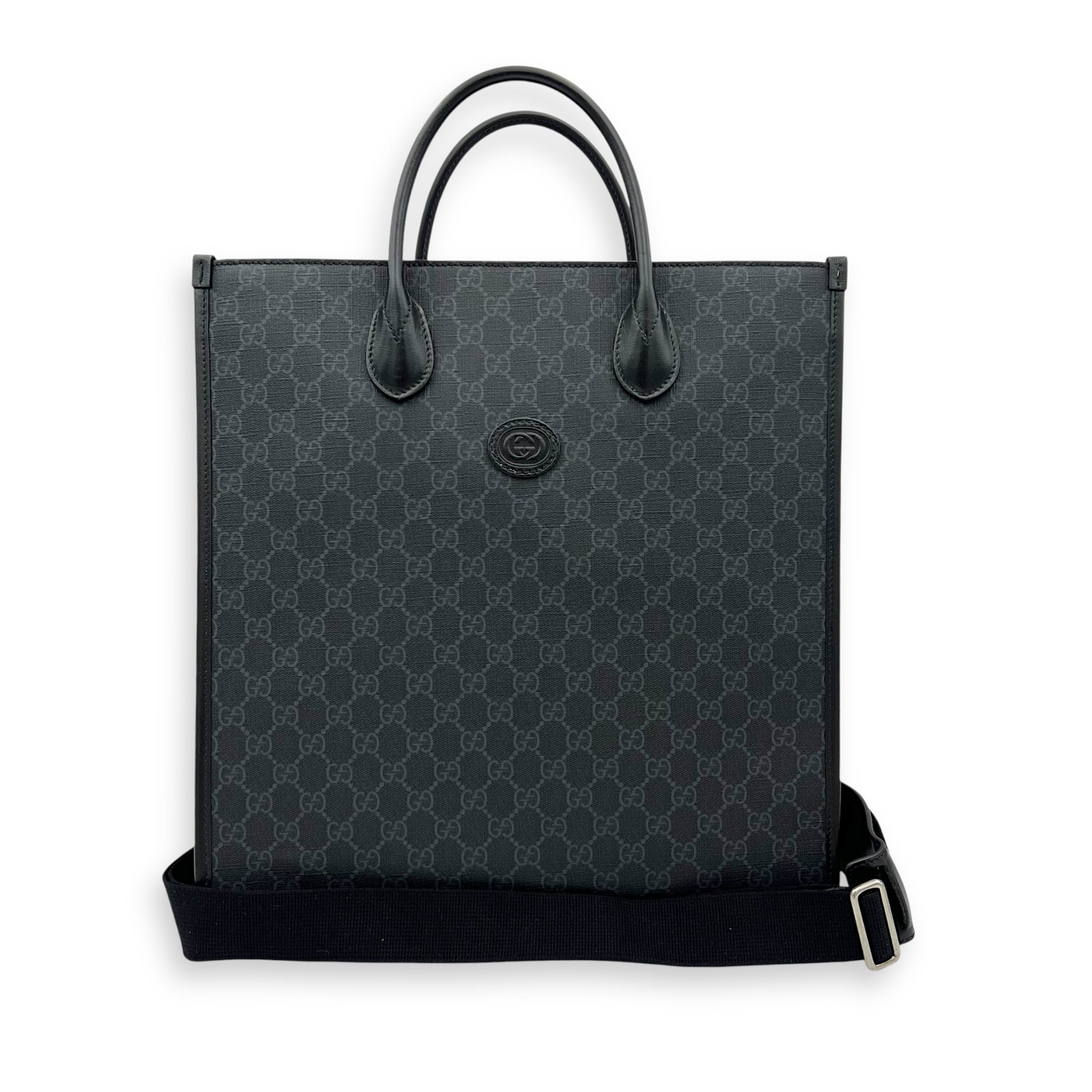 Bags Gucci Interlocking G Black Tote Bag in Coated Canvas, Silver hardware Very Good Condition Black Tote Bag Men Unisex