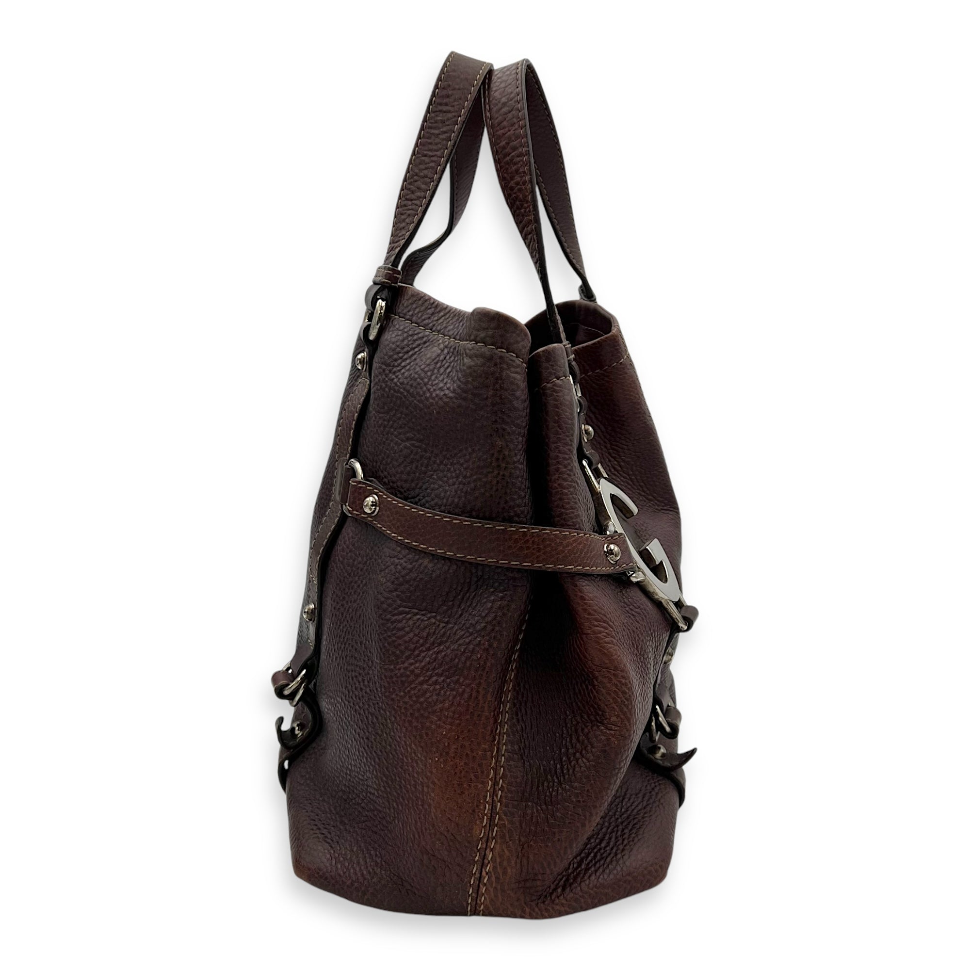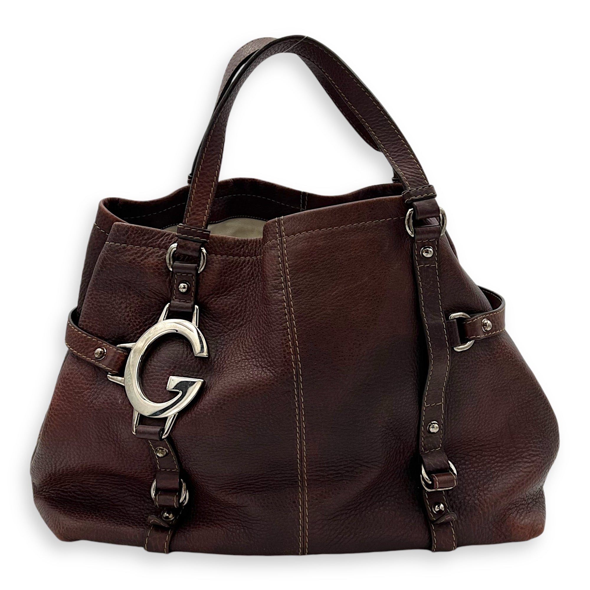 Bags Gucci GG Tote Bag Brown in Calfskin, Silver hardware Good Condition Brown Tote Bag Women Lady Girl