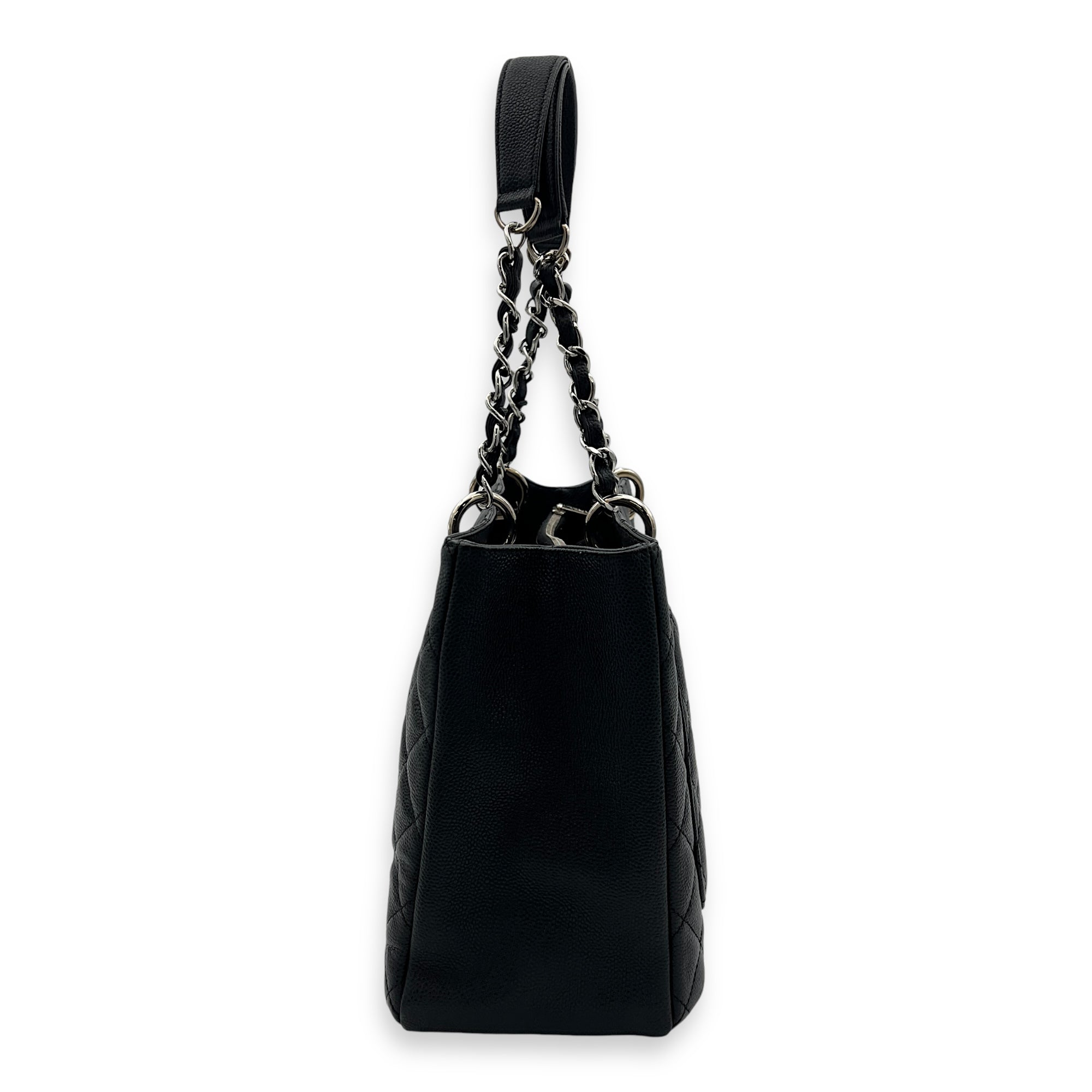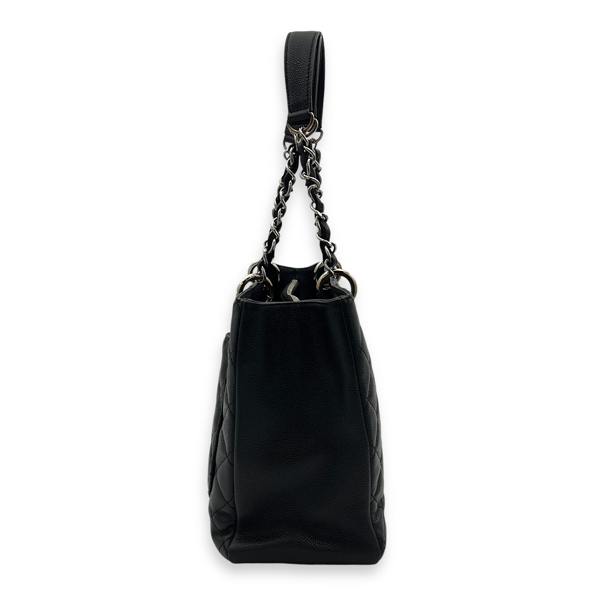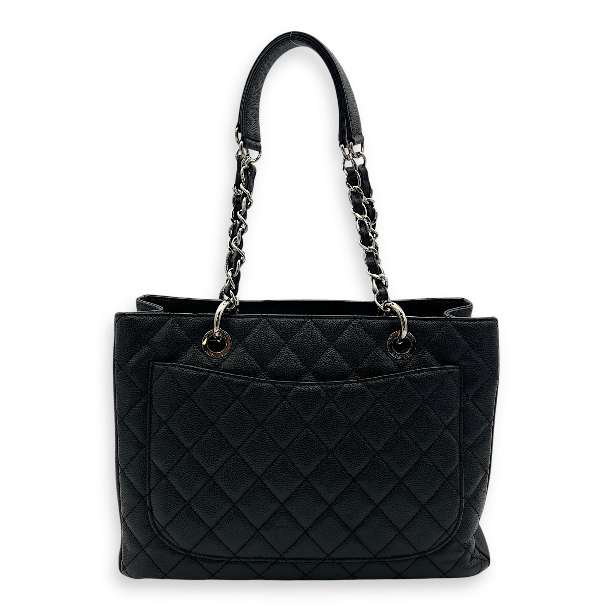 GST Tote Bag Black in Caviar Leather, Silver hardware