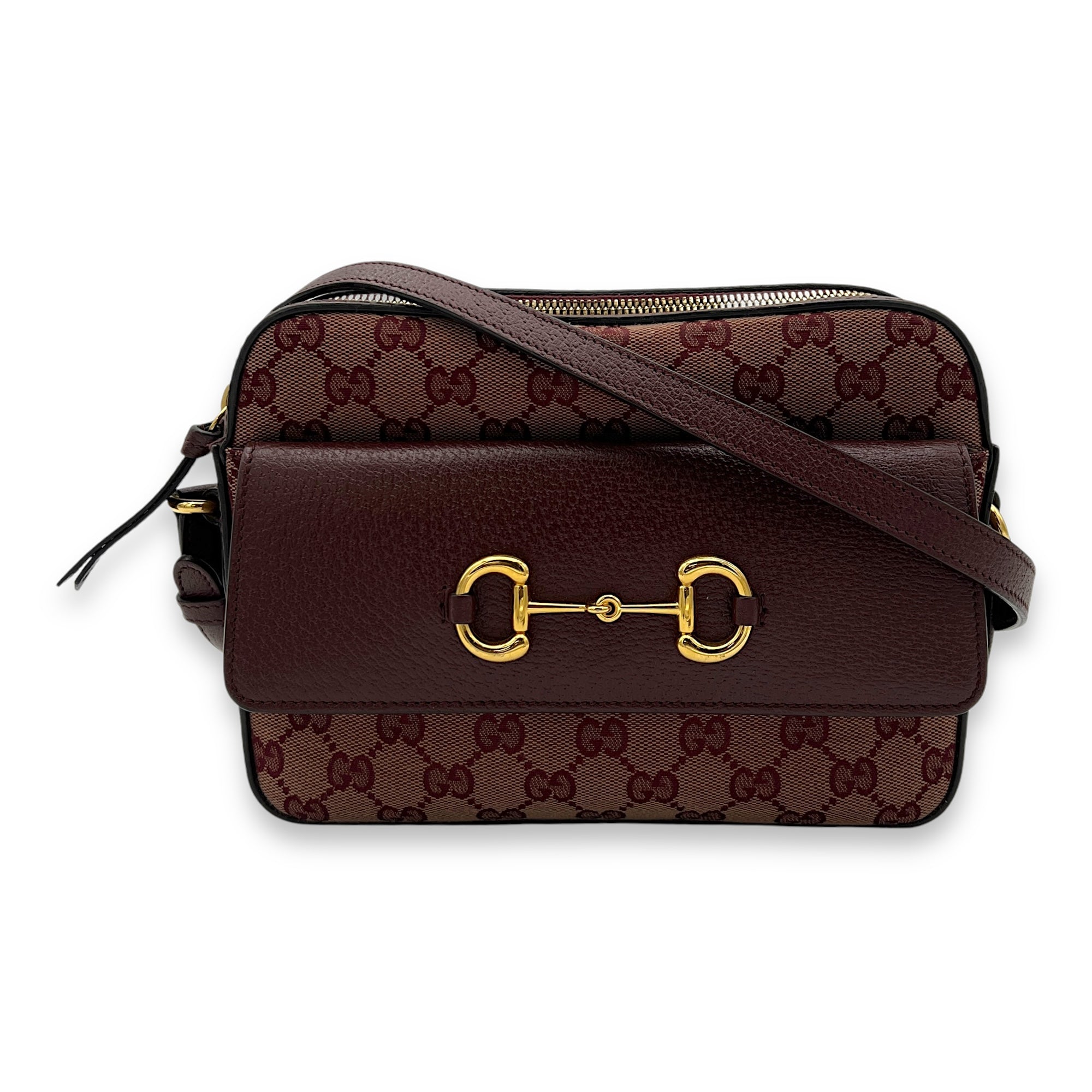 Bags Gucci Horsebit 1955 Crossbody Bag Red in Canvas, Gold hardware Good Condition Red Crossbody Bag Women Lady Girl