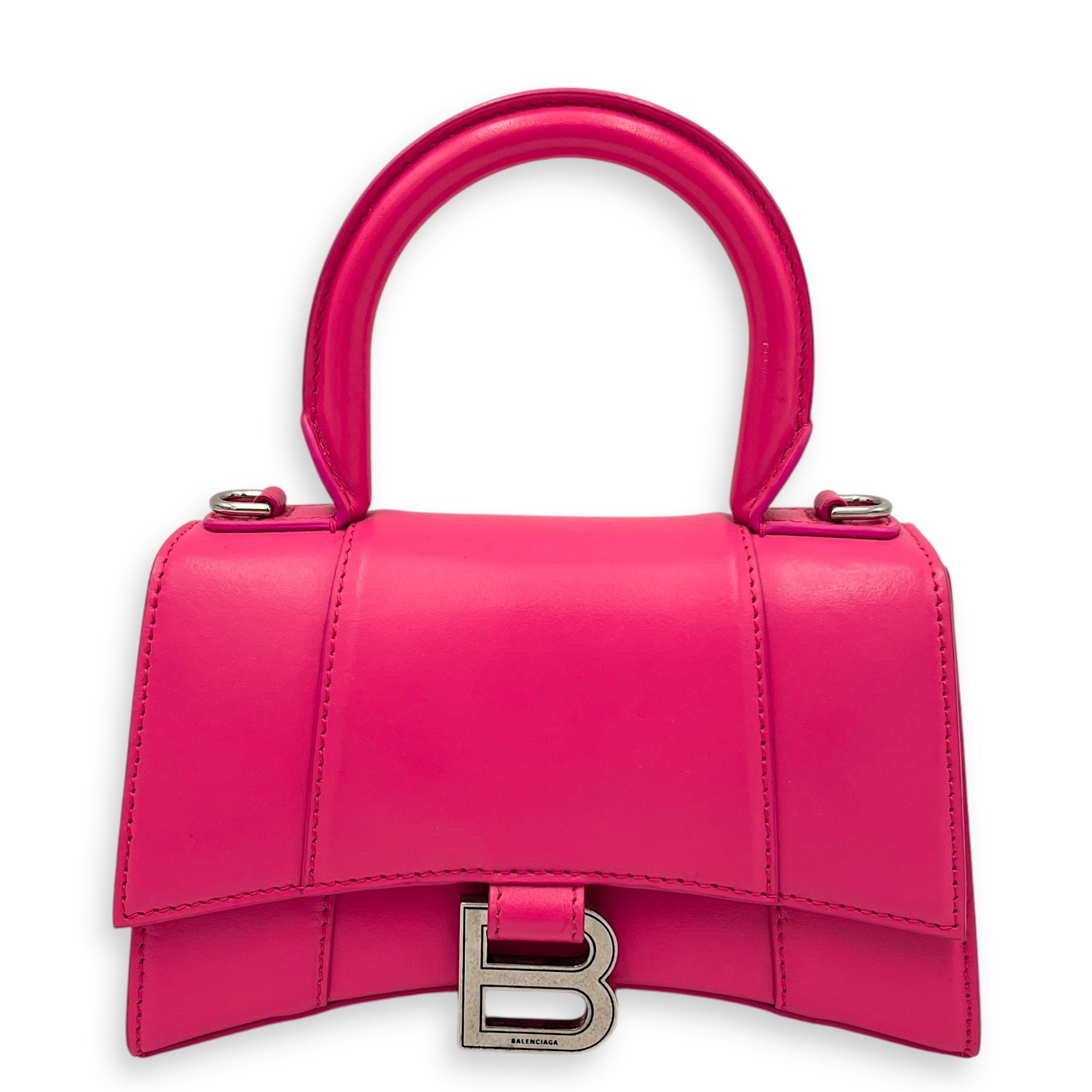 Bags Balenciaga Hourglass XS Top handle bag in Calfskin, Silver Hardware Very Good Condition Pink Top Handle Bag Women Lady Girl