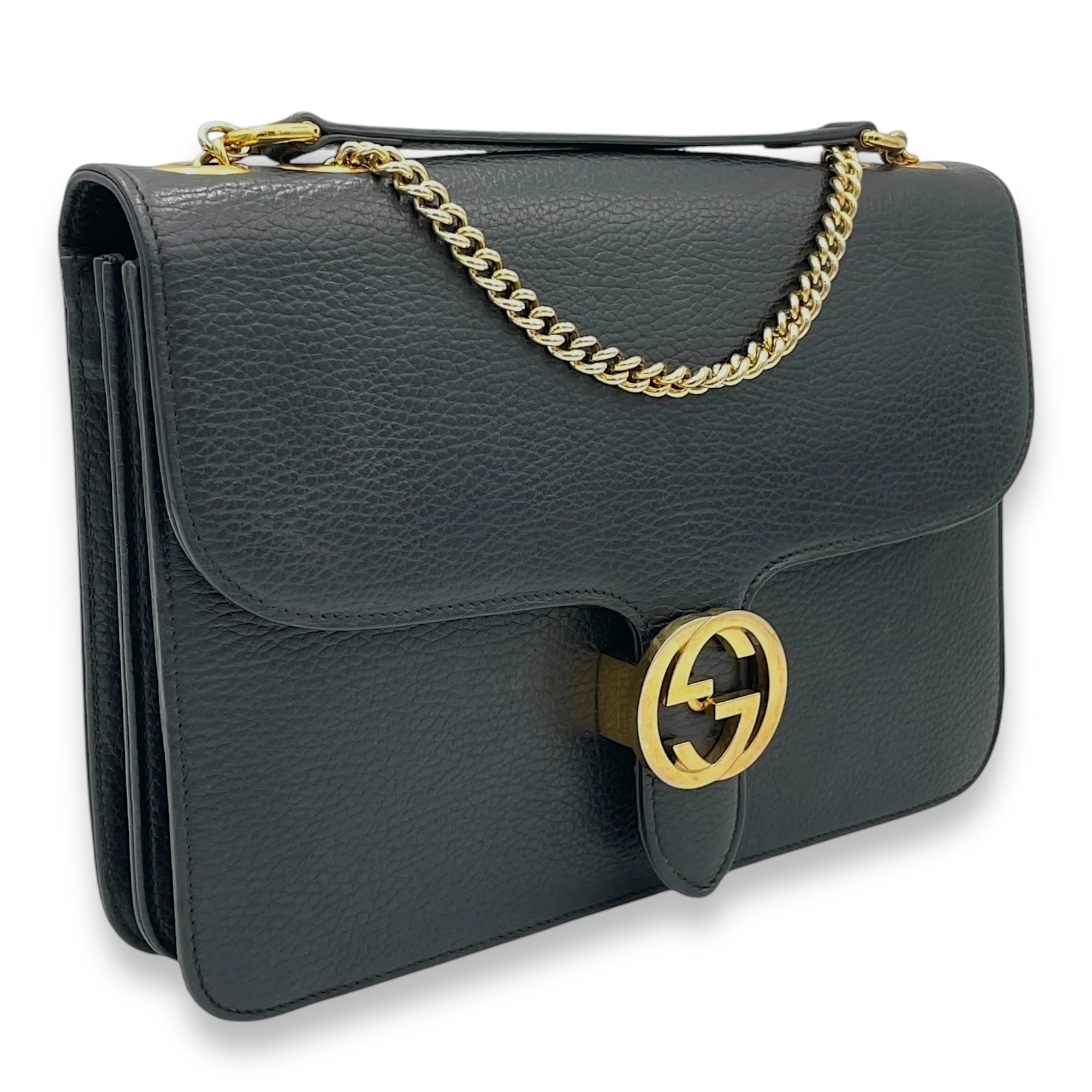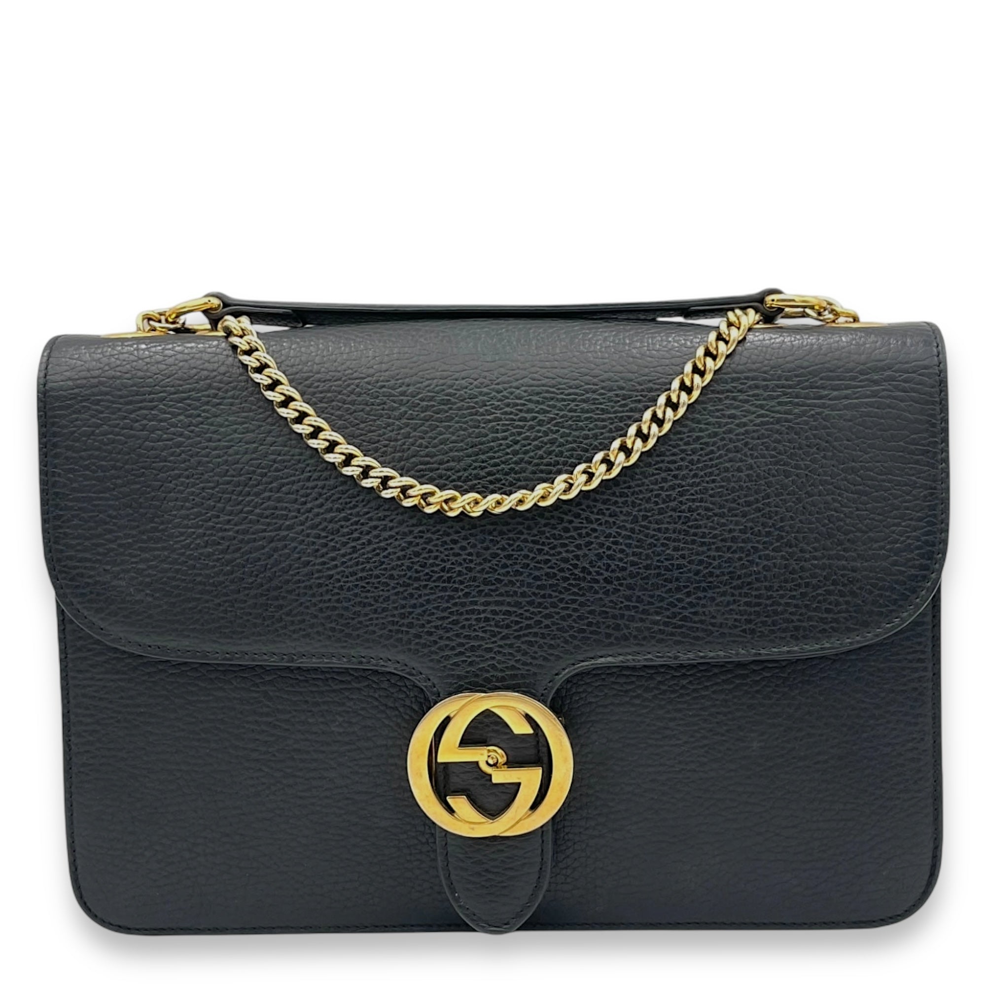 Be the first to review “Interlocking G Black Shoulder Bag in Calfskin, Gold hardware”