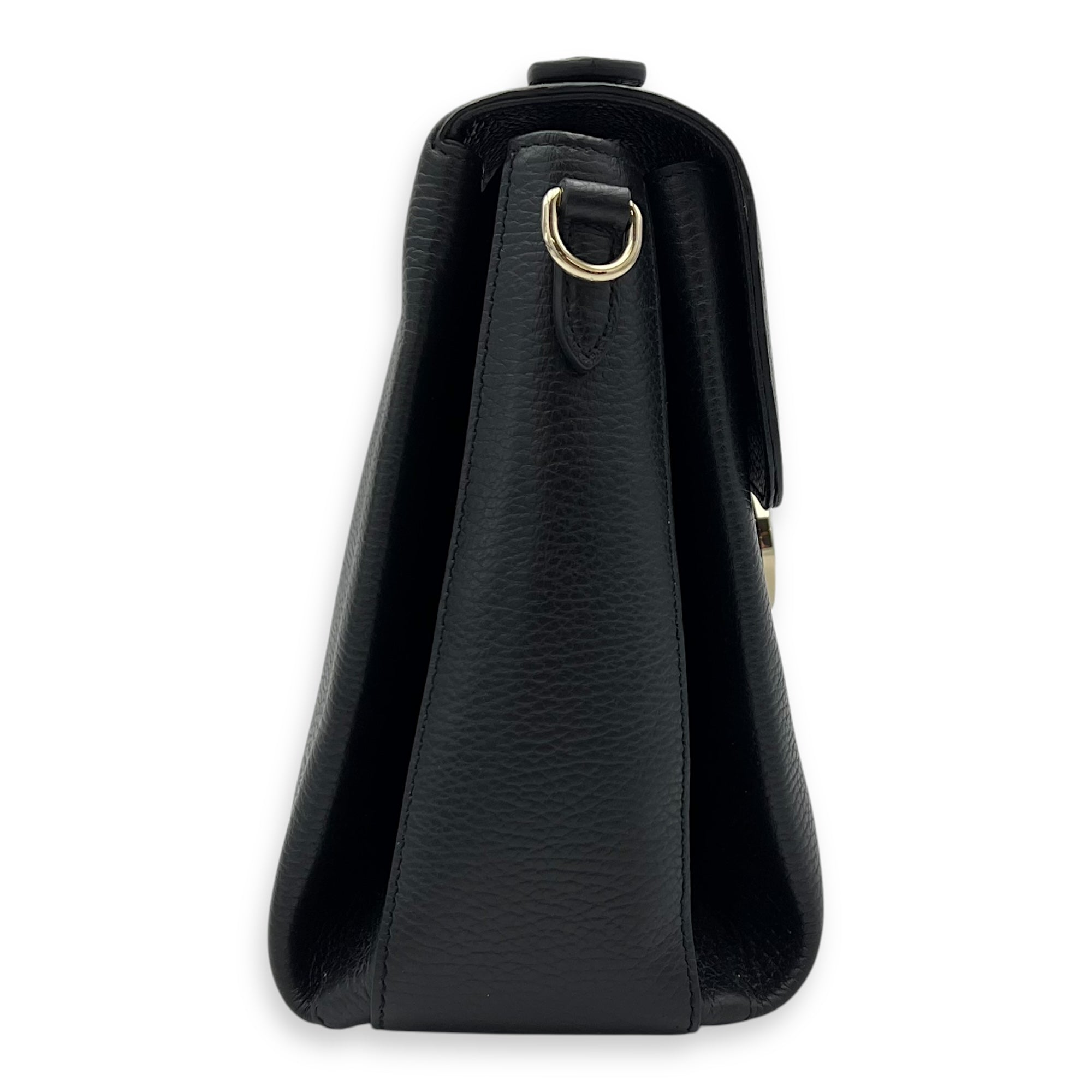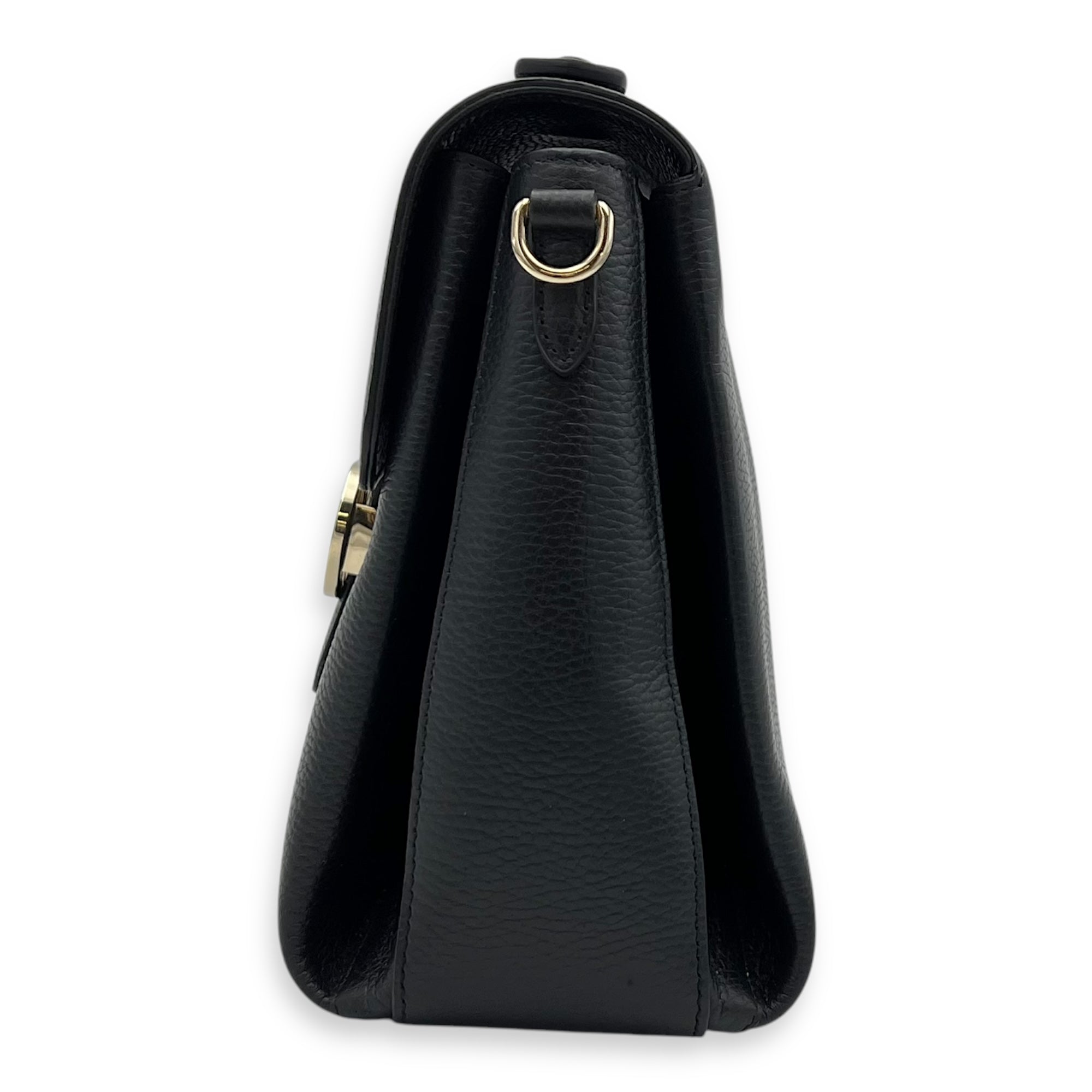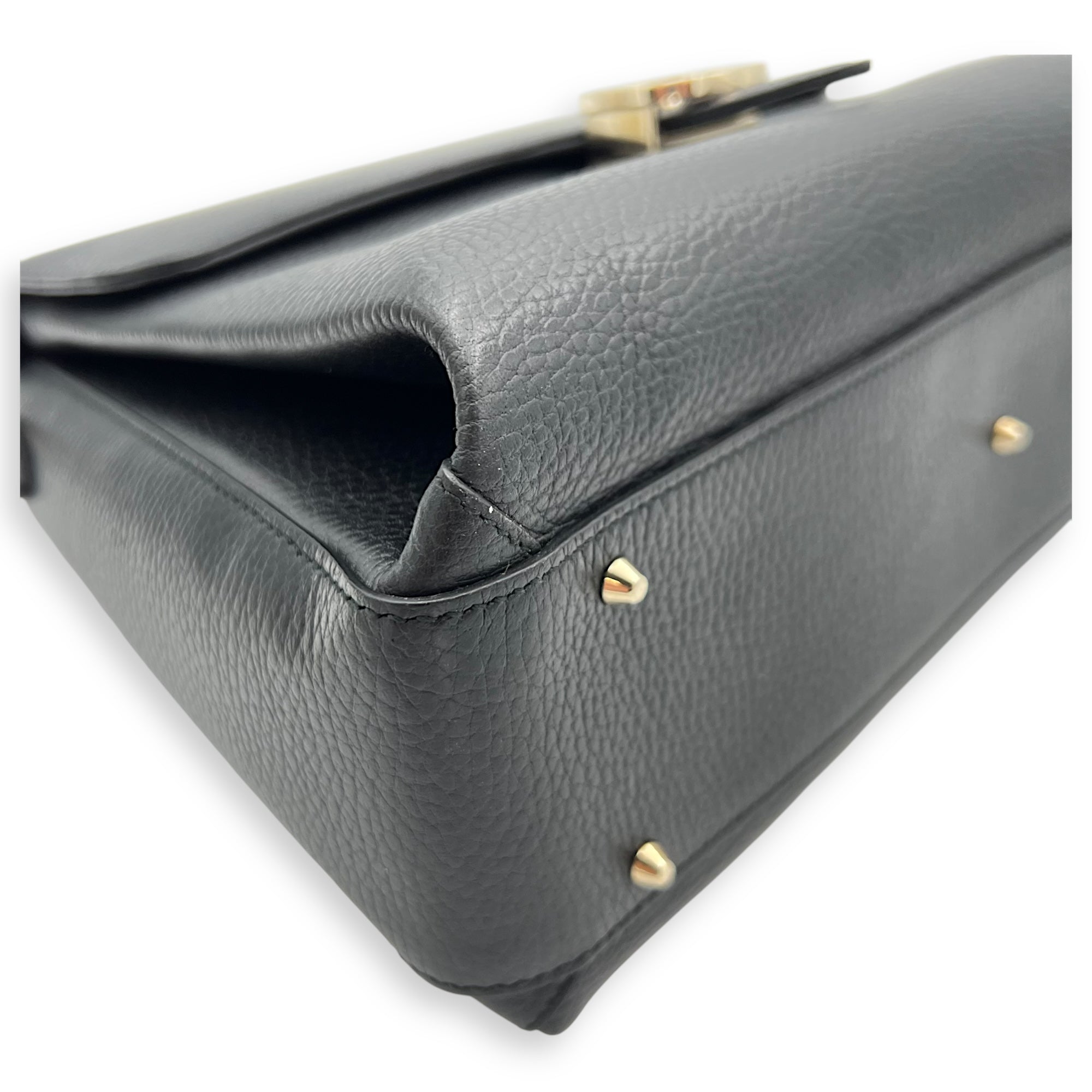Interlocking G Top Handle Bag Black in Calfskin, Silver hardware