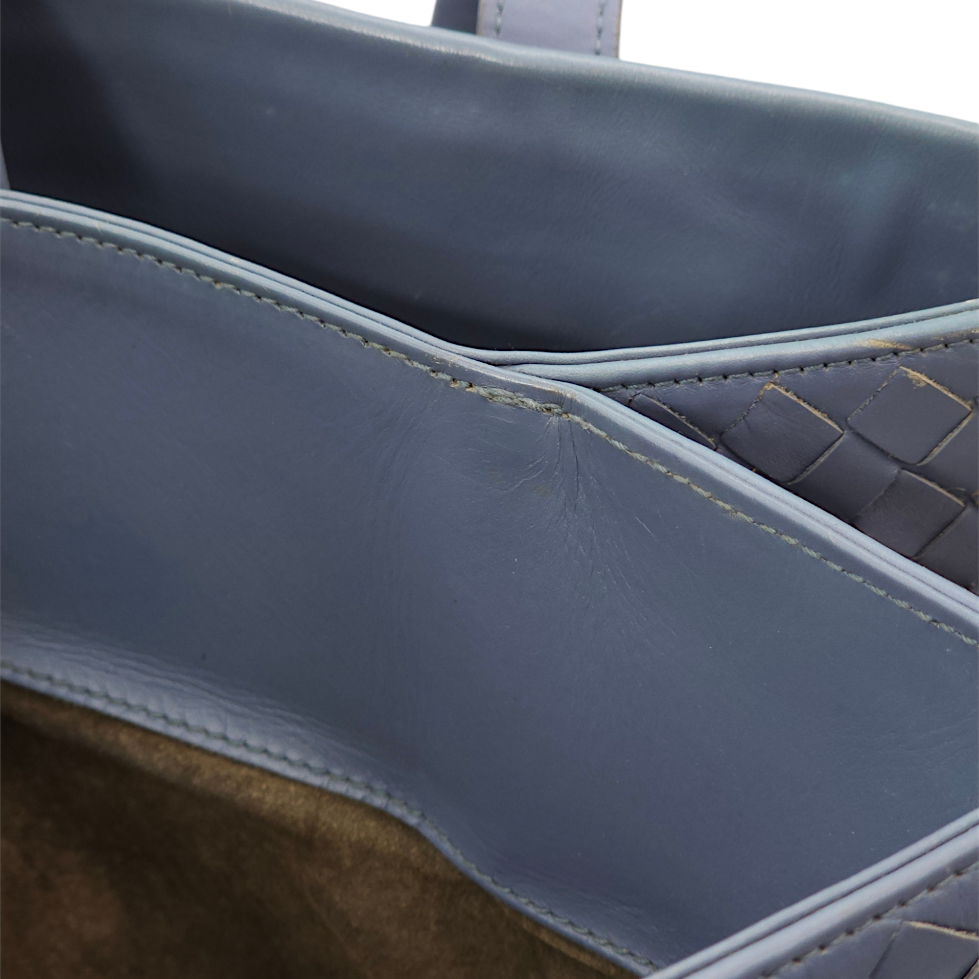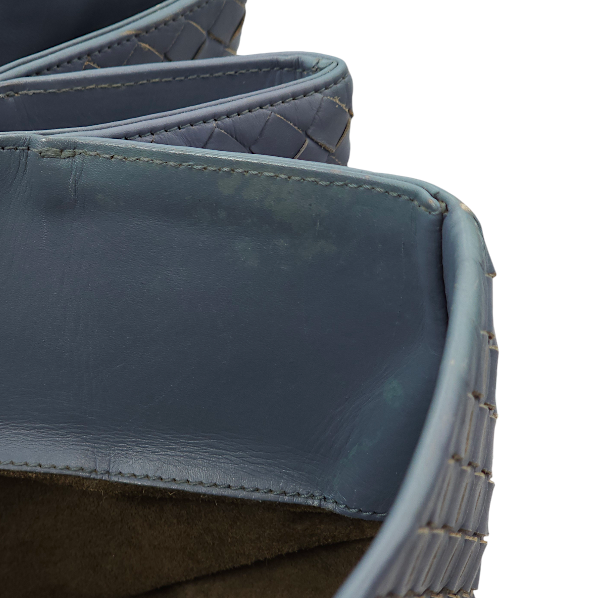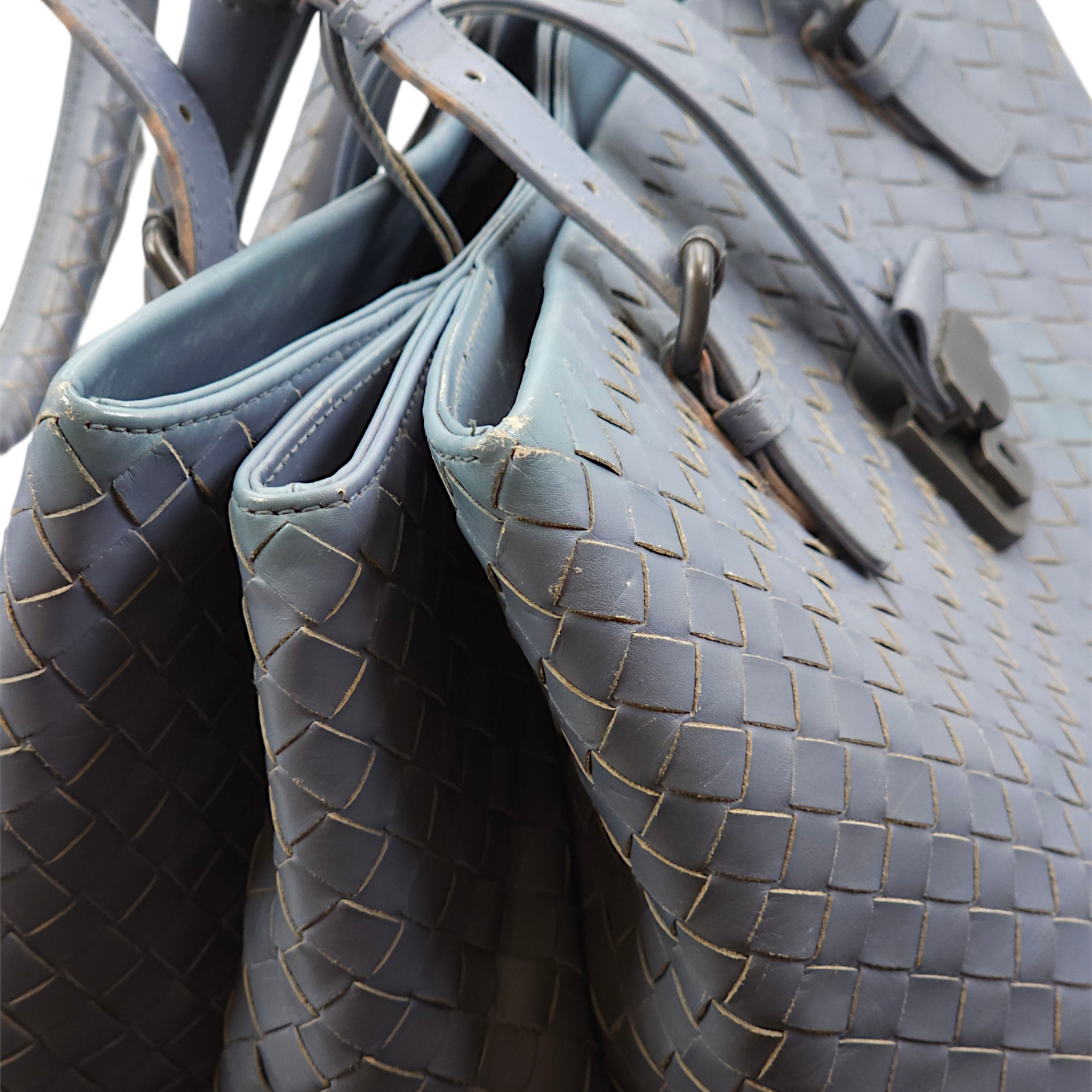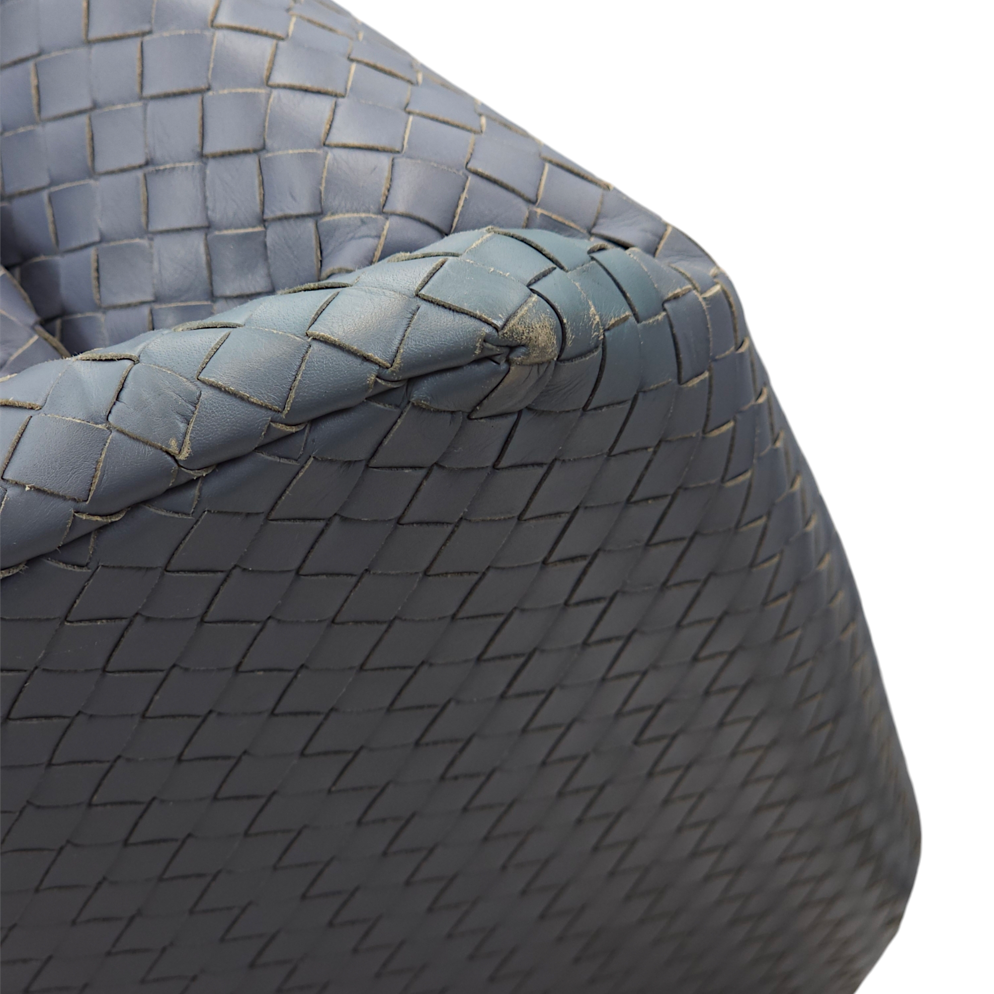 Bottega Veneta Intrecciato Roma Blue Top Handle Bag in Calfskin/Nappa Leather, Brunito hardware Bags Top Handle Bag Blue Fair Condition MEN UNISEX