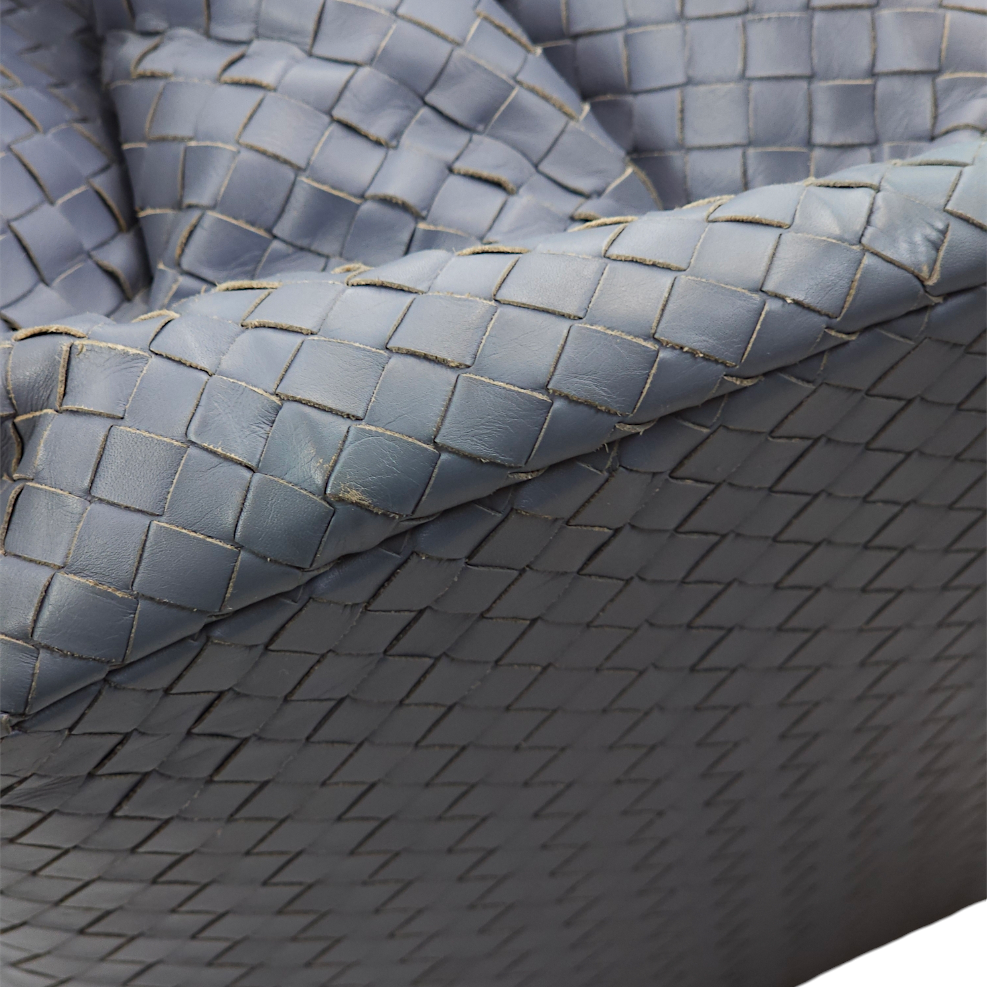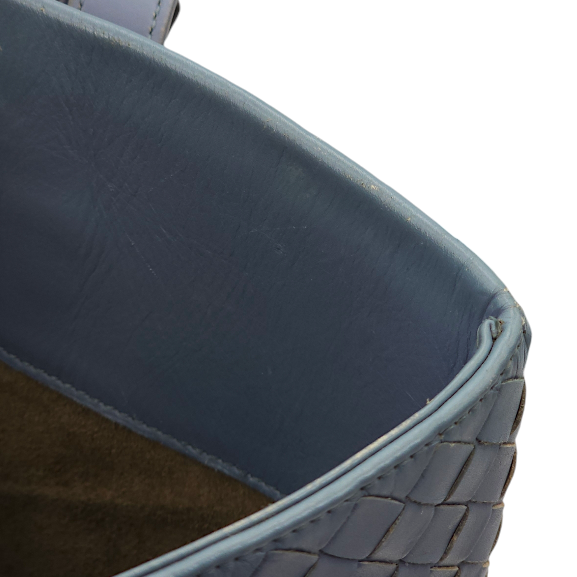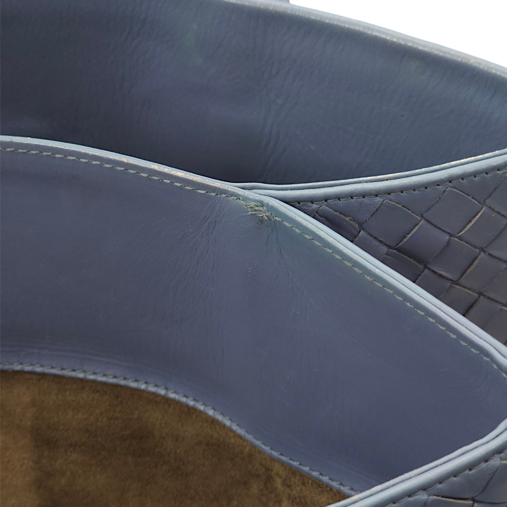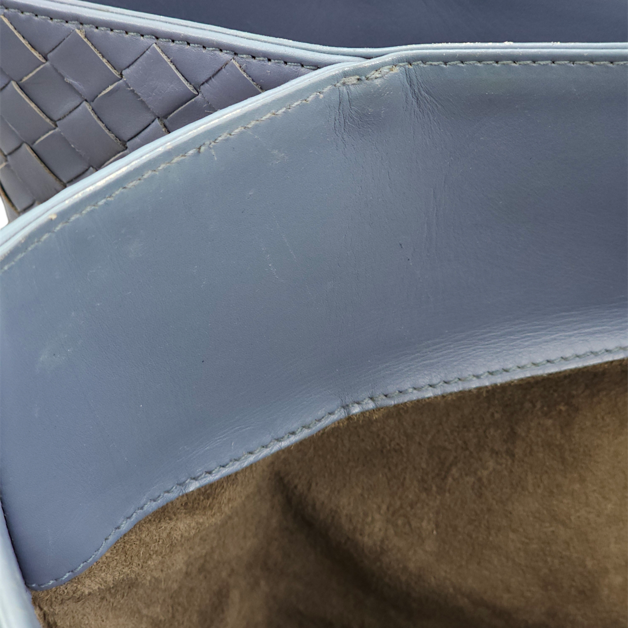 Bottega Veneta Intrecciato Roma Blue Top Handle Bag in Calfskin/Nappa Leather, Brunito hardware Bags Top Handle Bag Blue Fair Condition MEN UNISEX