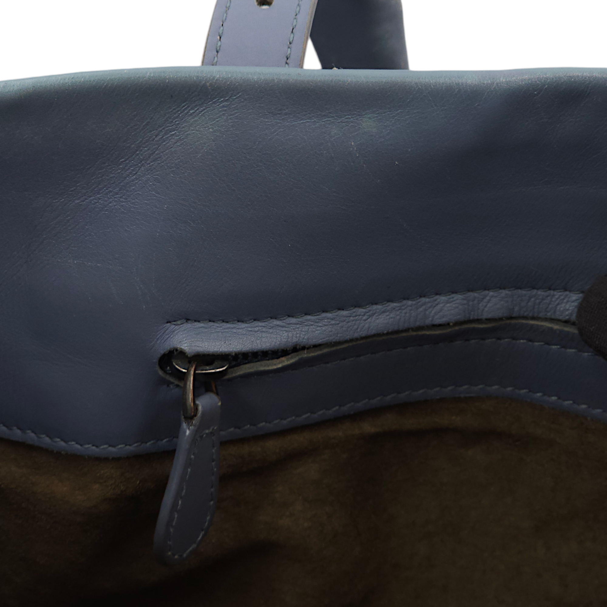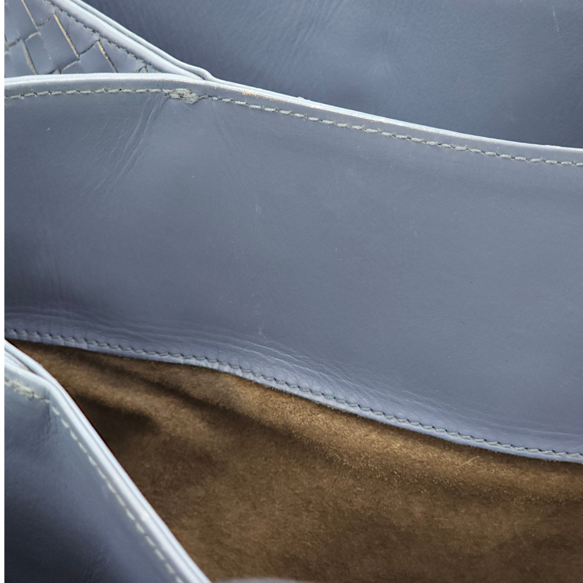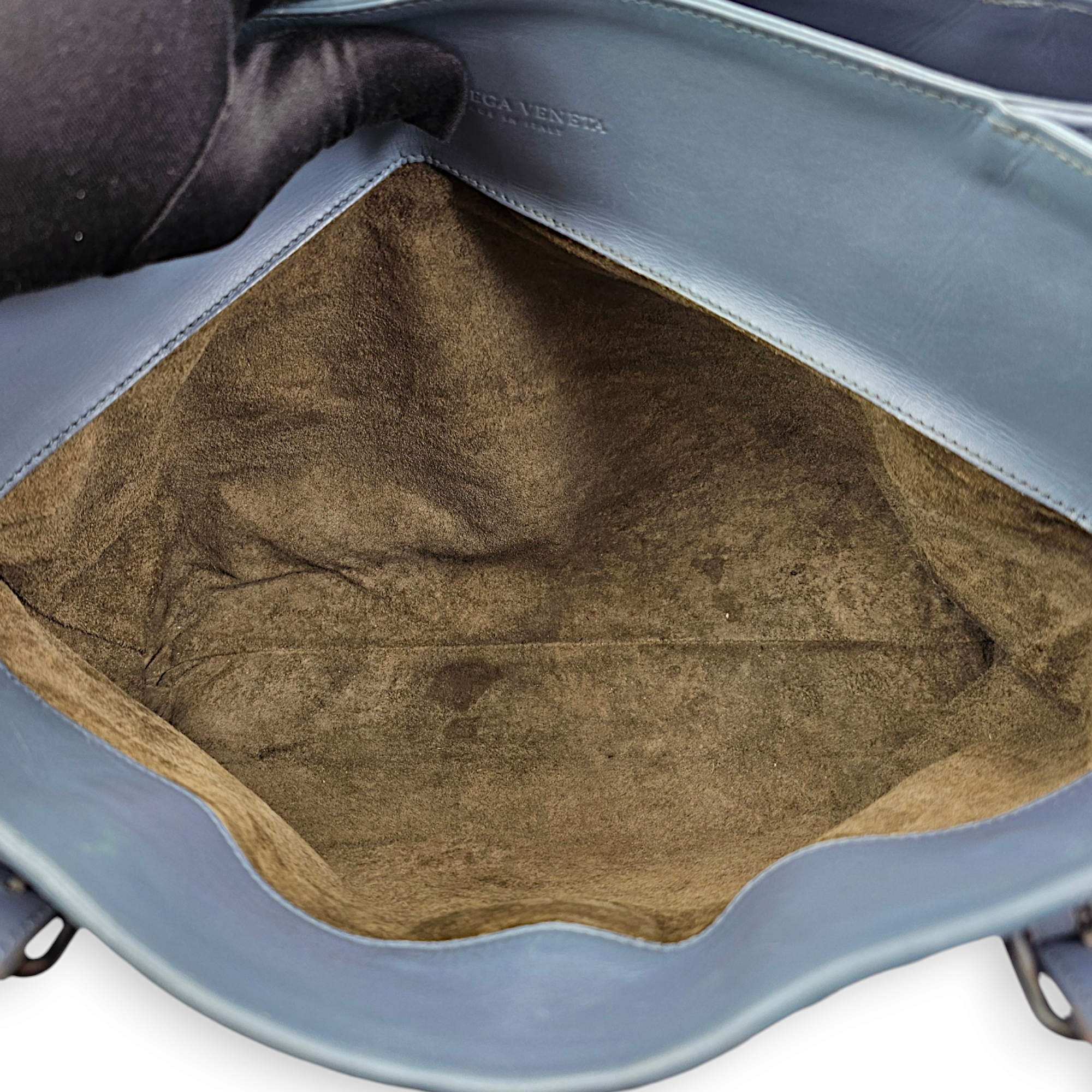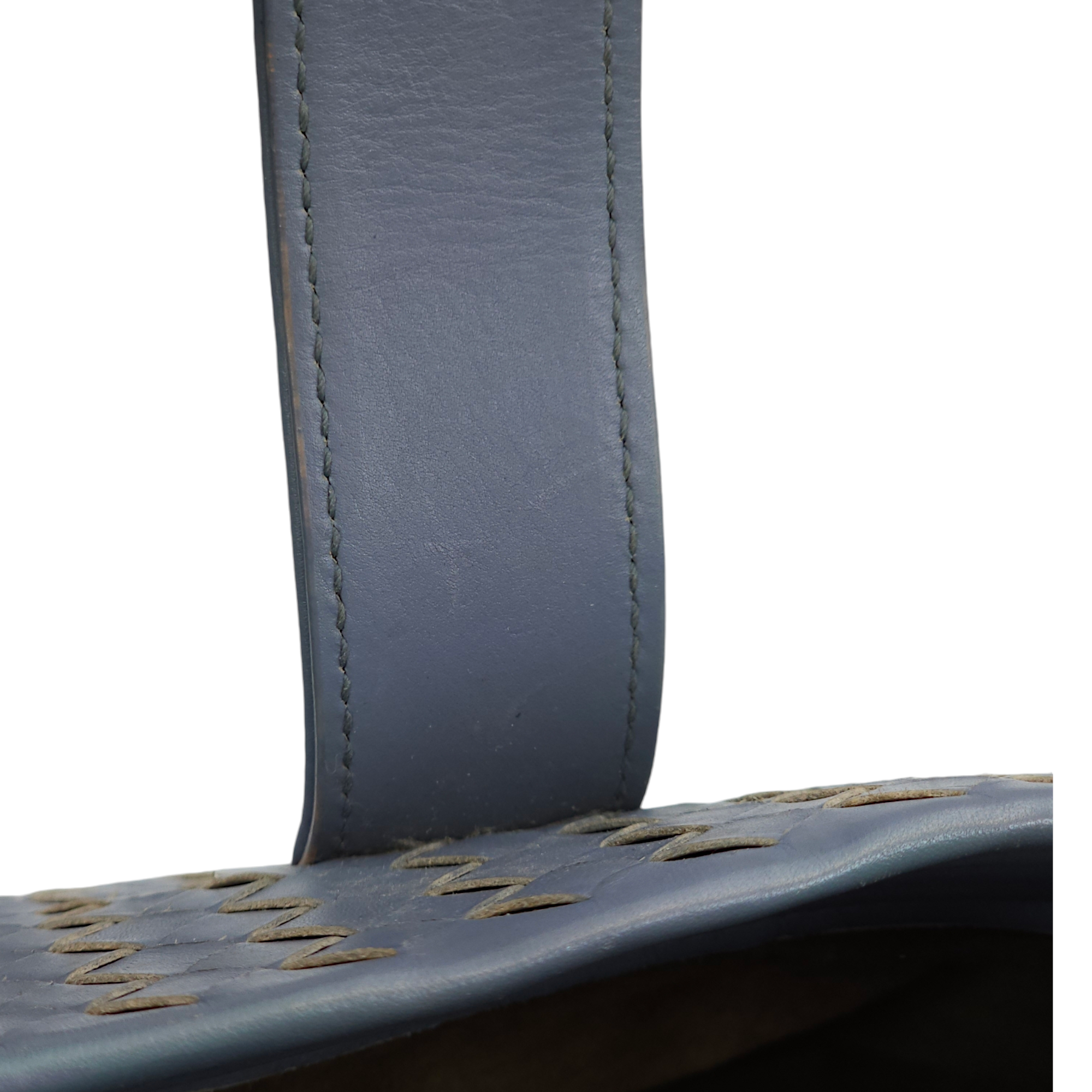 Bottega Veneta Intrecciato Roma Blue Top Handle Bag in Calfskin/Nappa Leather, Brunito hardware Bags Top Handle Bag Blue Fair Condition MEN UNISEX