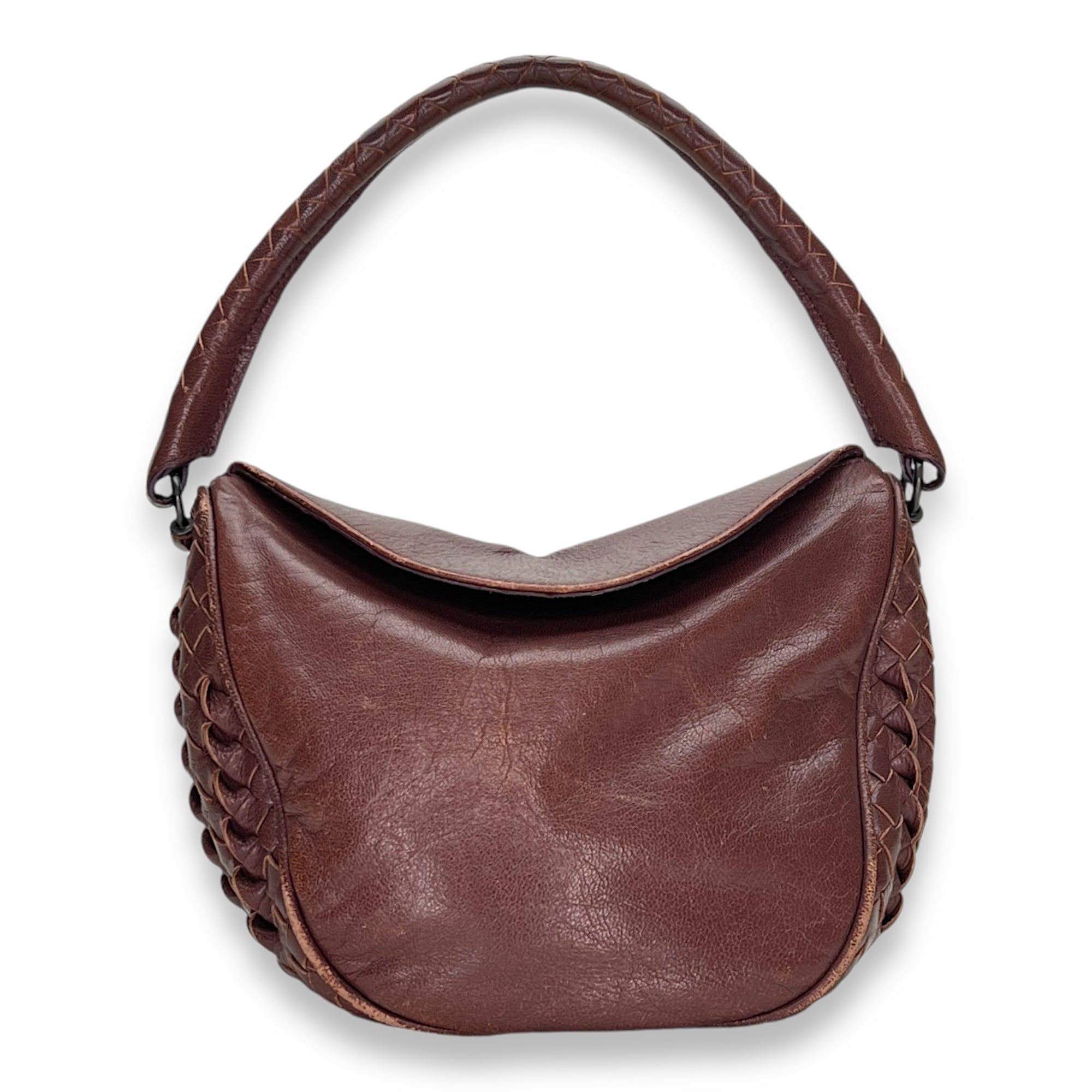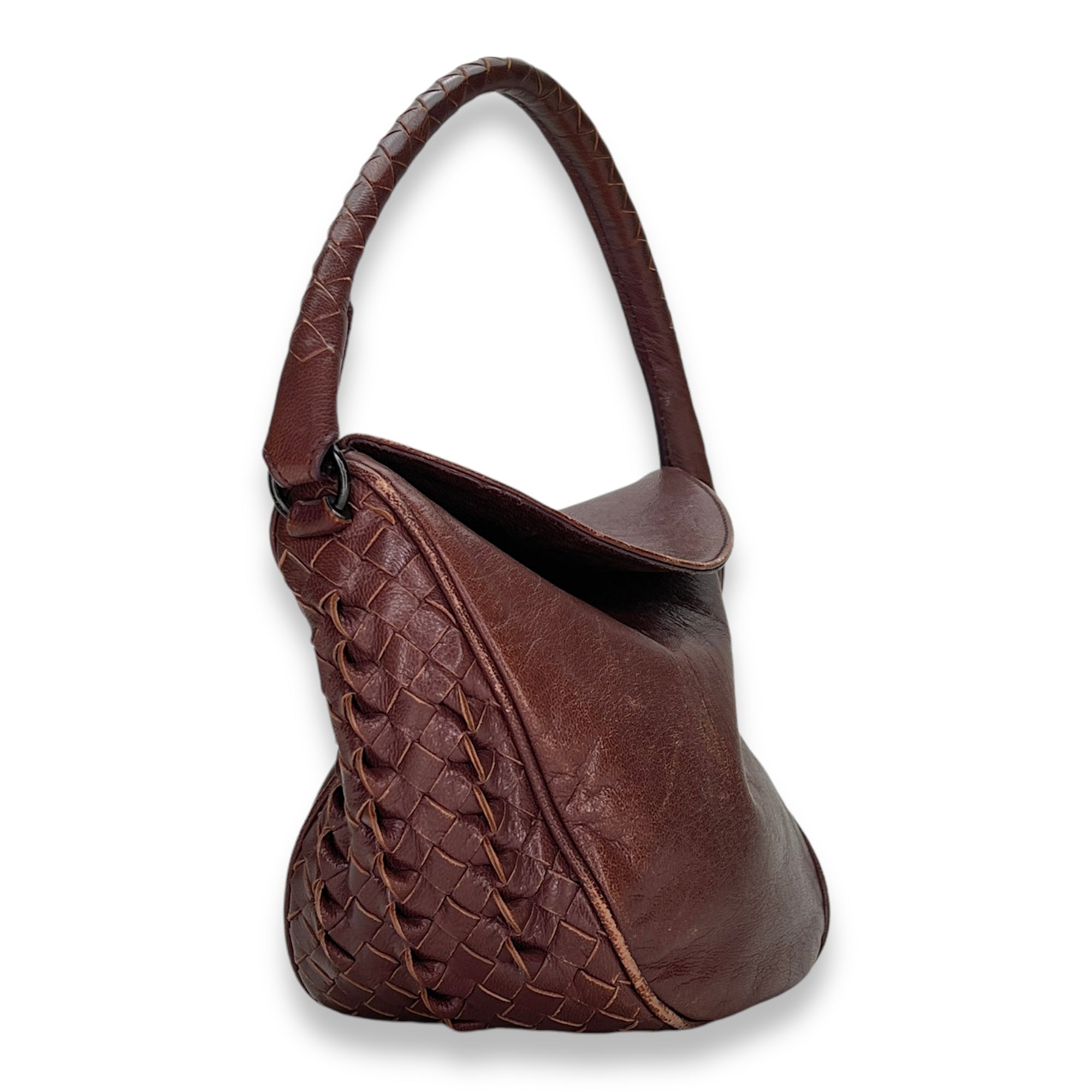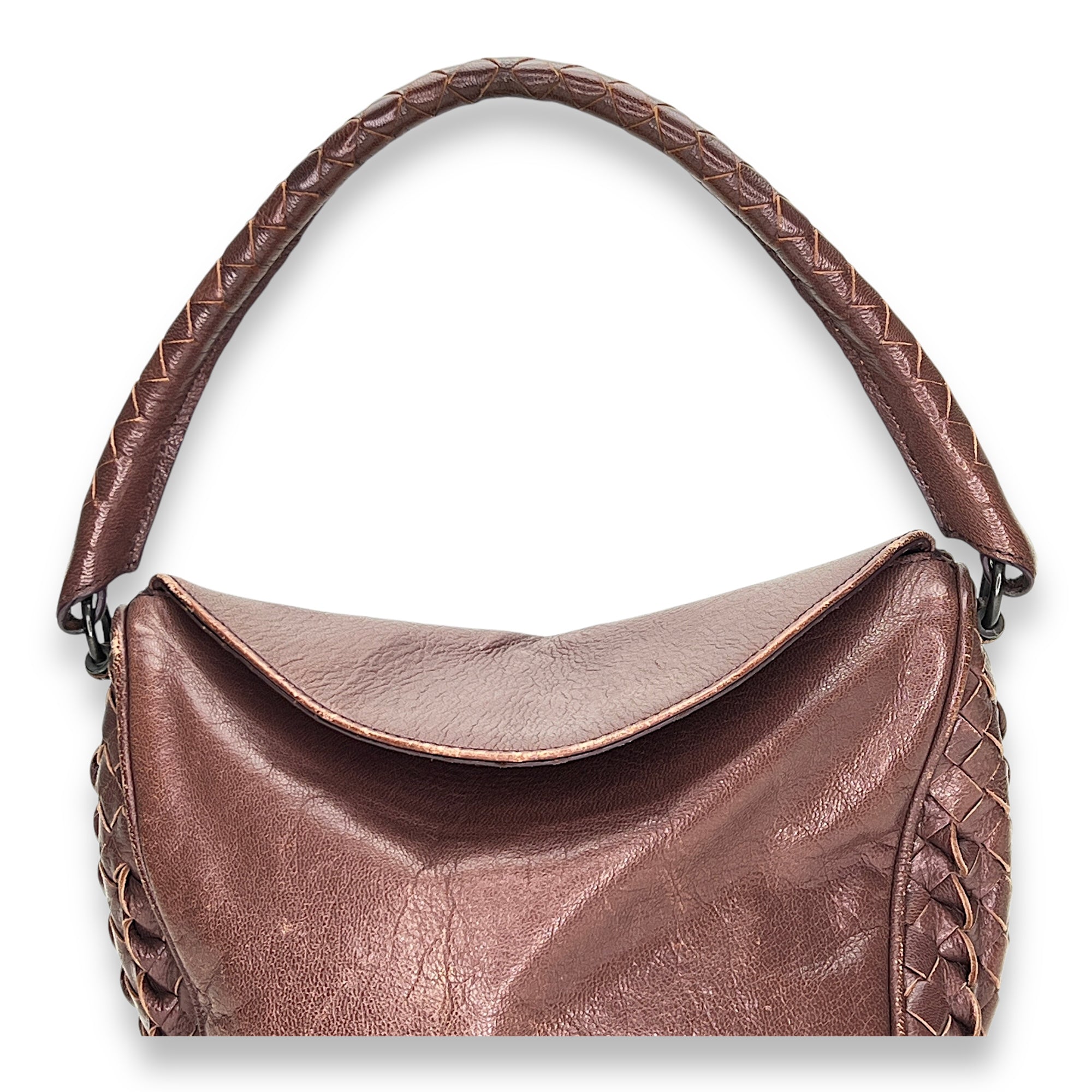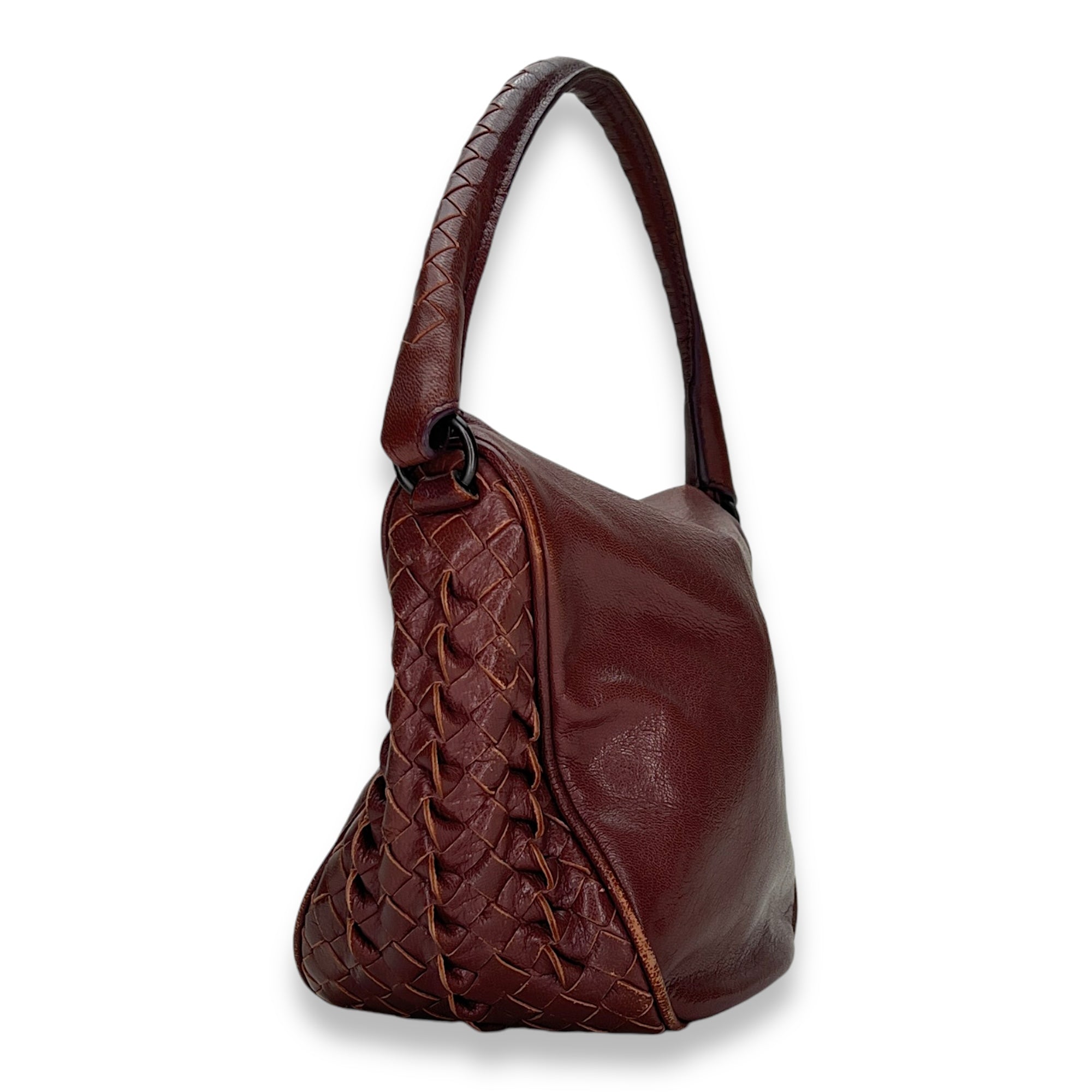 Bags Bottega Veneta Intrecciato Shoulder bag in Calfskin, Gunmetal Hardware Good Condition Brown Shoulder Bag Women Lady Girl