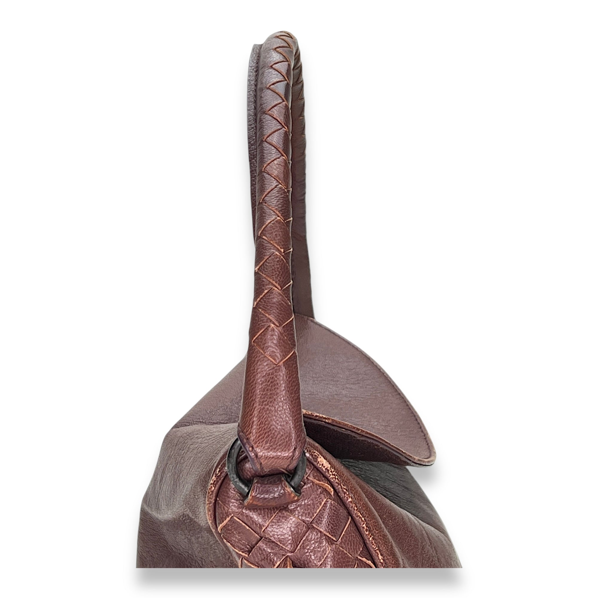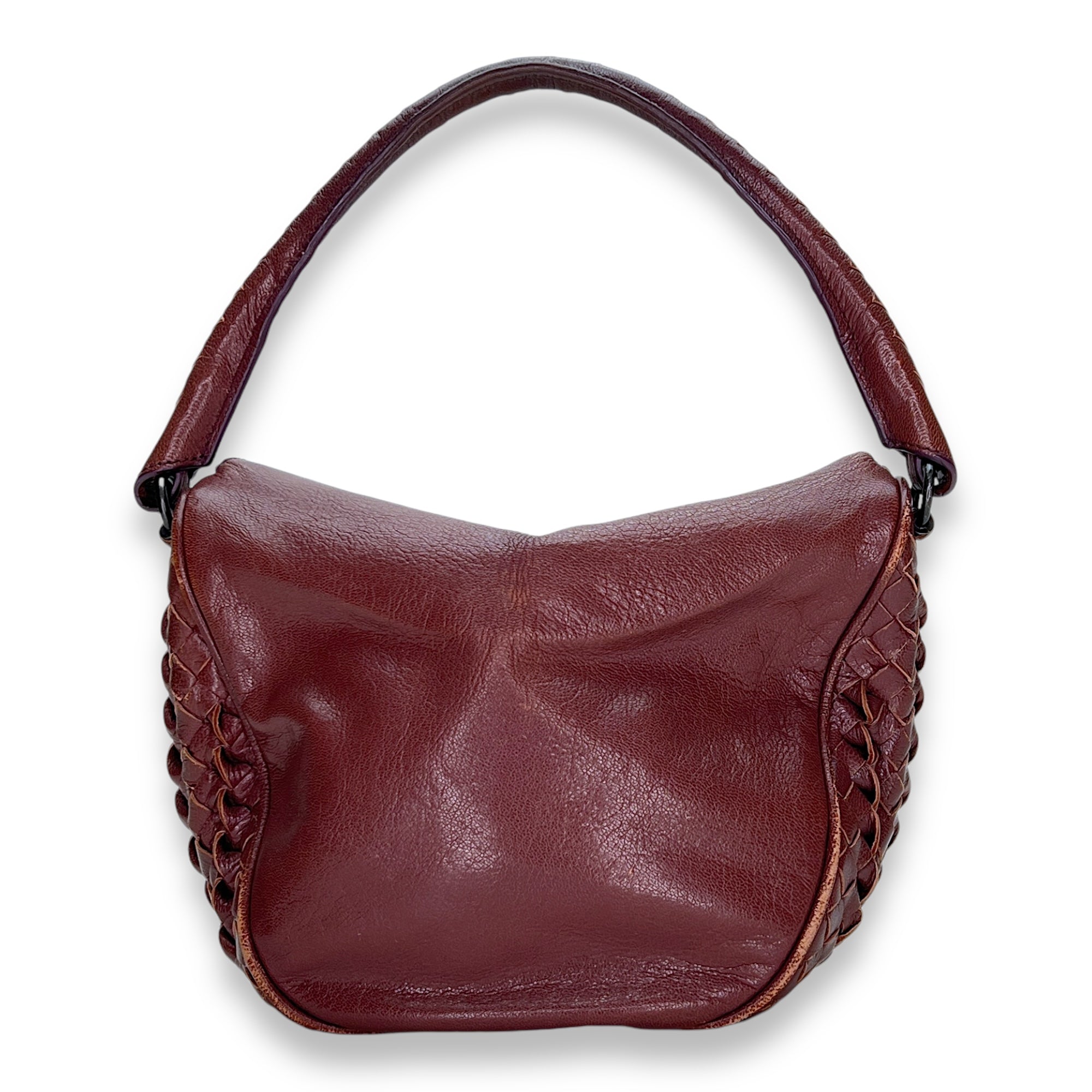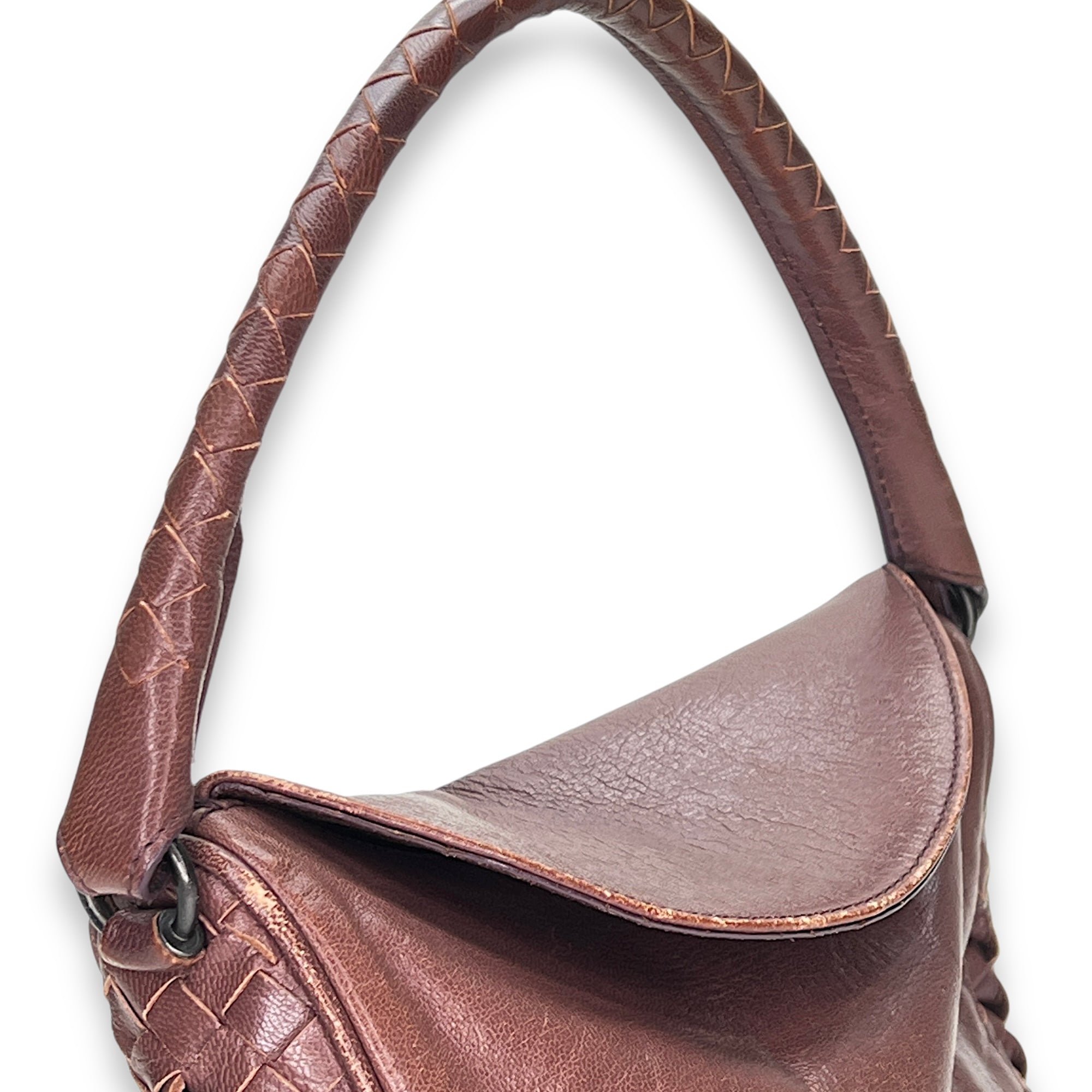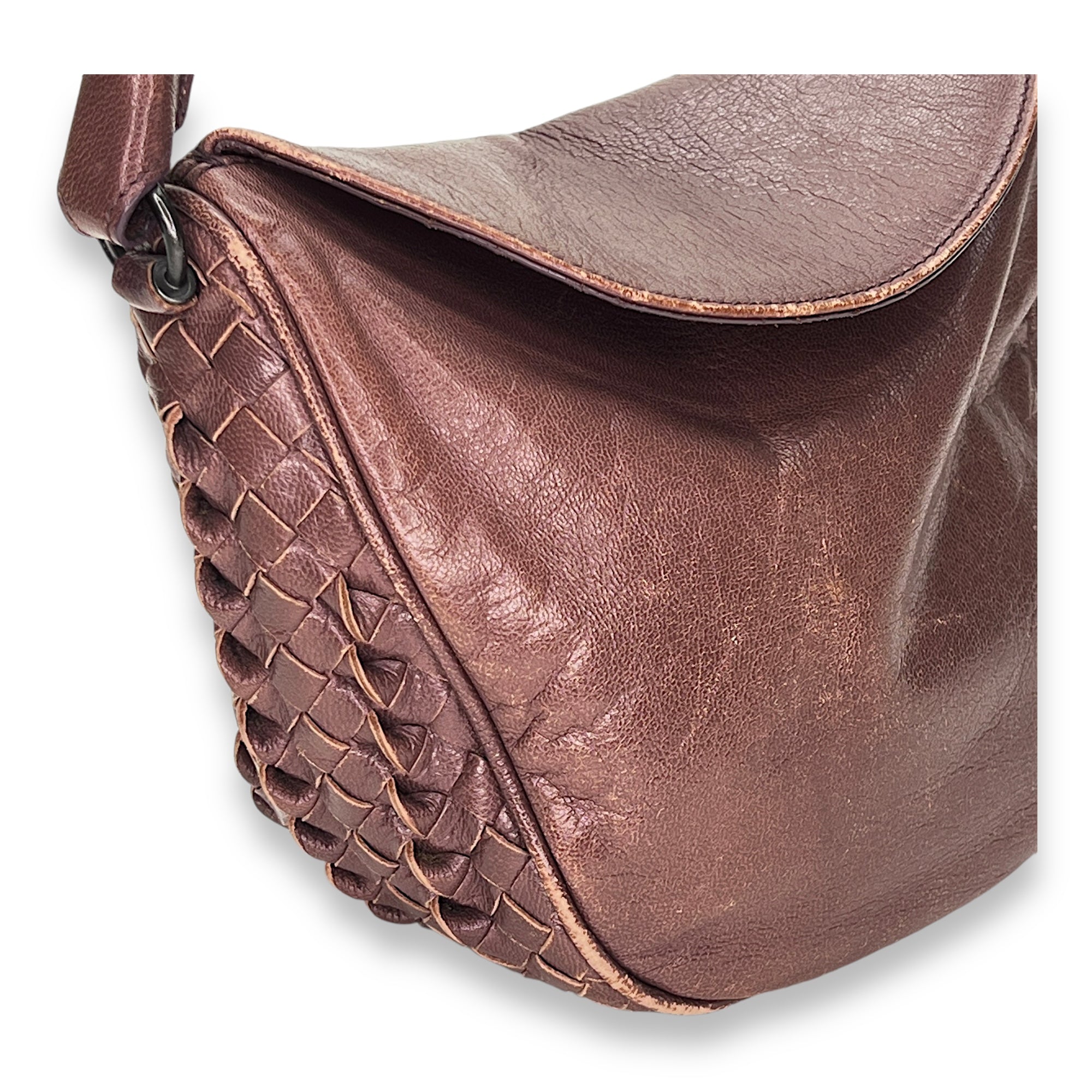 Bags Bottega Veneta Intrecciato Shoulder bag in Calfskin, Gunmetal Hardware Good Condition Brown Shoulder Bag Women Lady Girl
