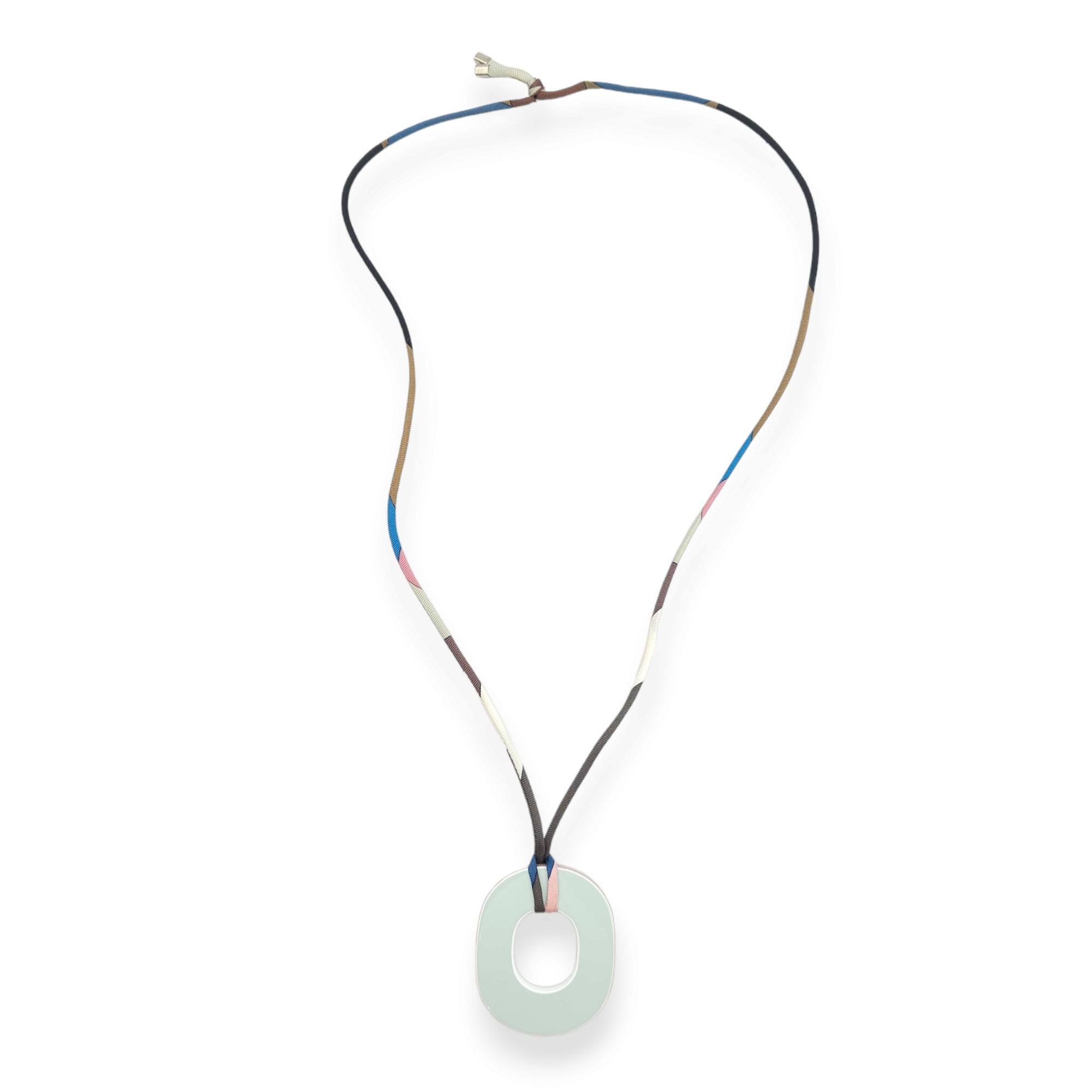 Herm?s Isthme Pink/Ciel Necklace in Lacquer Accessories Necklace Pink Very Good Condition MEN UNISEX