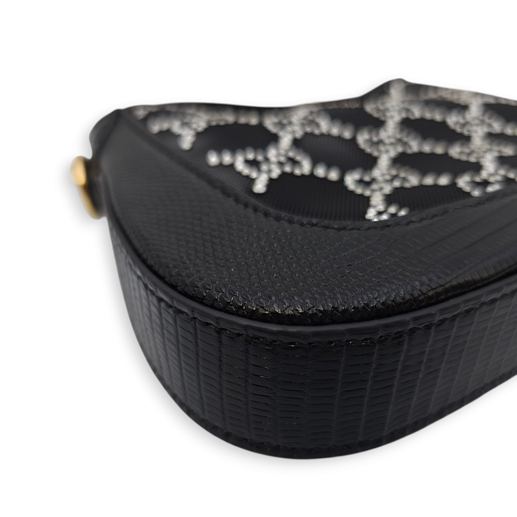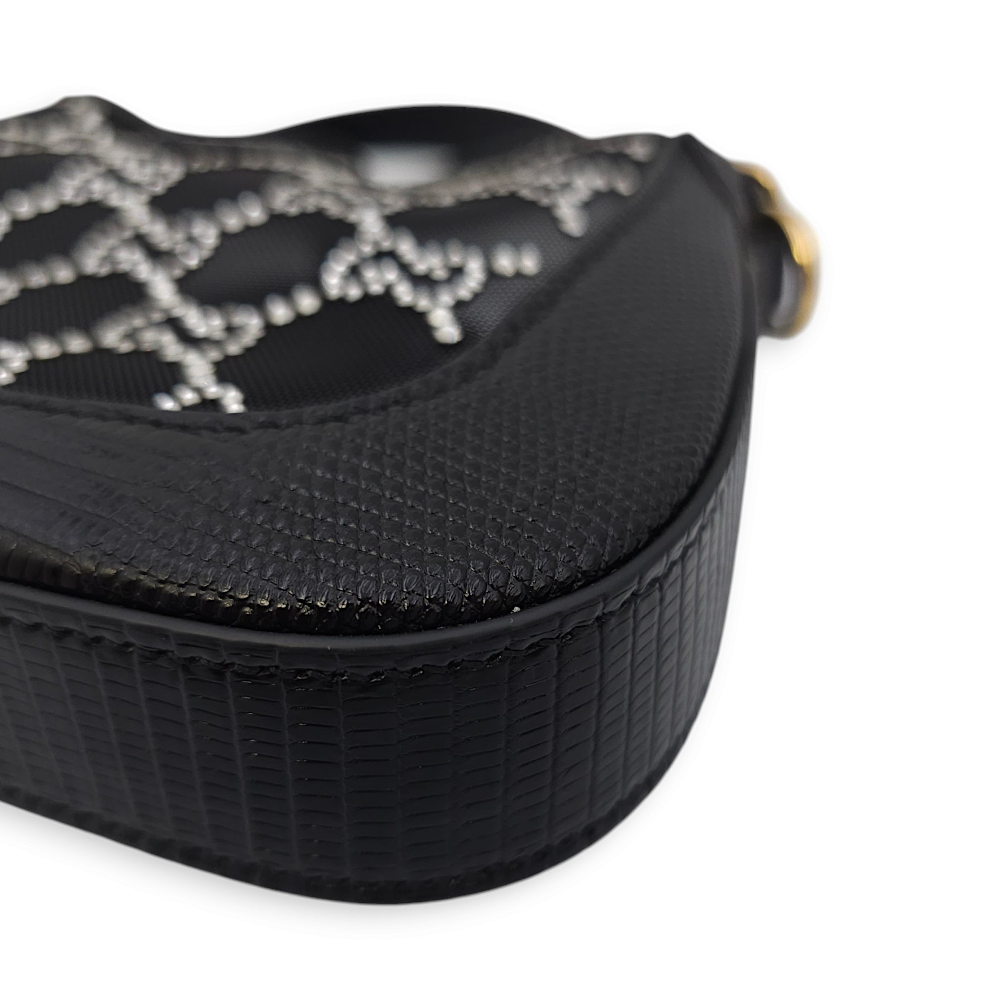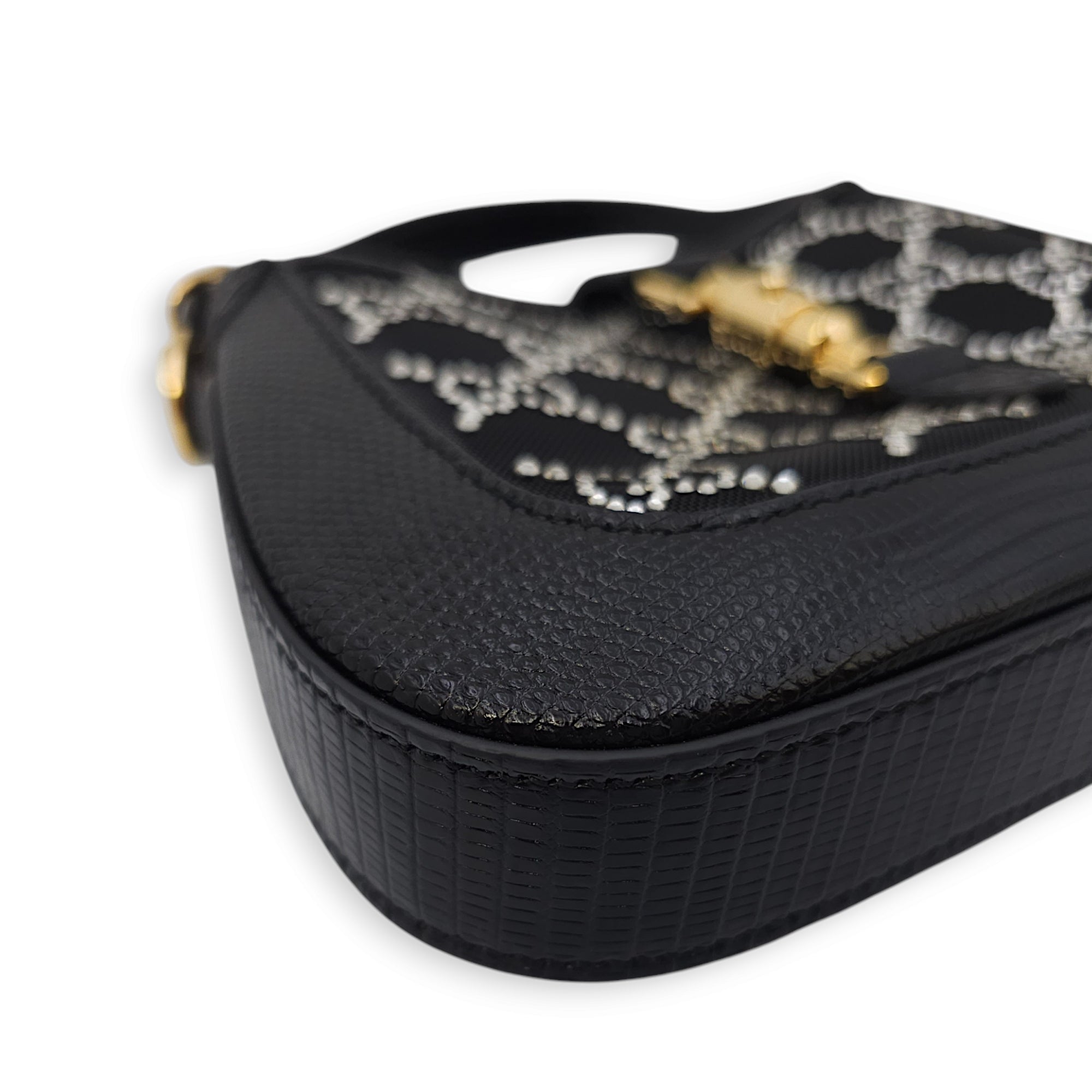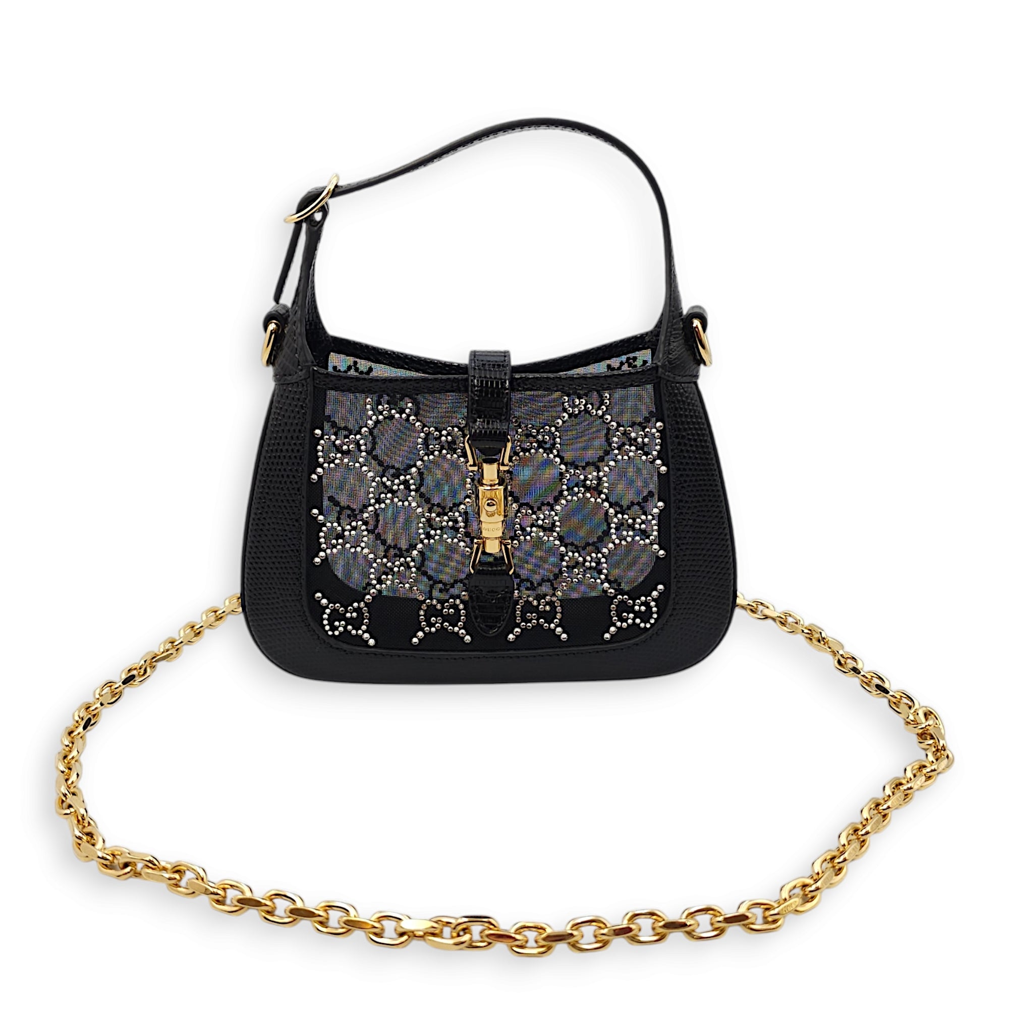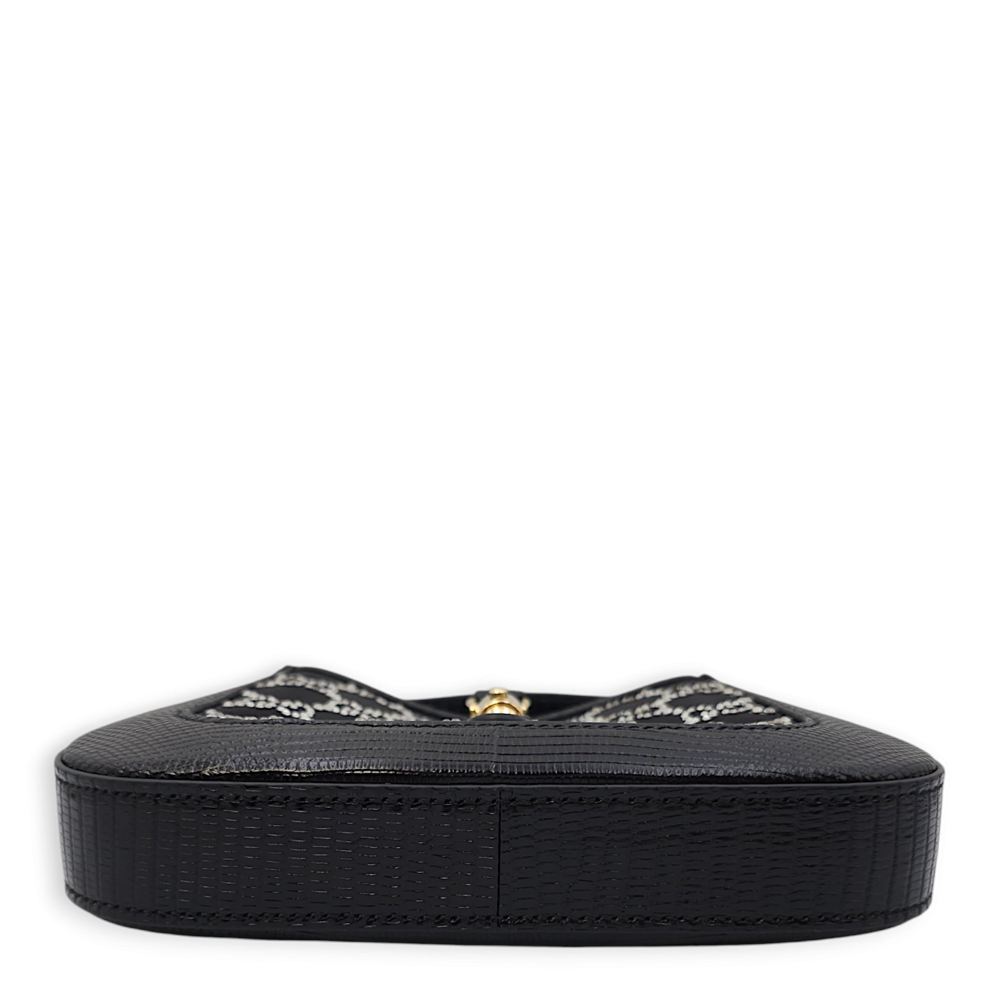 Gucci Jackie 1961 Mini 19x13x3cm Black Shoulder Bag in Lizard, mesh with crystals, Gold hardware Bags Shoulder Bag Black Like New Condition