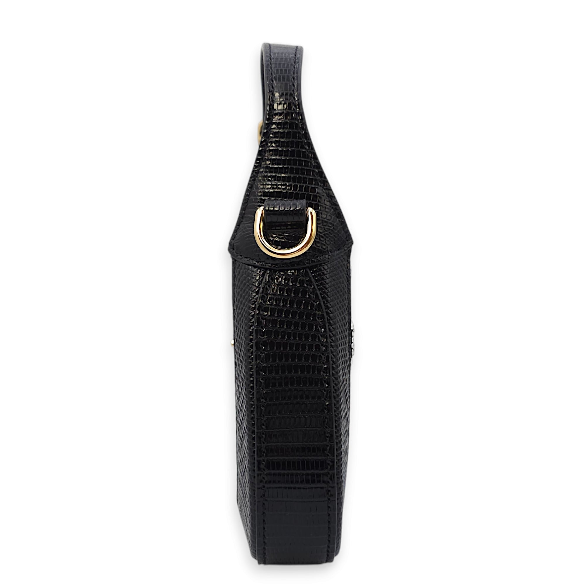 Jackie 1961 Mini 19x13x3cm Black Shoulder Bag in Lizard, mesh with crystals, Gold hardware