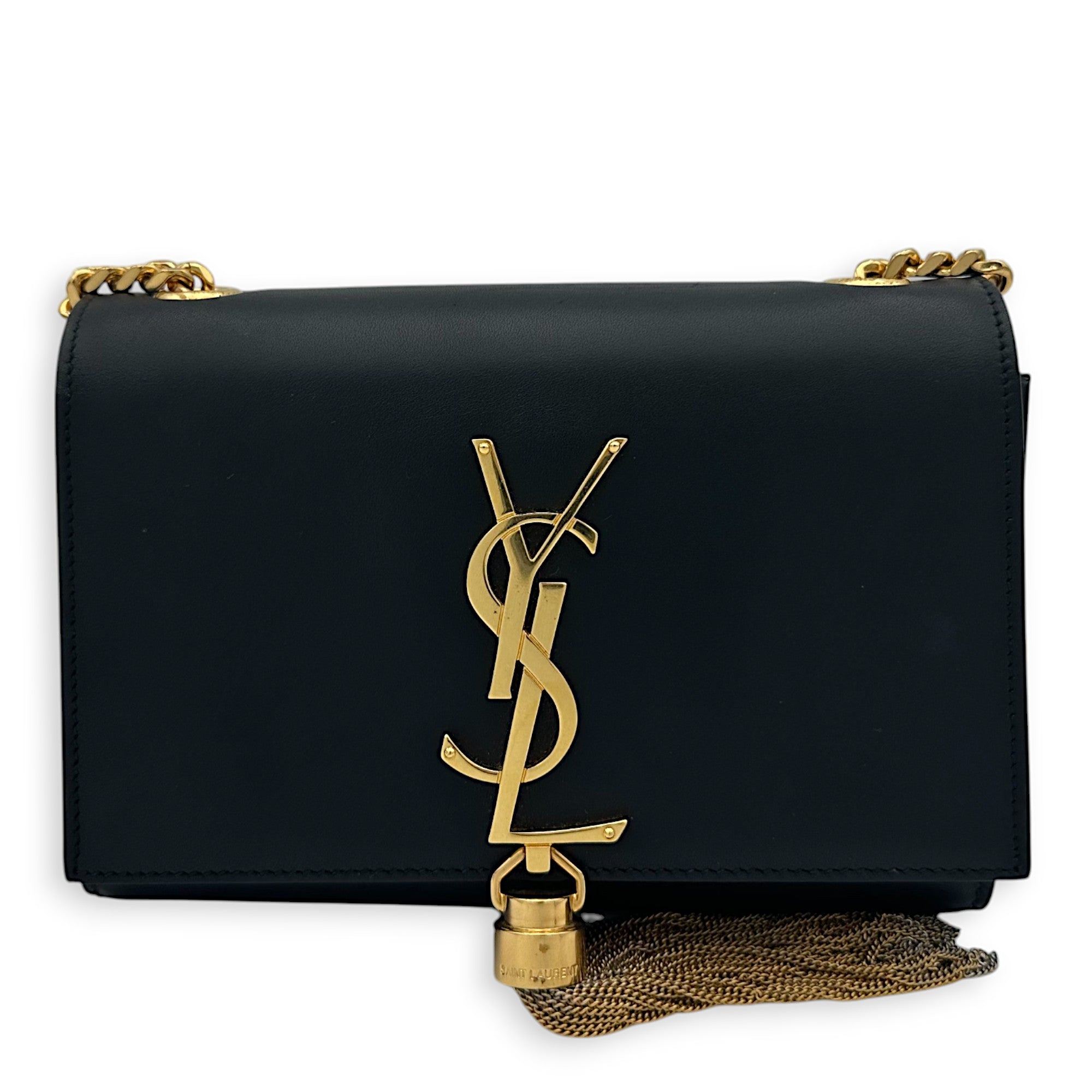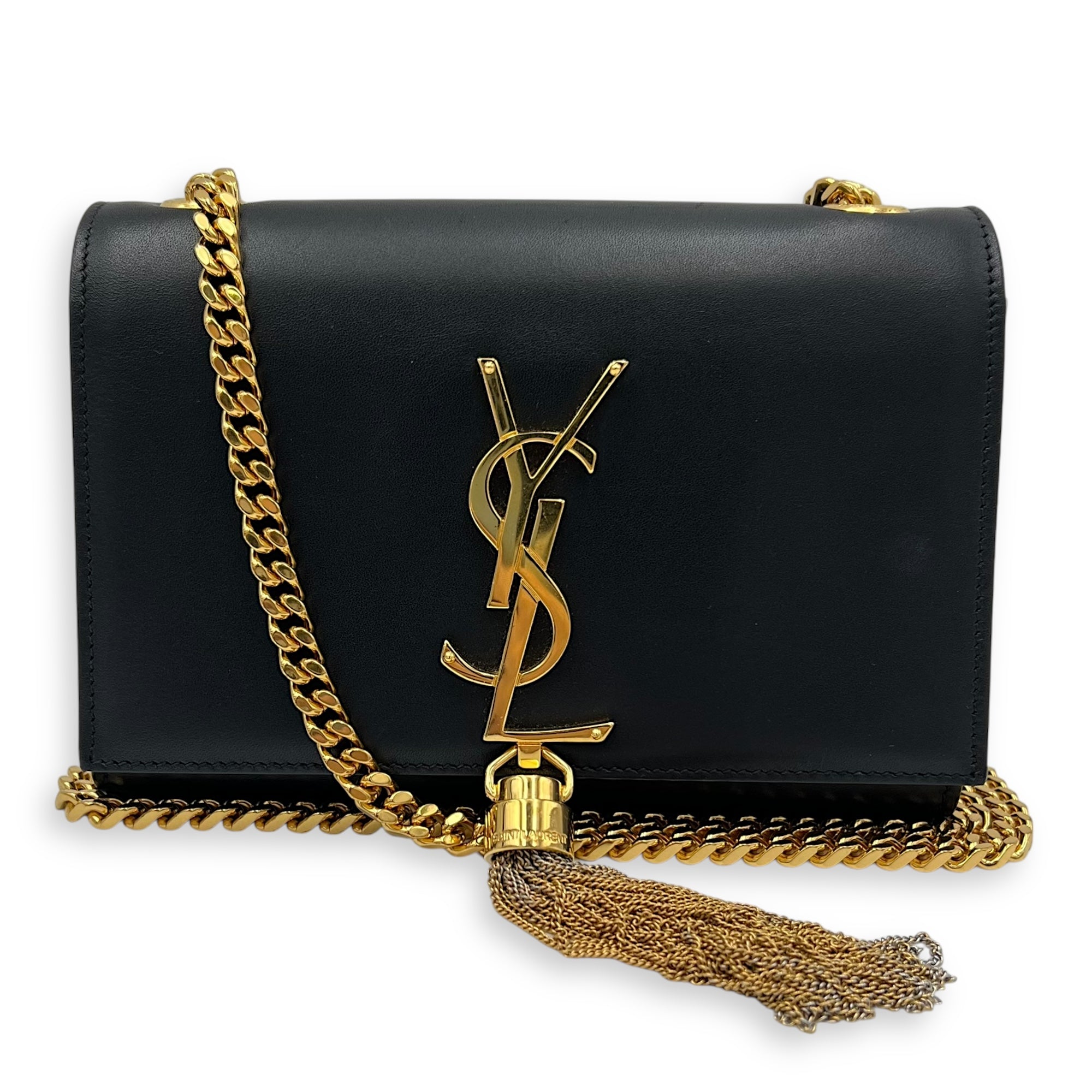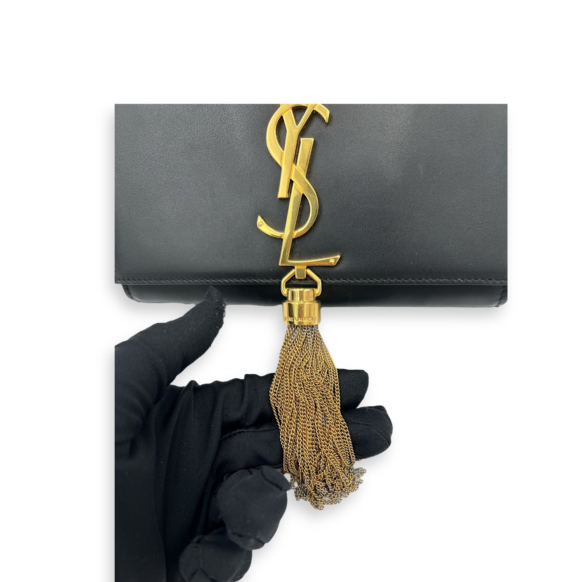 Small Leather Goods Saint Laurent KATE TASSEL Mini Wallet on chain in Calfskin, Gold Hardware Good Condition Black Wallet on Chain Women Lady Girl