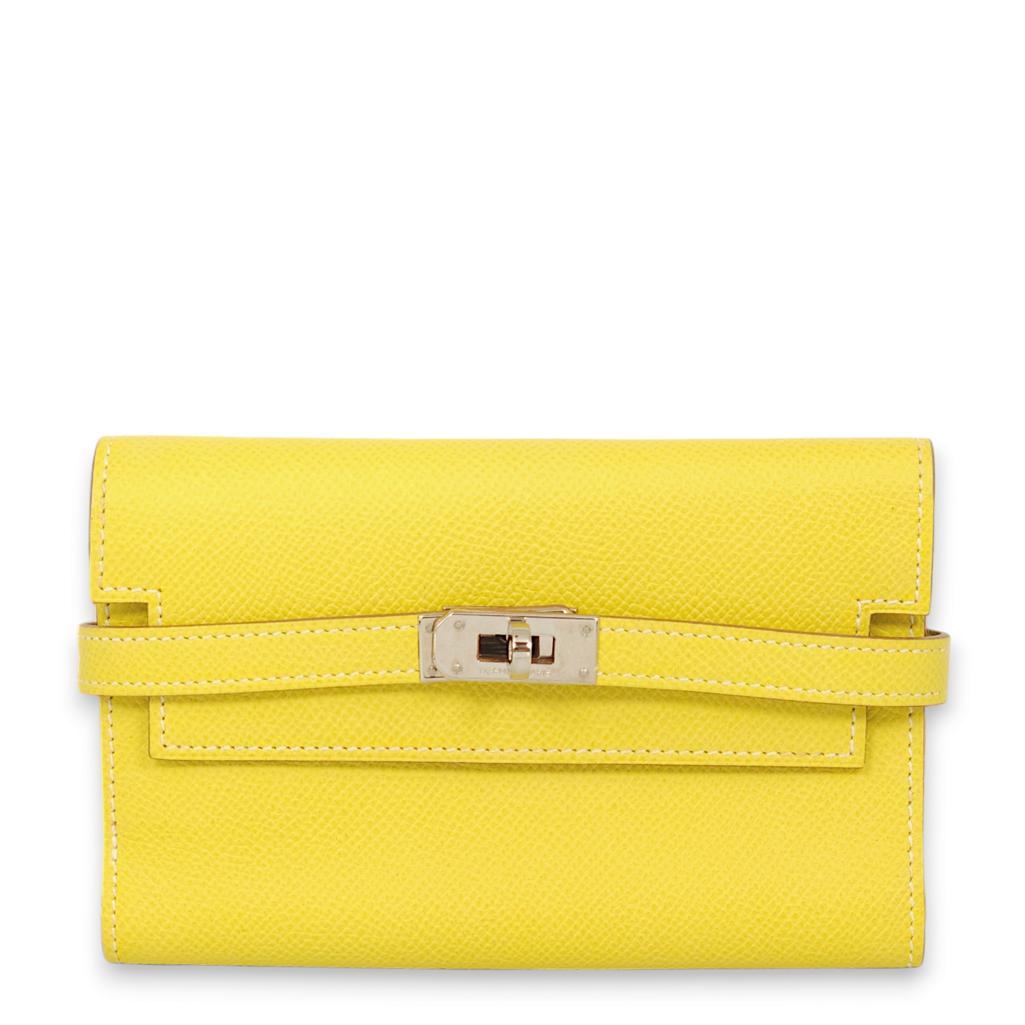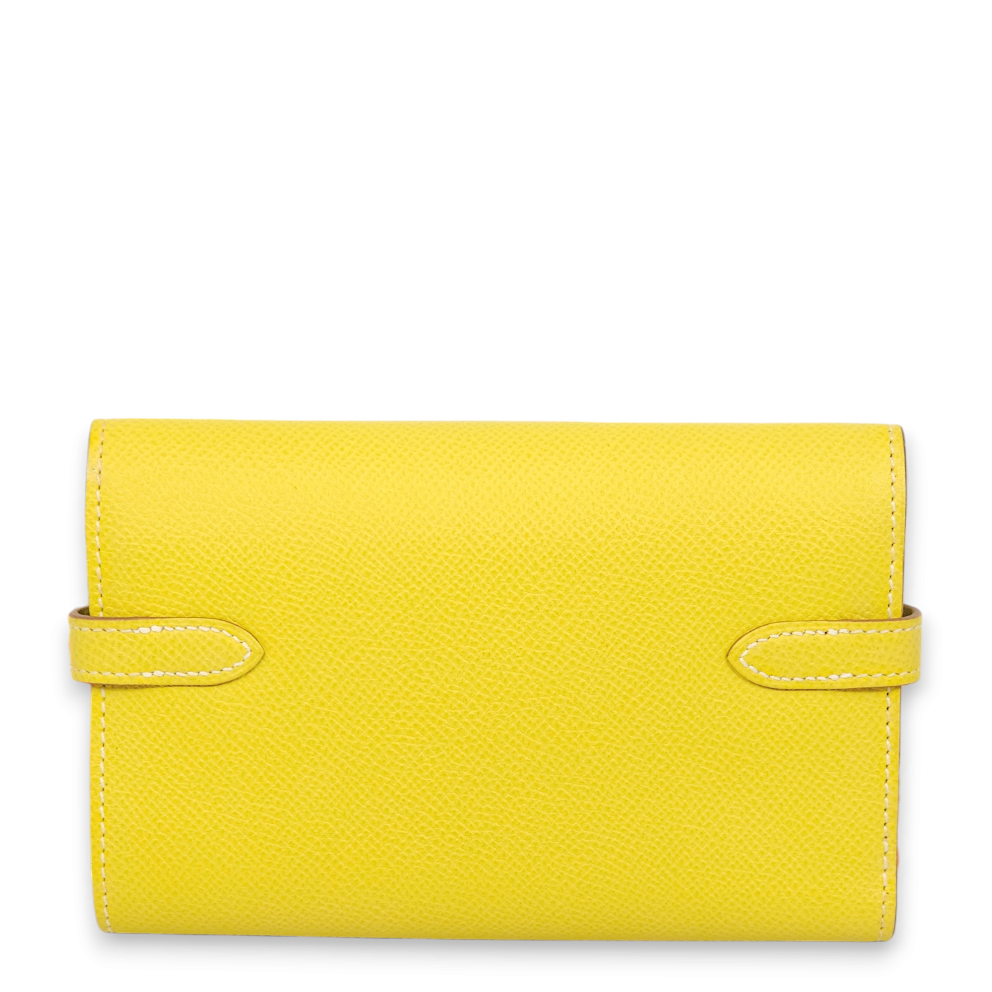 Herm?s Kelly Depliant Lime/ Gris Perle Wallet in Epsom, Palladium hardware Small Leather Goods Wallet Yellow Good Condition MEN UNISEX