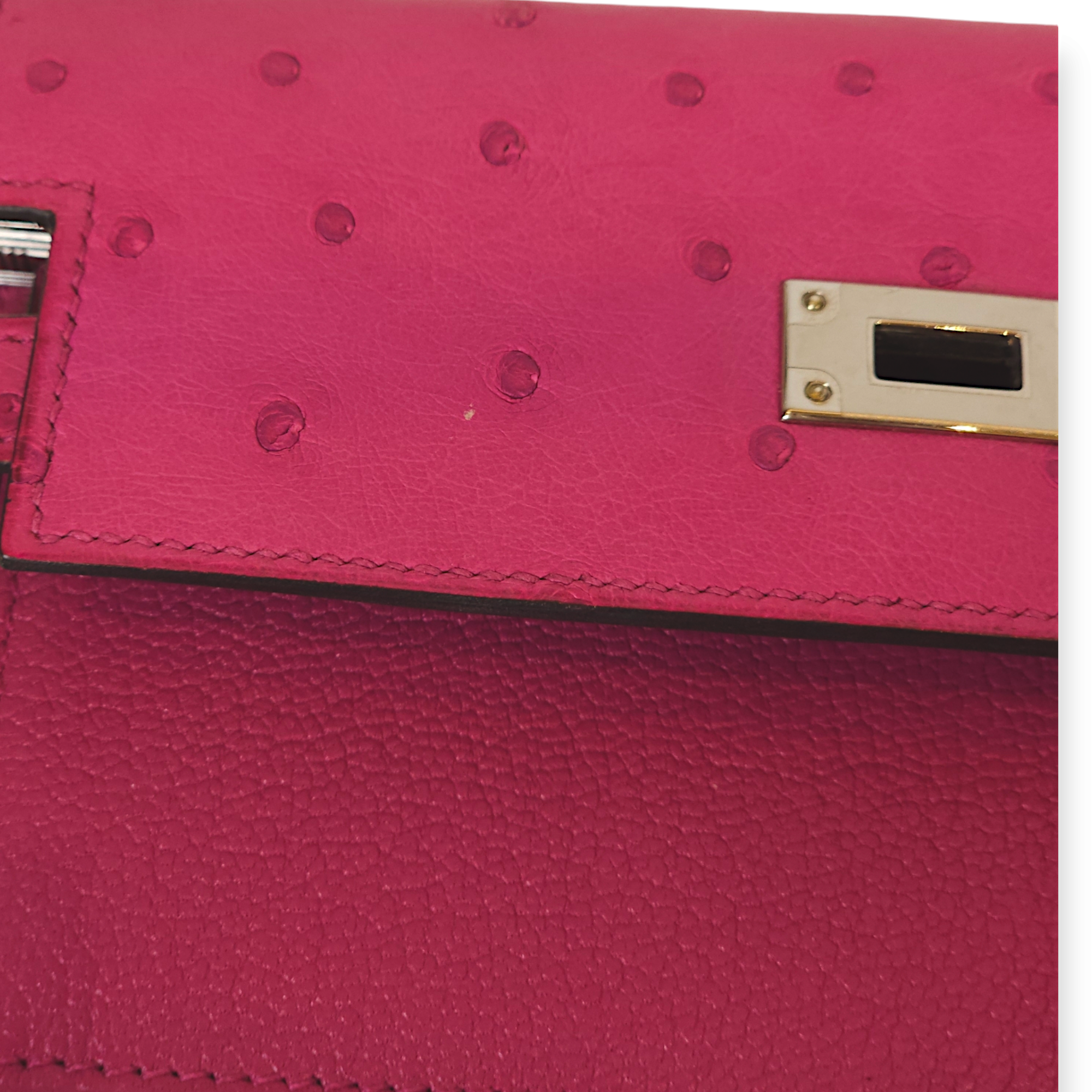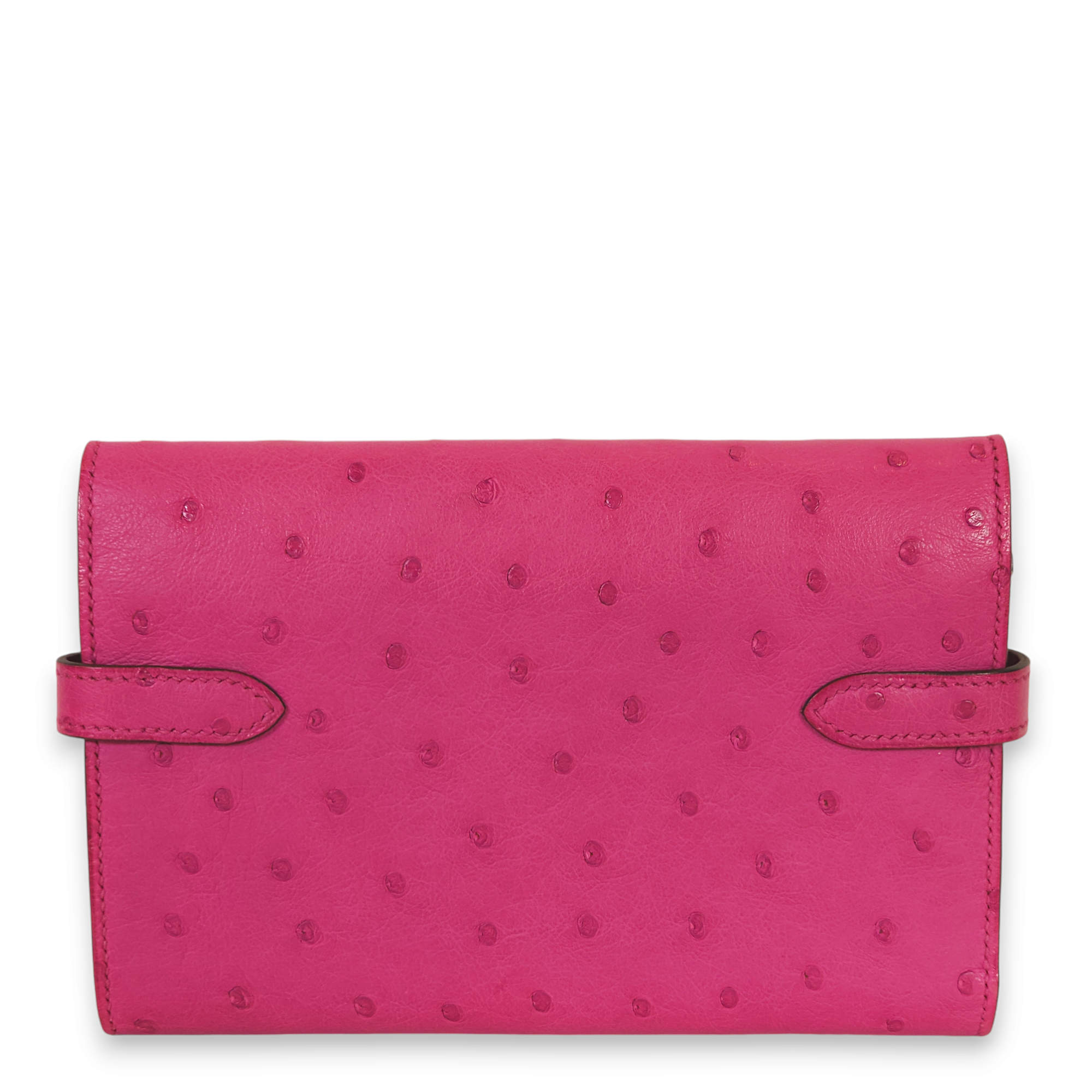 Kelly Depliant Rose Pourpre Wallet in Ostrich, Palladium hardware
