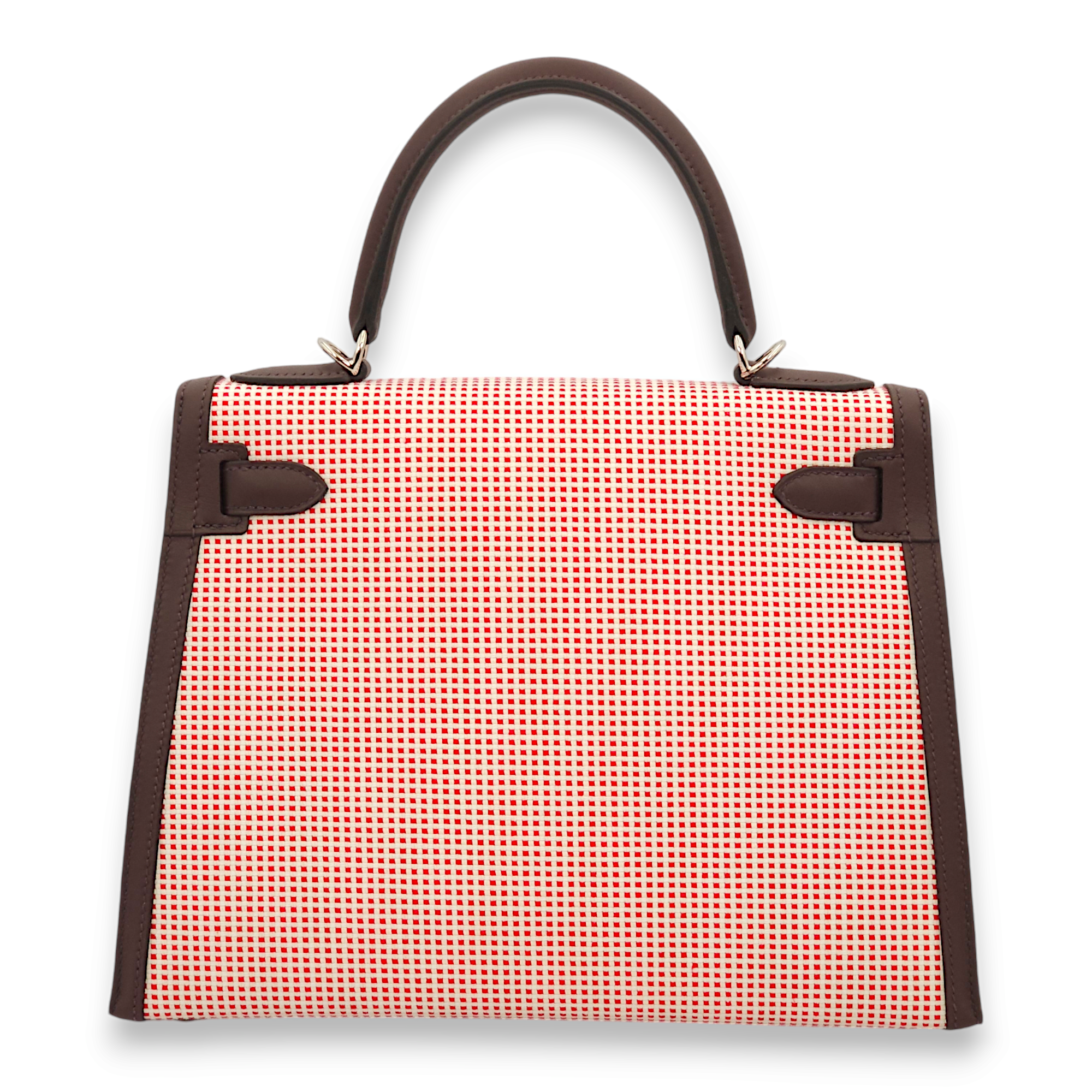 Herm?s Kelly Leuddrile 28 Rouge Sellier/Ecru in Swift, Palladium hardware Bags Top Handle Bag Multi-colour Brand New MEN UNISEX