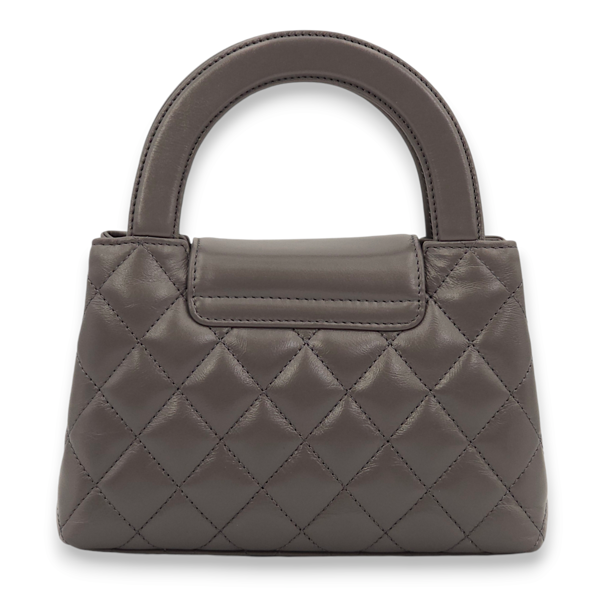 Kelly Mini Grey Crossbody Bag in Lambskin, Gold hardware