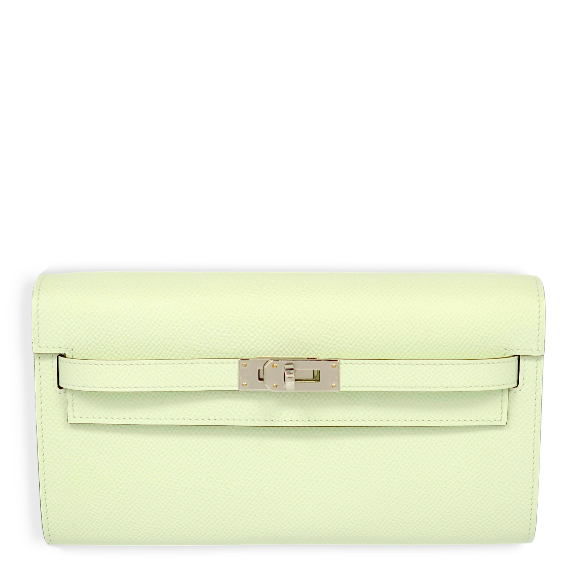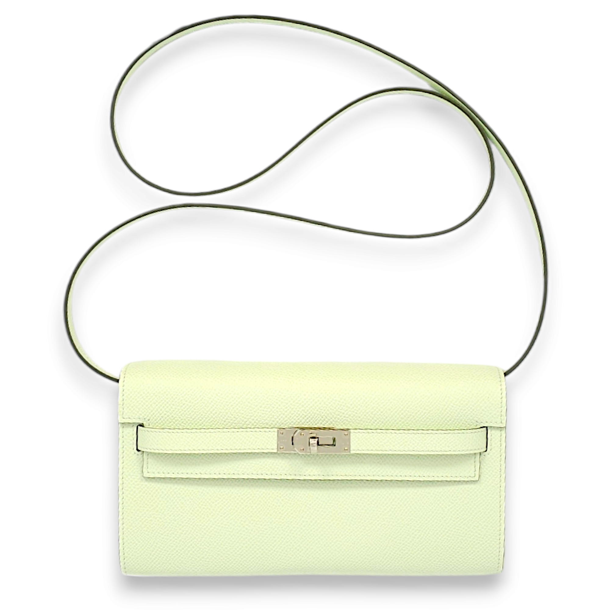 Herm?s Kelly To Go Vert Fizz Crossbody Bag in Epsom, Palladium hardware Small Leather Goods Crossbody Bag Green Brand New MEN UNISEX
