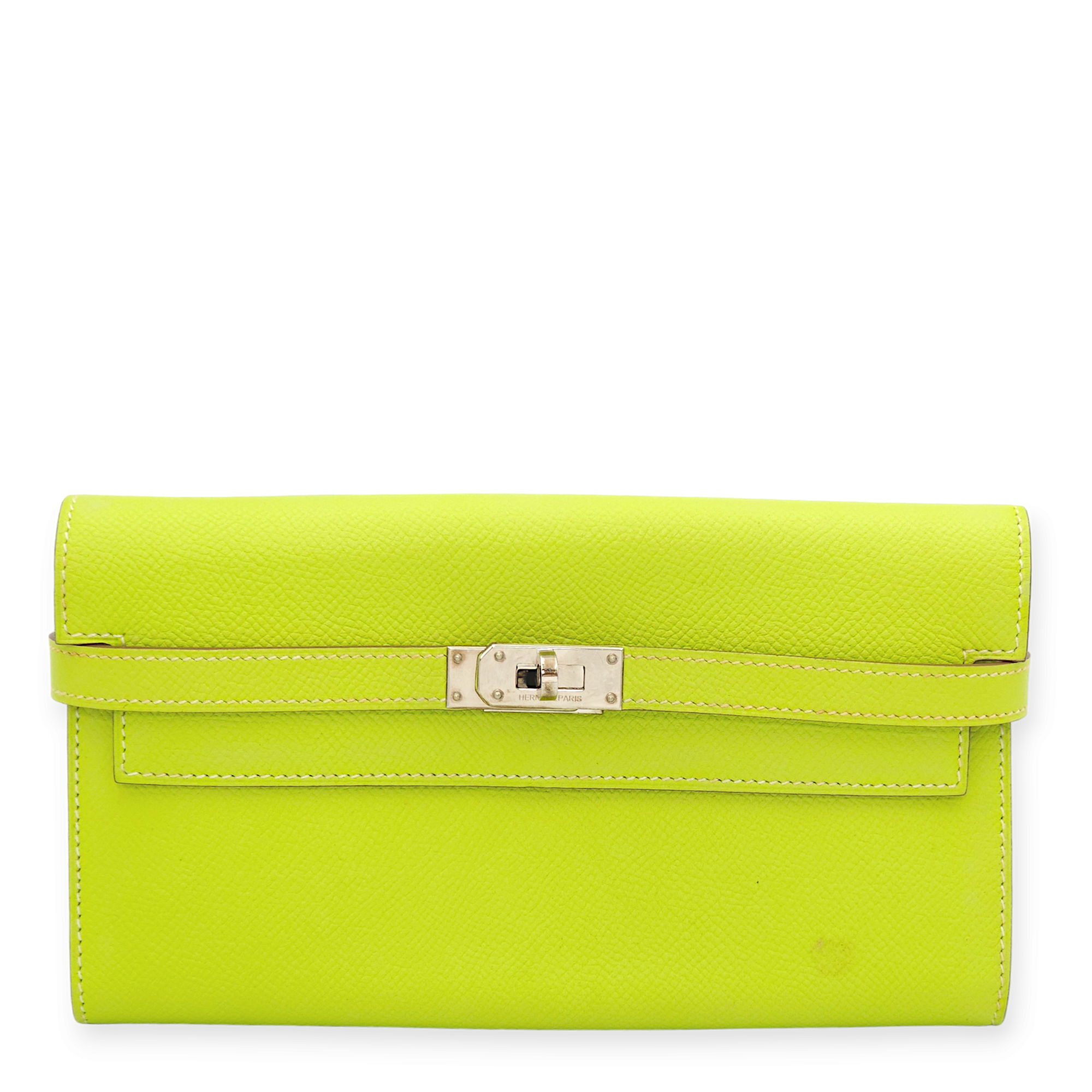 Herm?s Kiwi/Vert Veronese Kelly Kiwi/Vert Veronese Wallet in Epsom, Palladium hardware Small Leather Goods Wallet Green Fair Condition MEN UNISEX