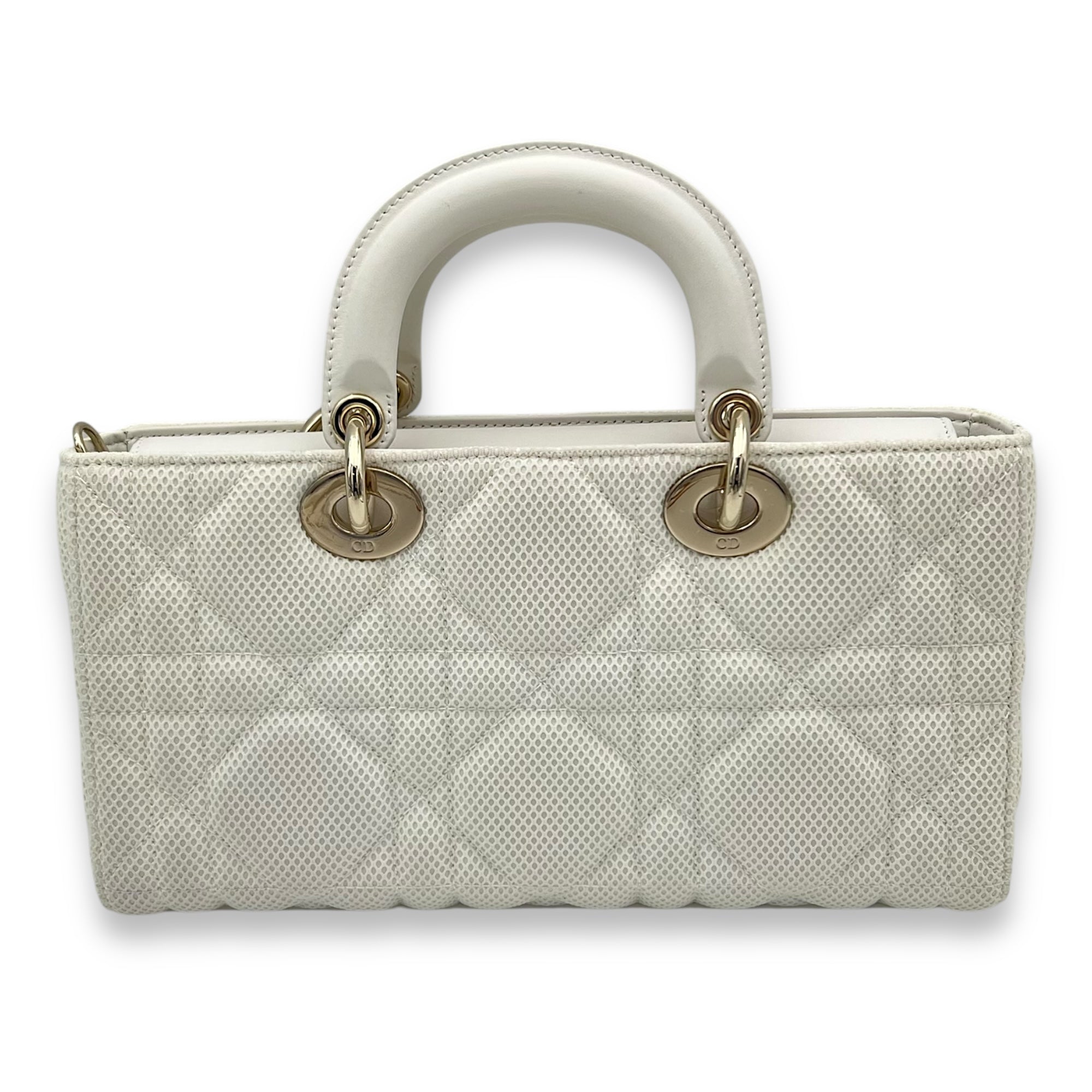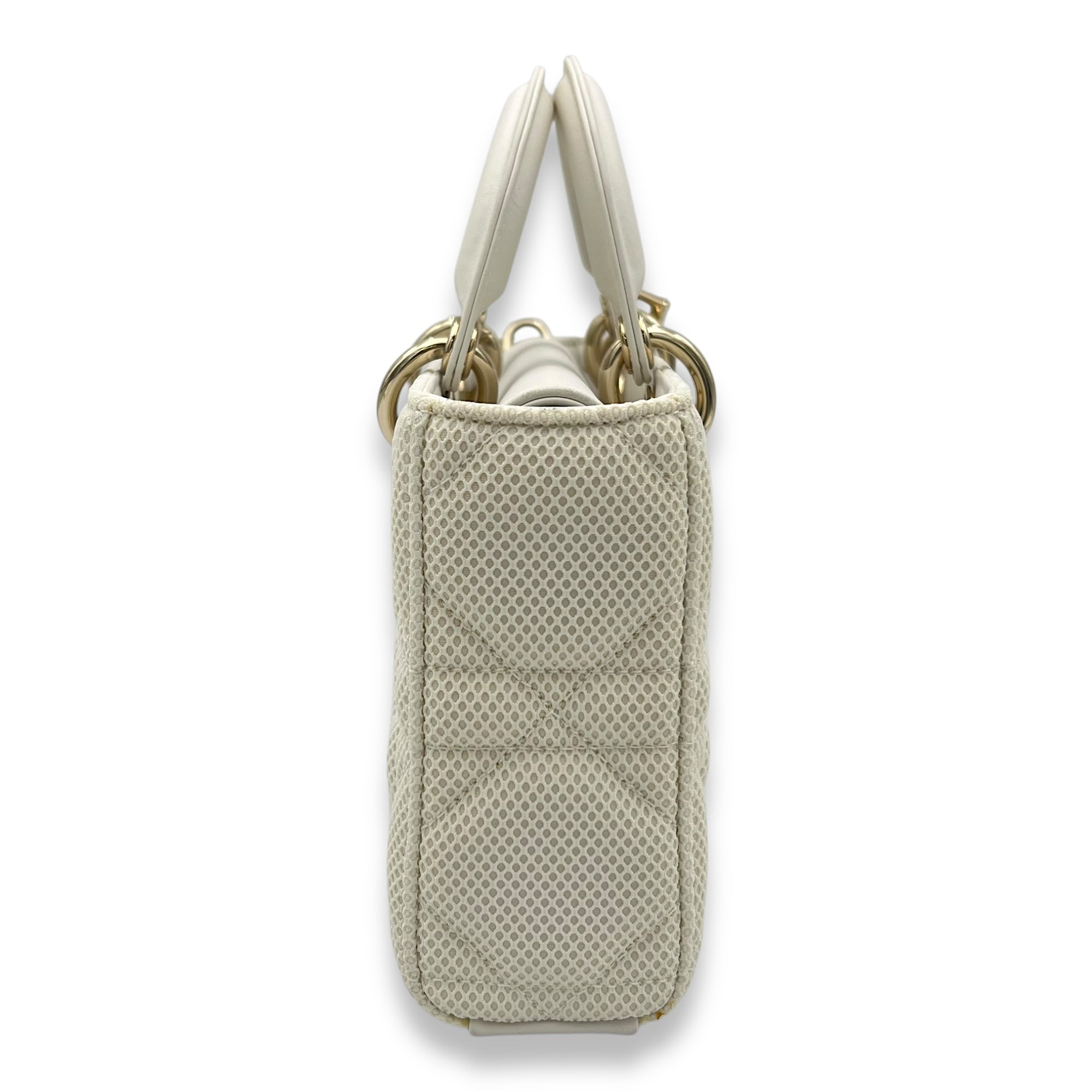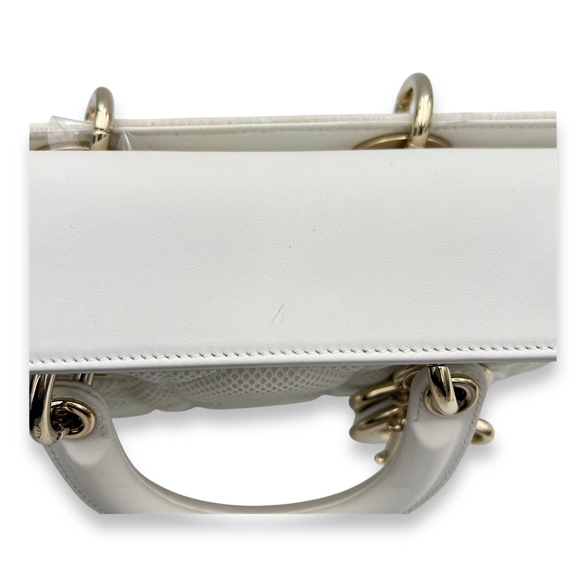 Bags Christian Dior Lady D-Joy Maxi White Top Handle Bag in Mesh, Light Gold hardware Very Good Condition White Top Handle Bag Women Lady Girl