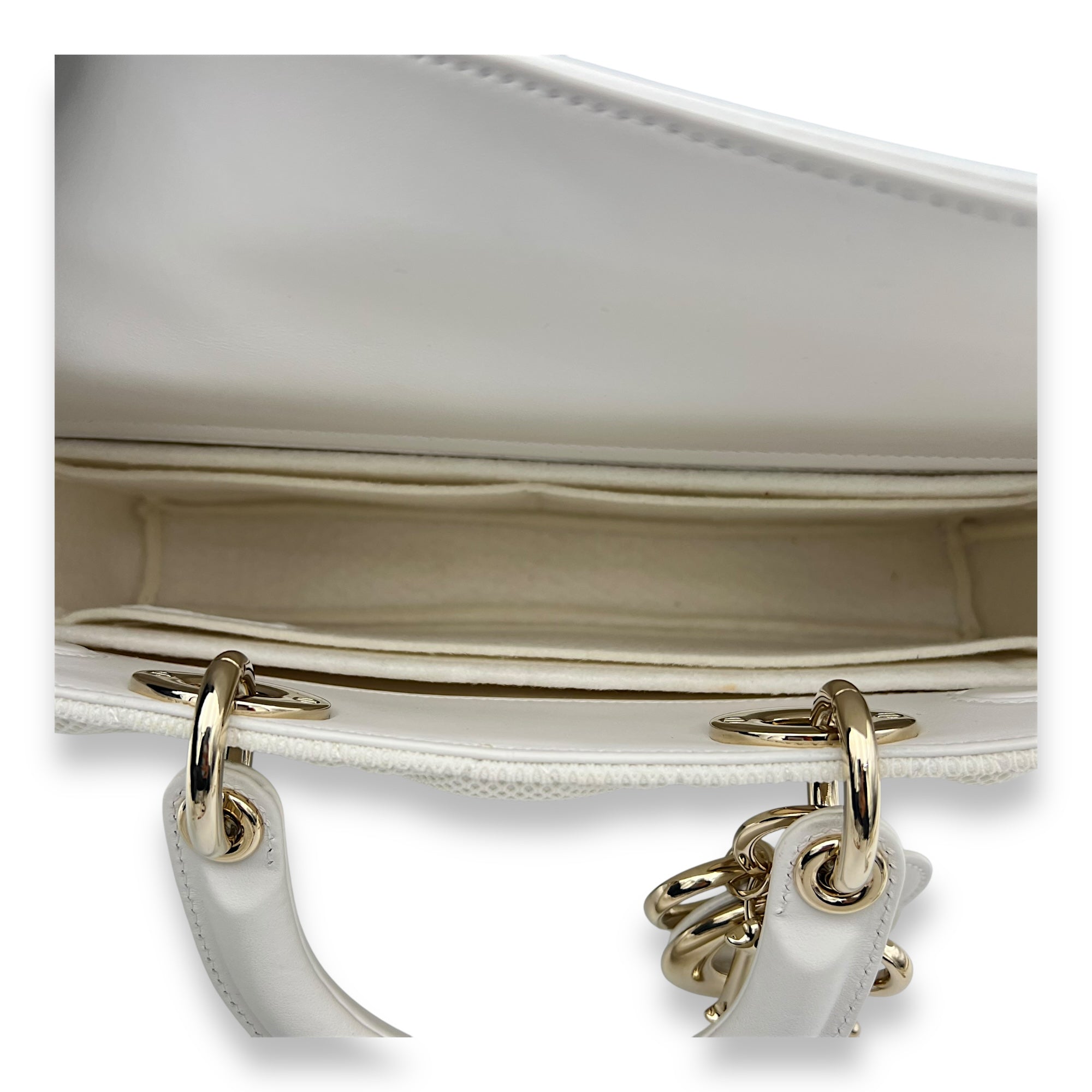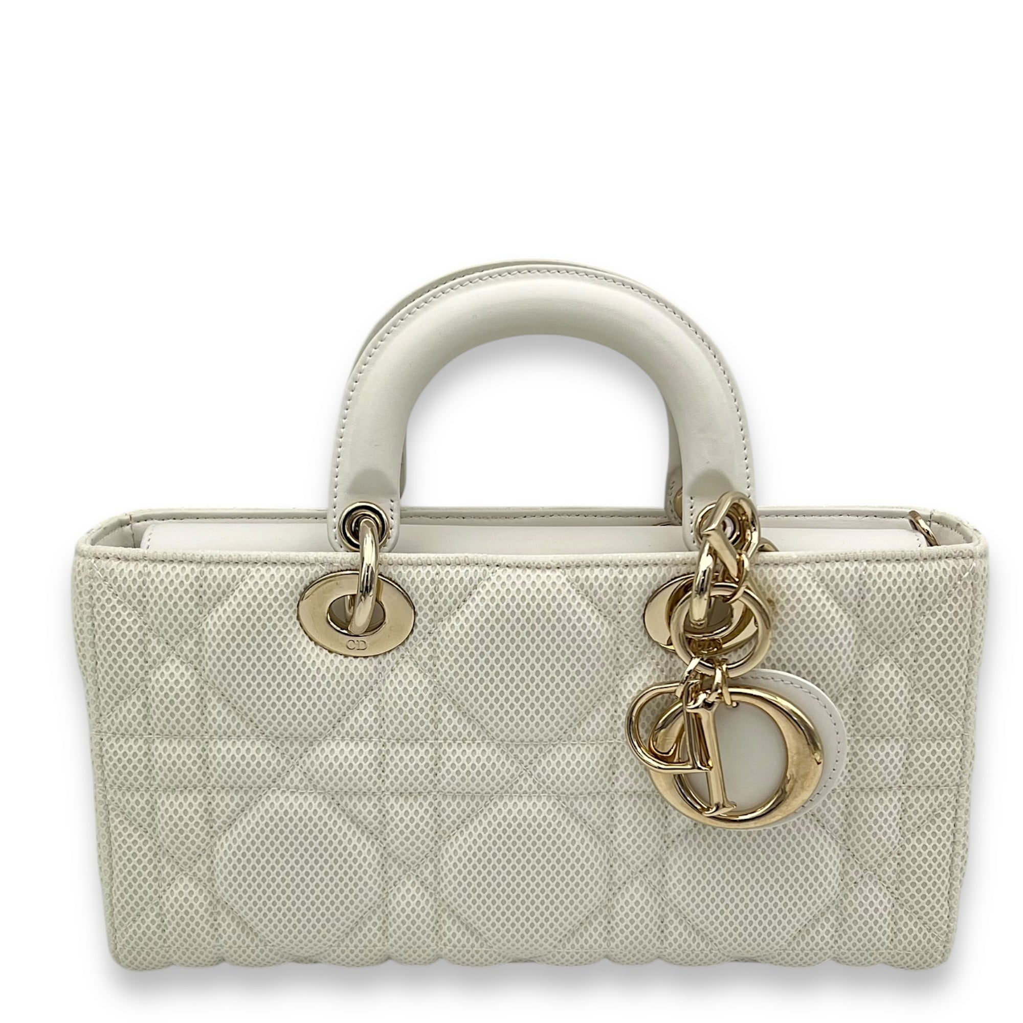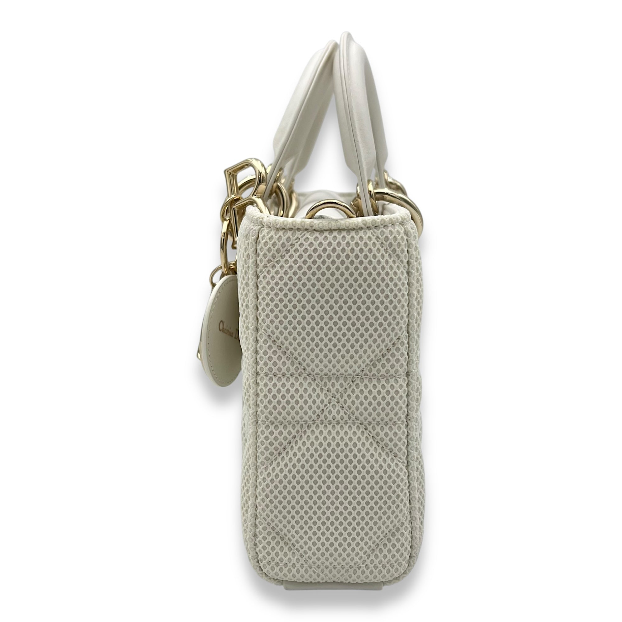 Bags Christian Dior Lady D-Joy Maxi White Top Handle Bag in Mesh, Light Gold hardware Very Good Condition White Top Handle Bag Women Lady Girl