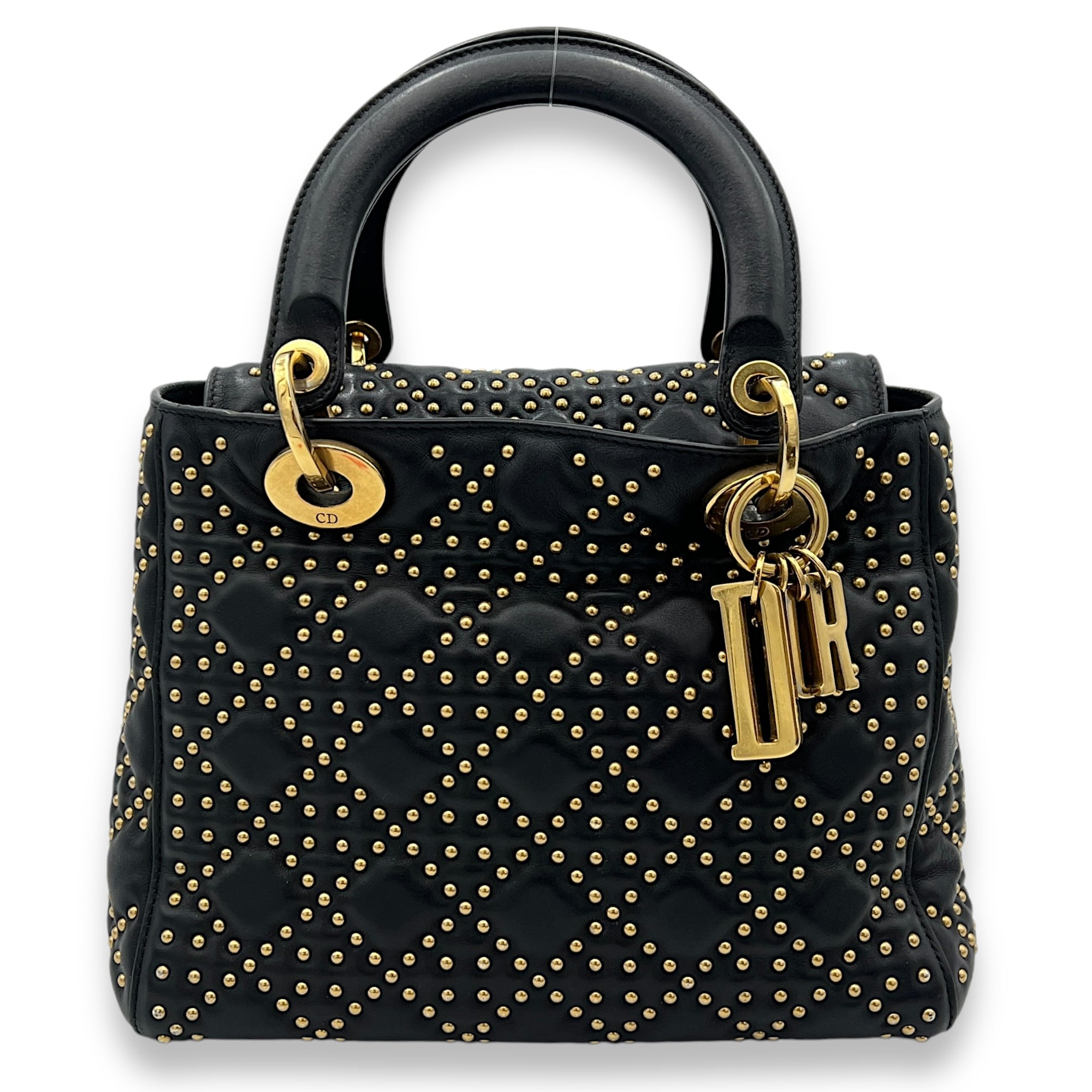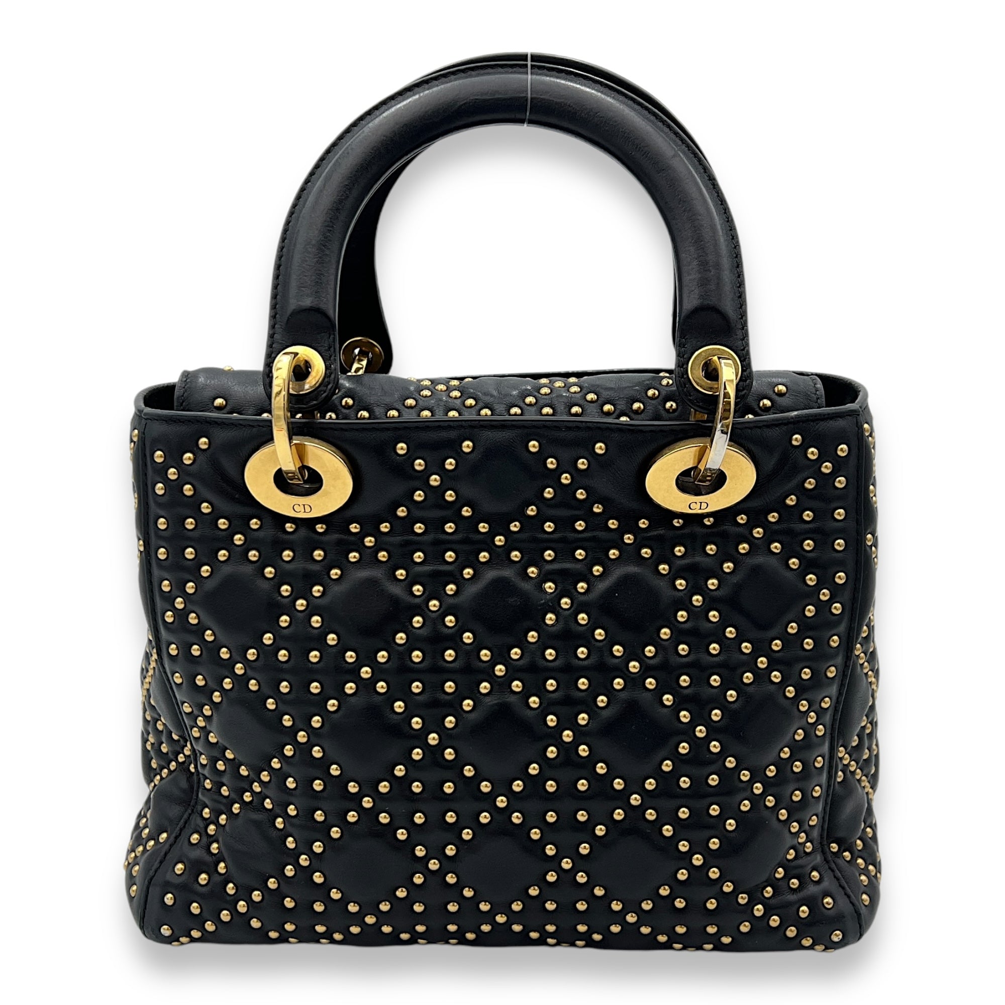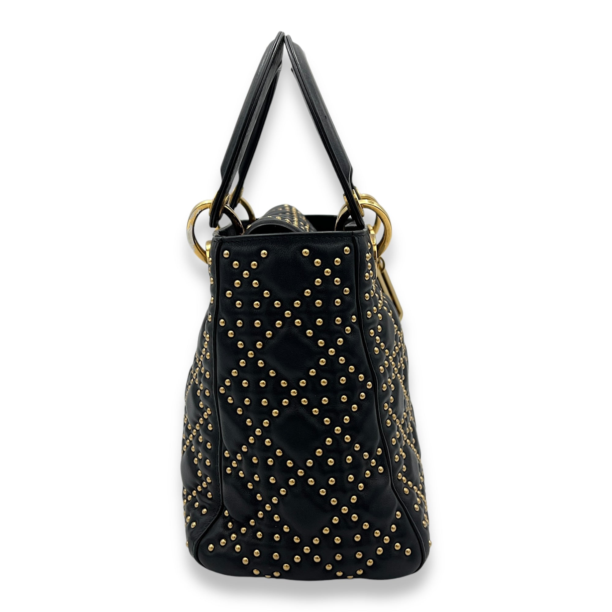 Bags Christian Dior Lady Dior Medium Top handle bag in Lambskin, Gold Hardware Good Condition Black Top Handle Bag Women Lady Girl