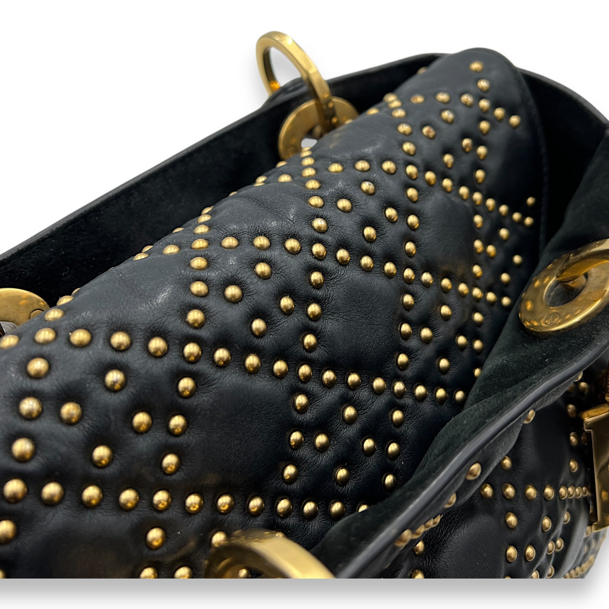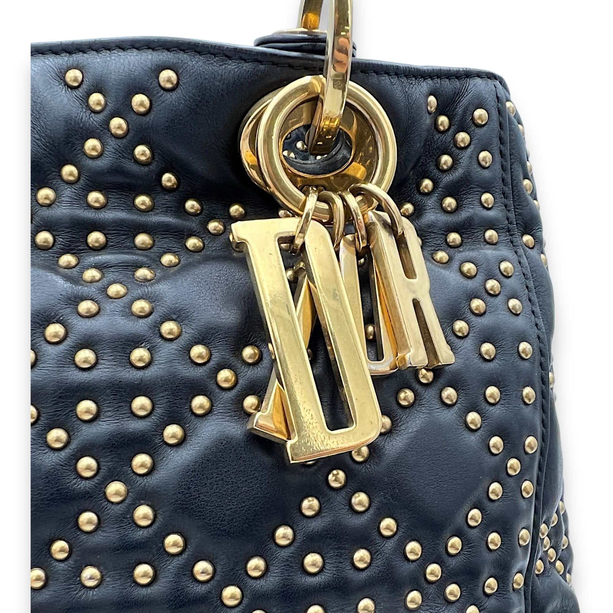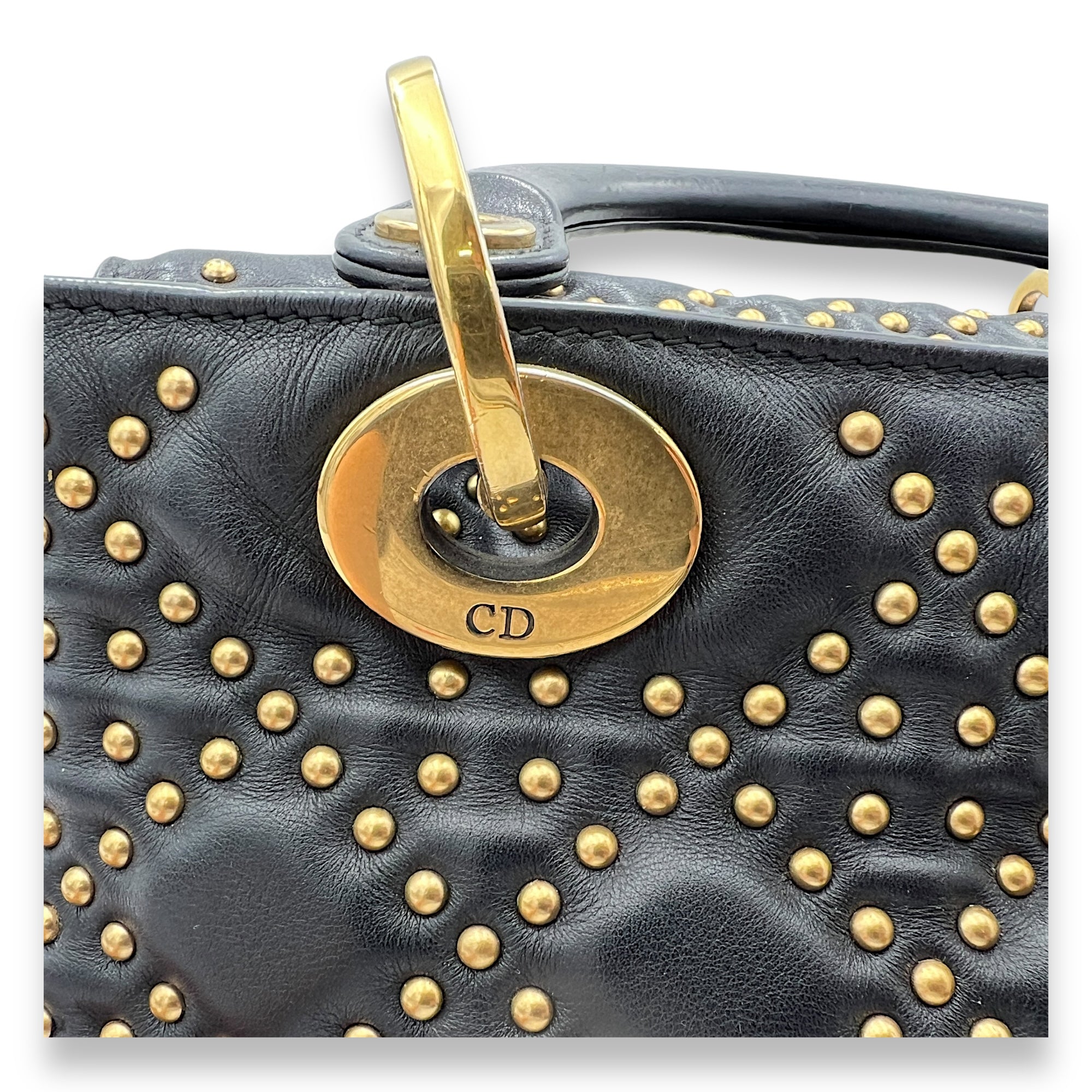 Bags Christian Dior Lady Dior Medium Top handle bag in Lambskin, Gold Hardware Good Condition Black Top Handle Bag Women Lady Girl