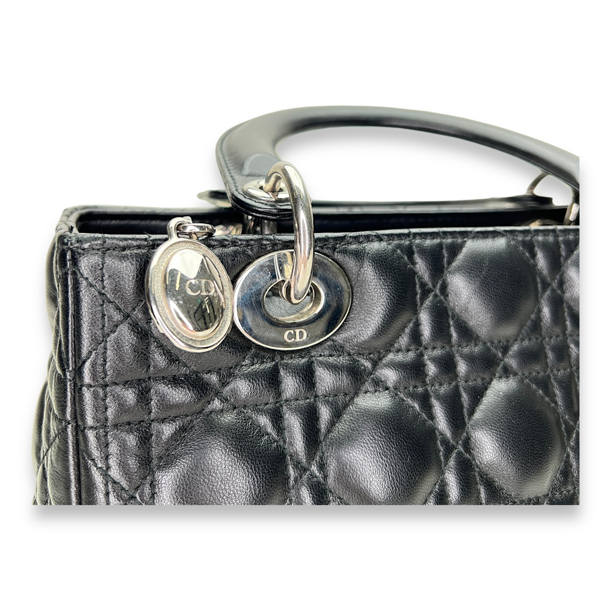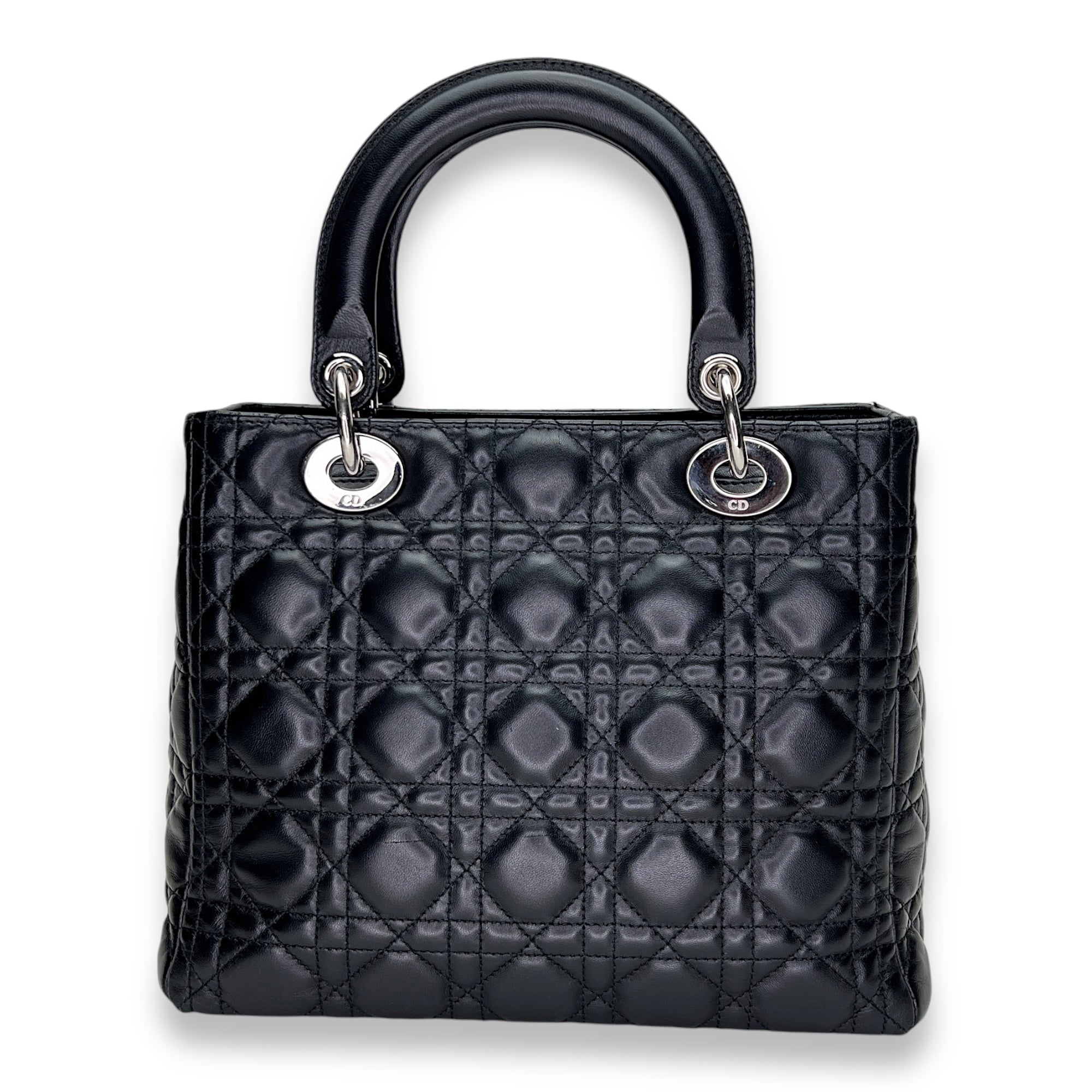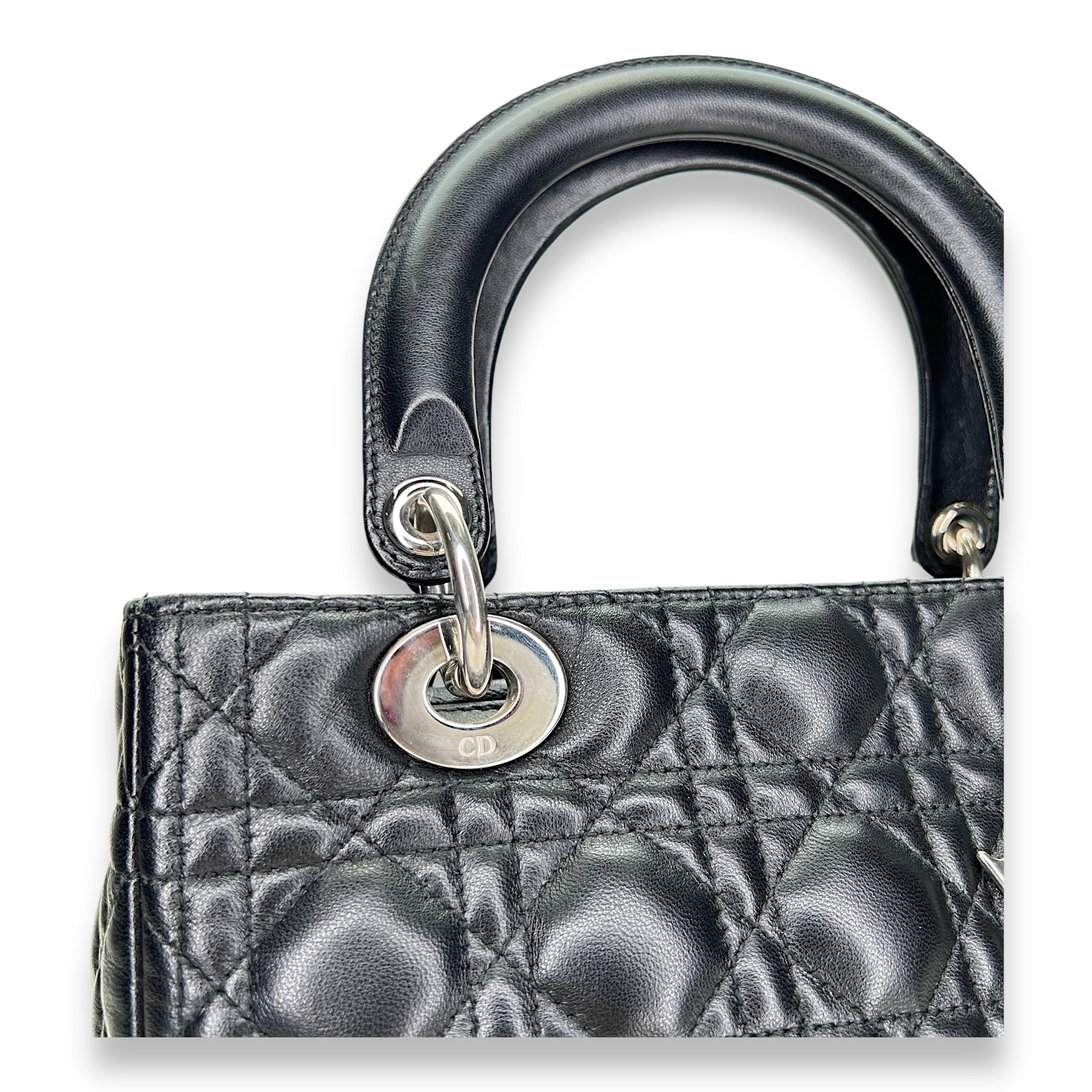 Bags Christian Dior Lady Dior Medium Top handle bag in Lambskin, Silver Hardware Good Condition Black Top Handle Bag Women Lady Girl