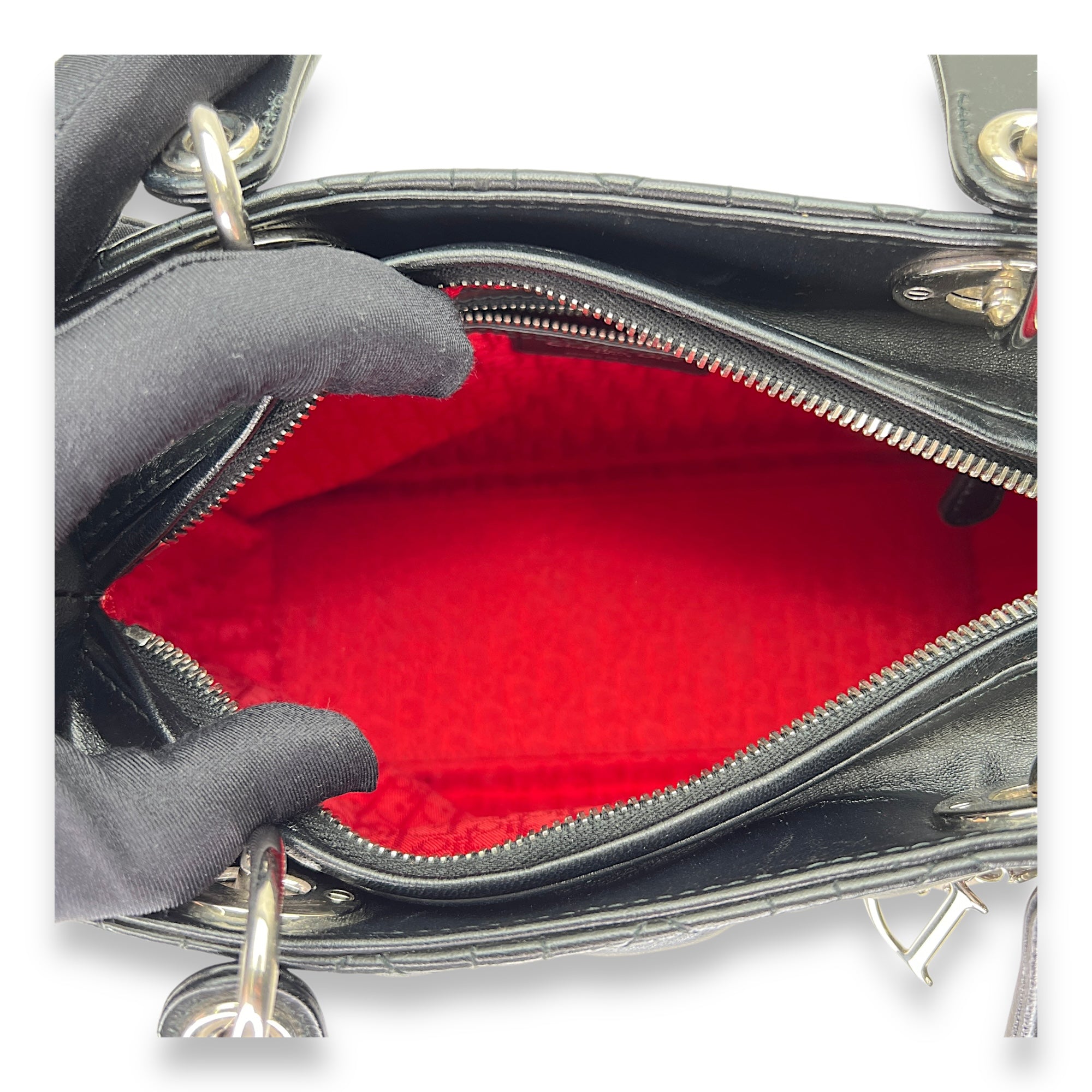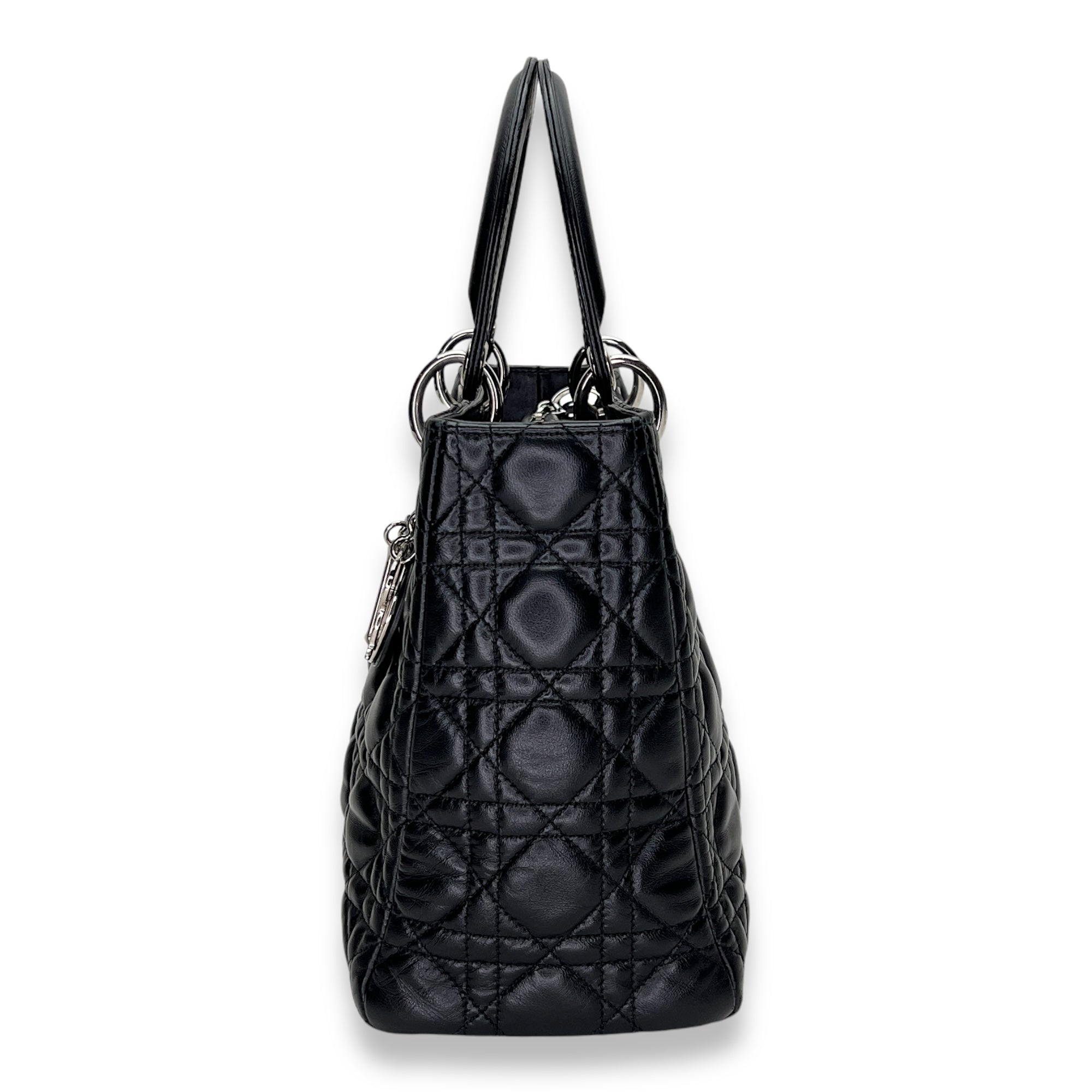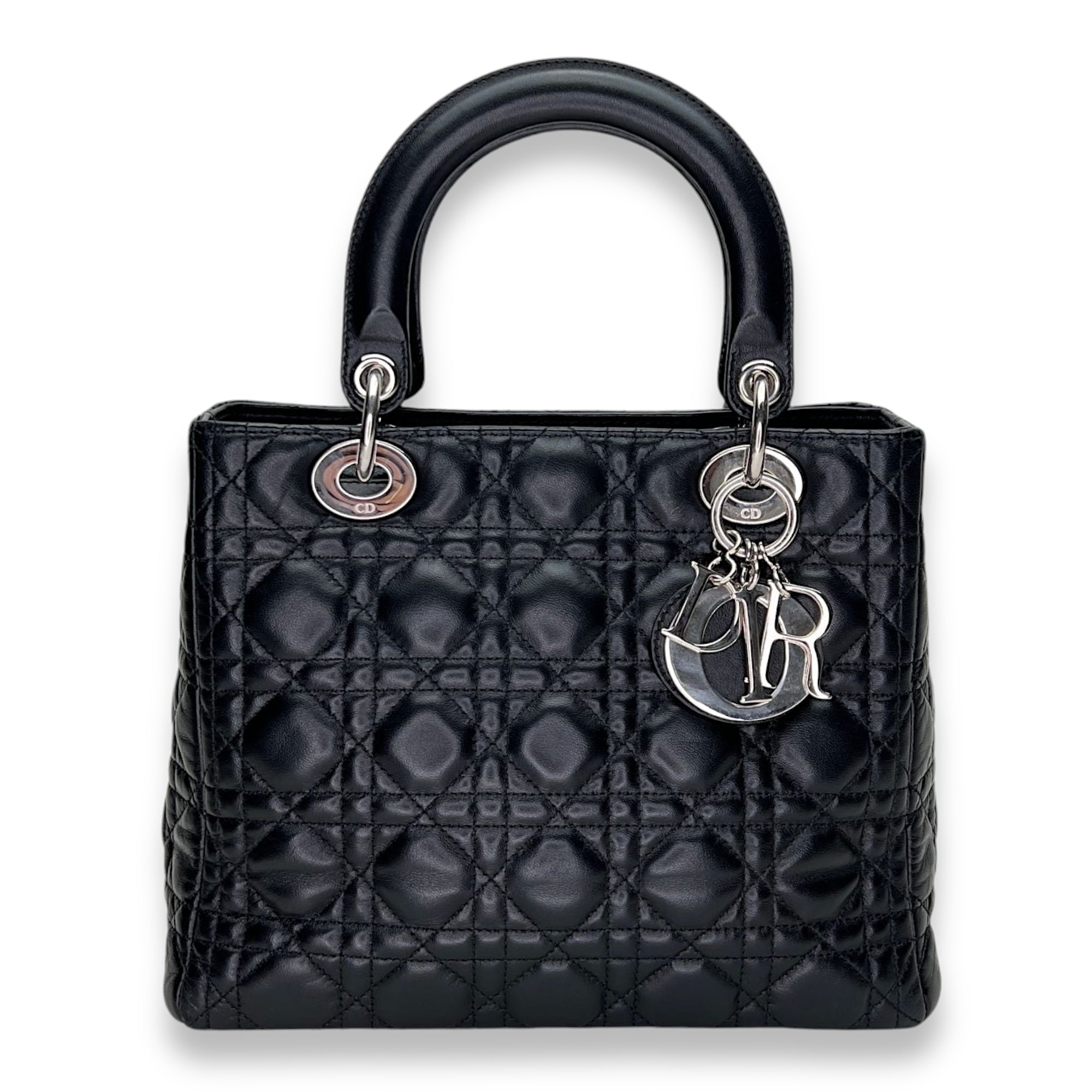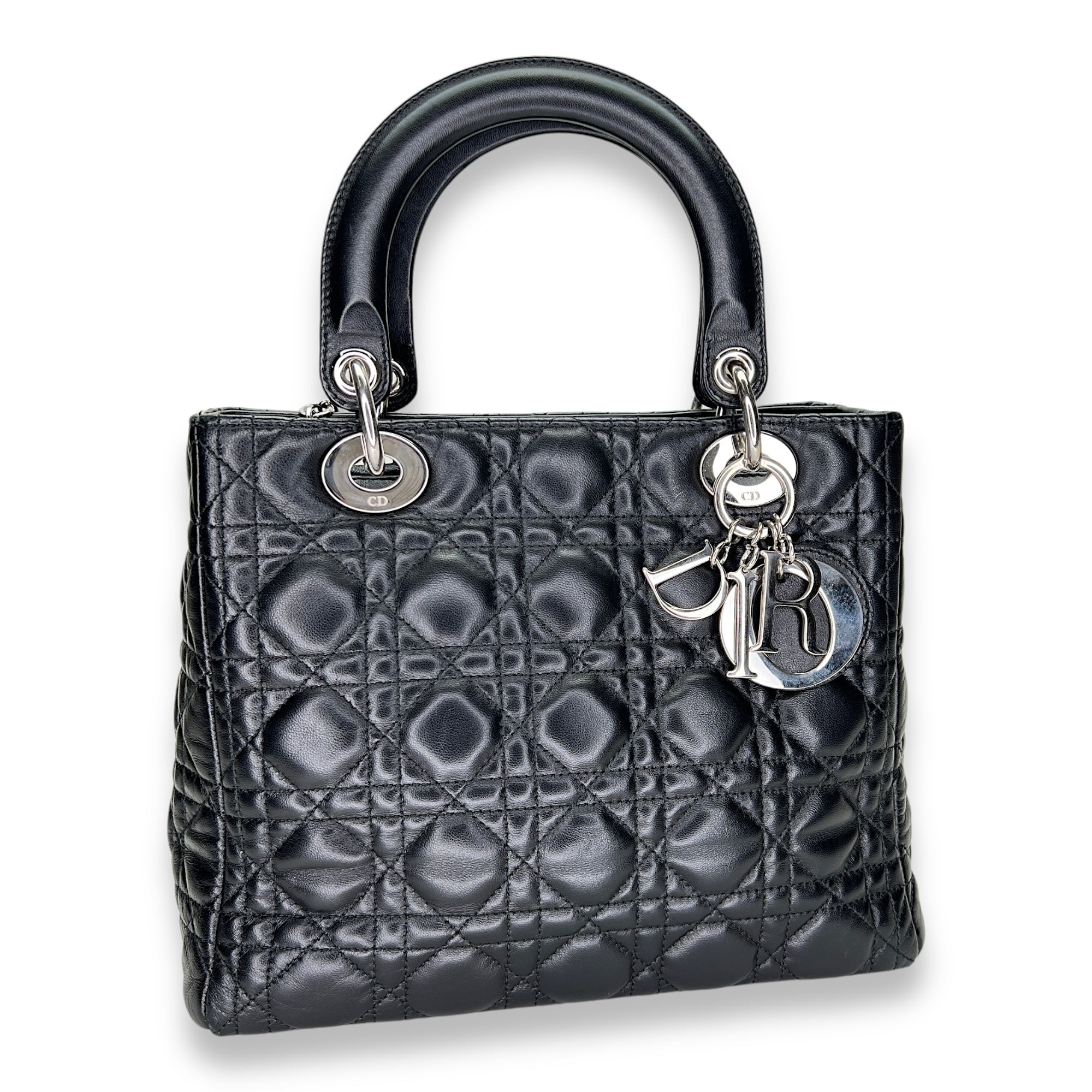 Bags Christian Dior Lady Dior Medium Top handle bag in Lambskin, Silver Hardware Good Condition Black Top Handle Bag Women Lady Girl