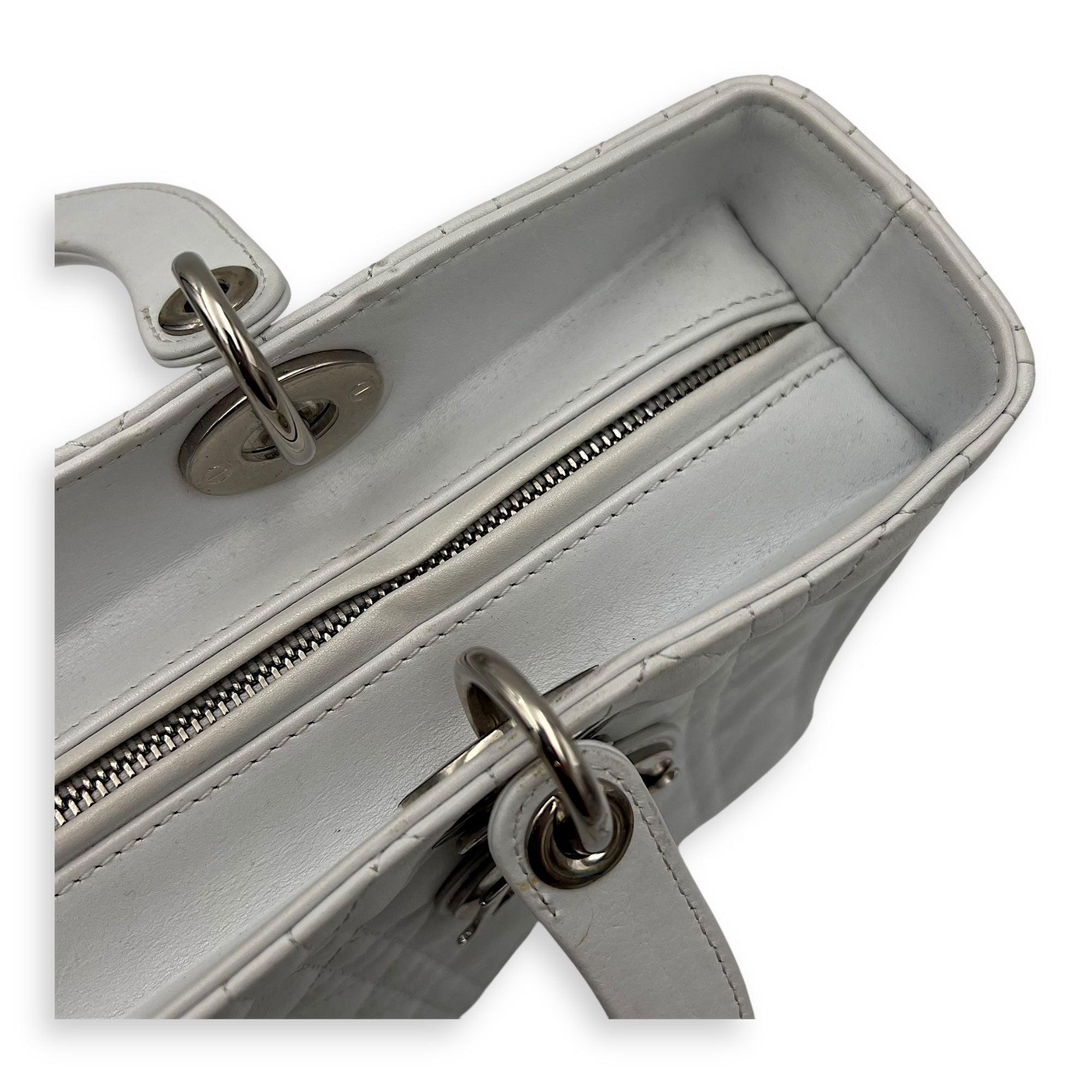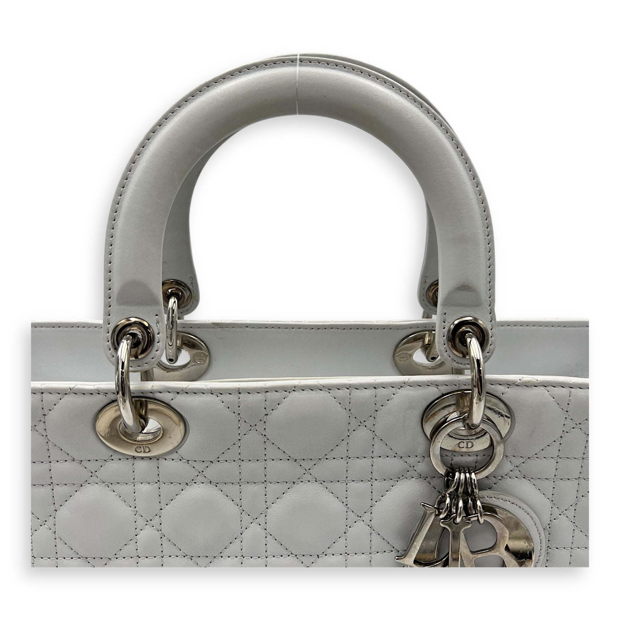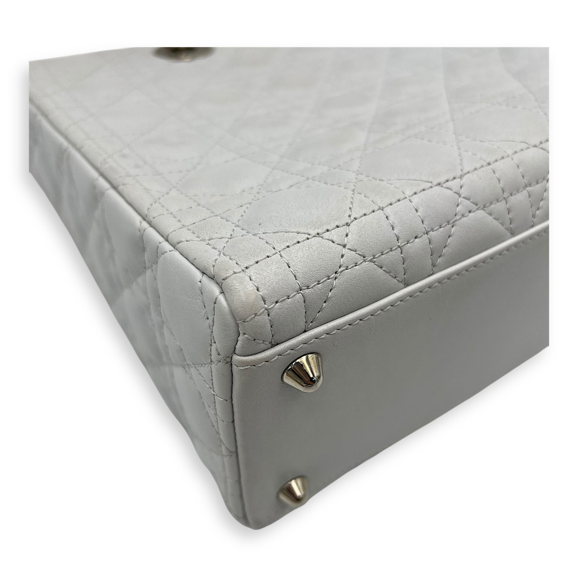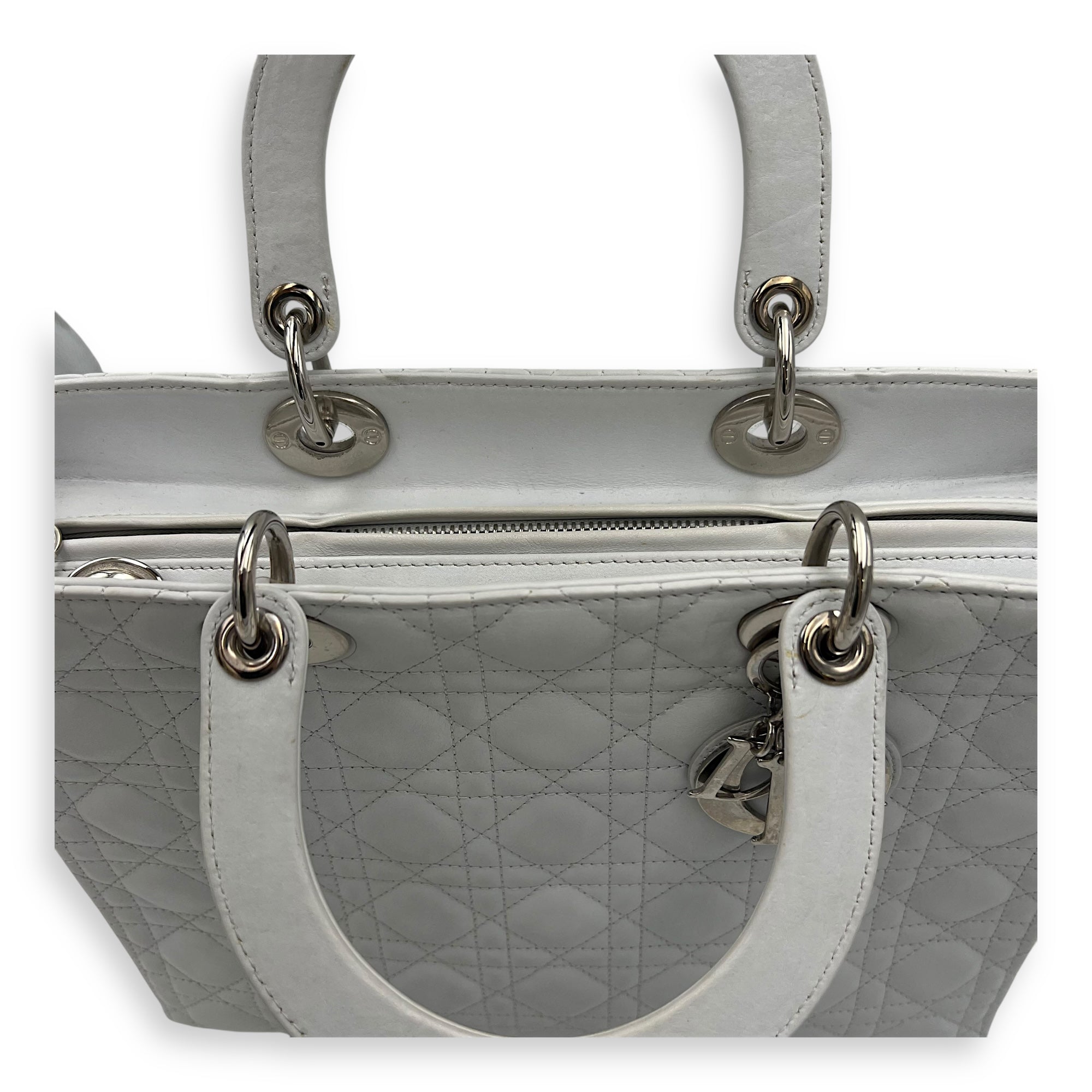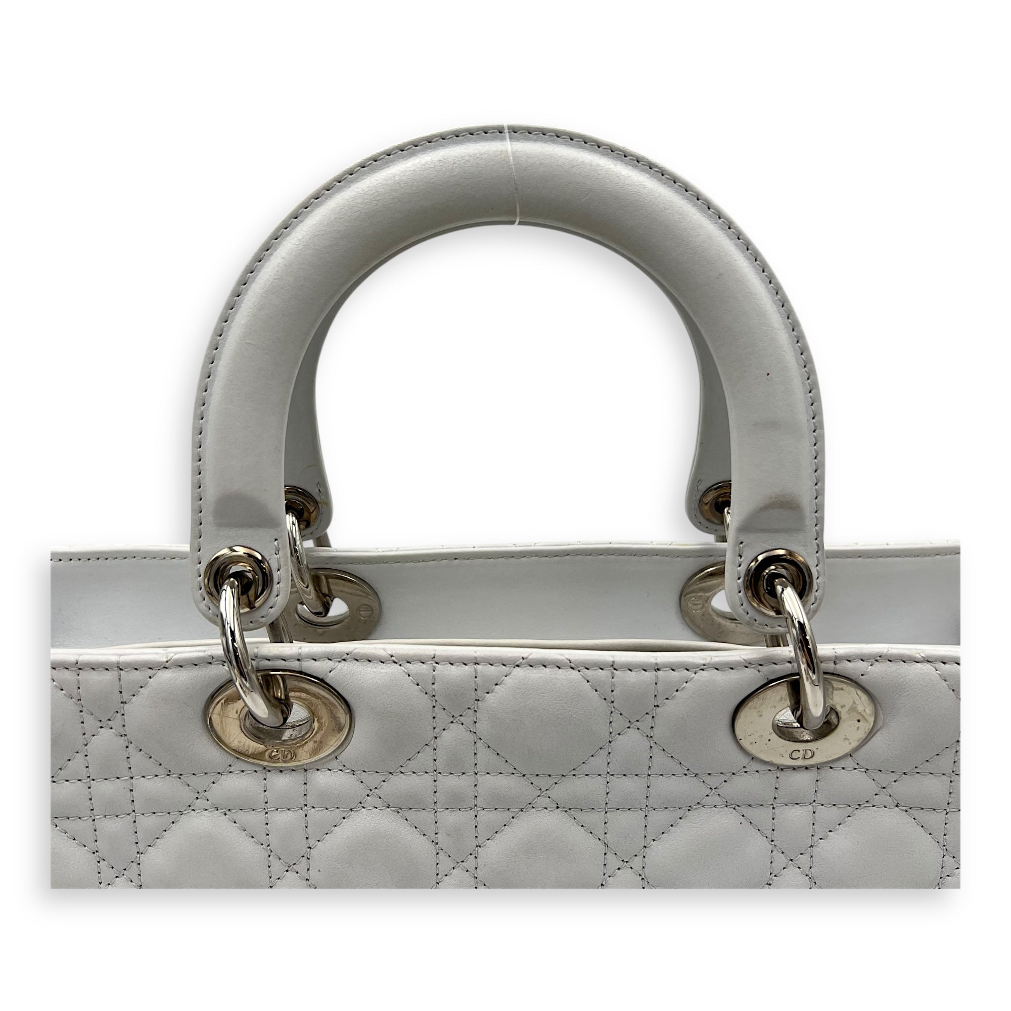 Bags Christian Dior Lady Dior Large White Top Handle Bag in Lambskin, Silver hardware Good Condition White Top Handle Bag Women Lady Girl