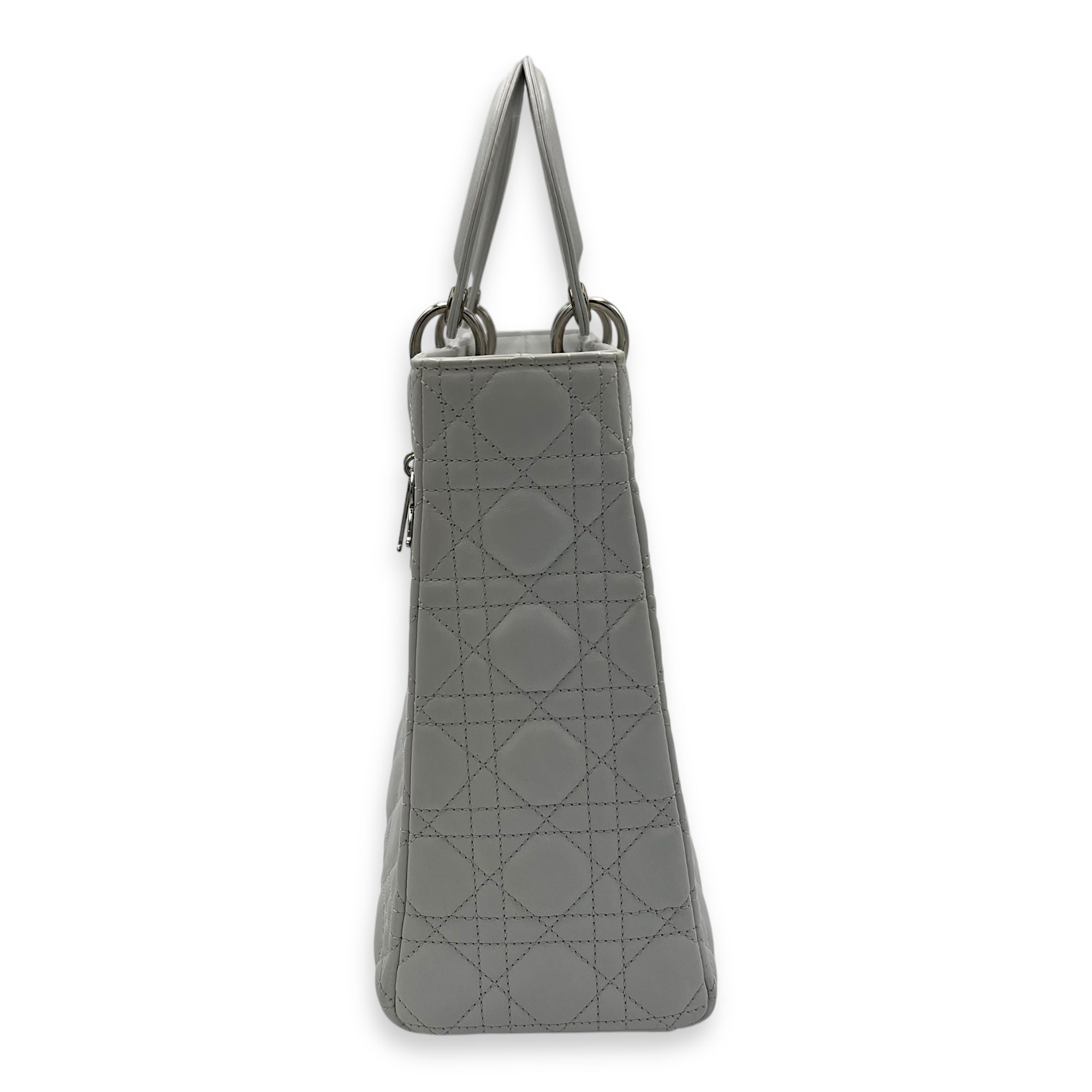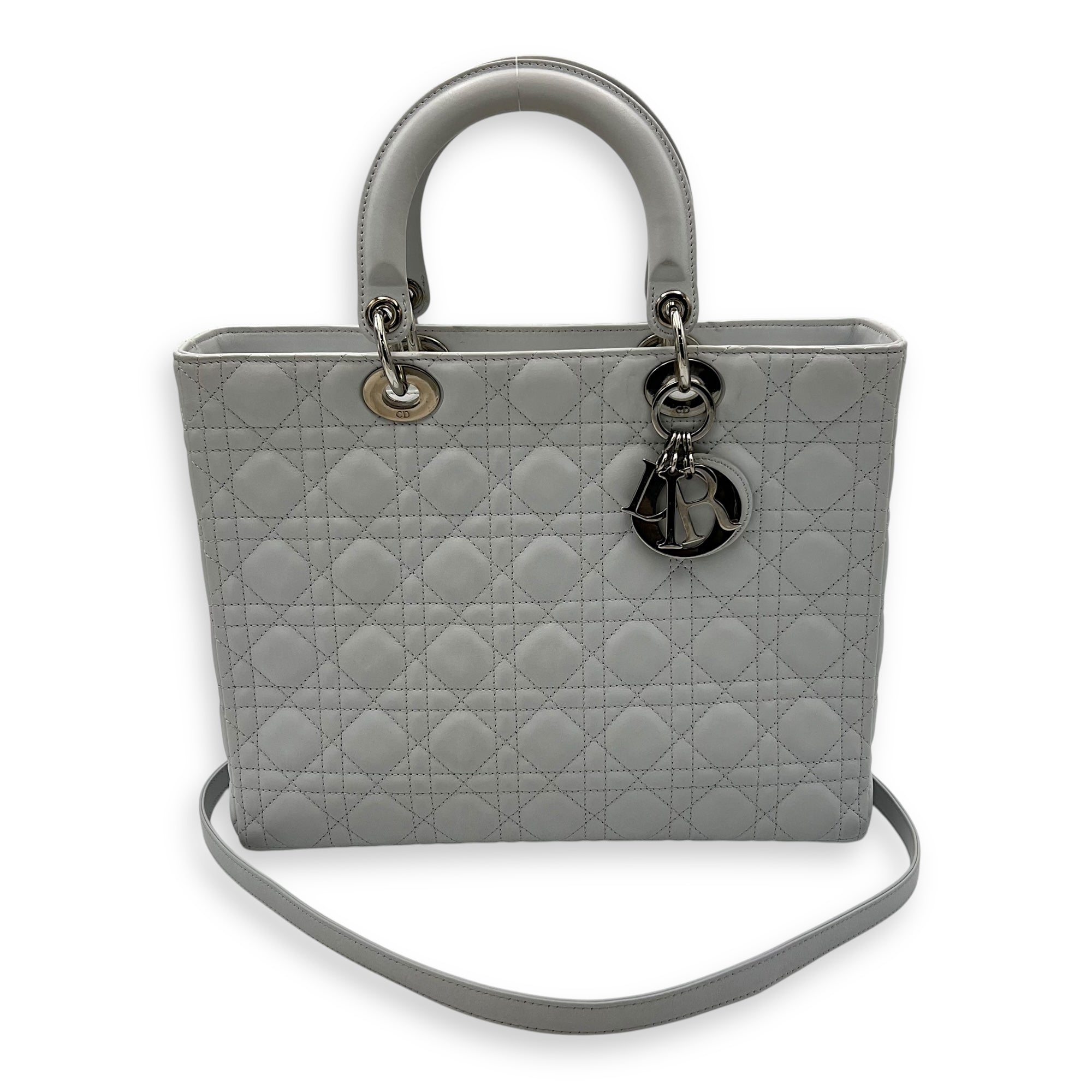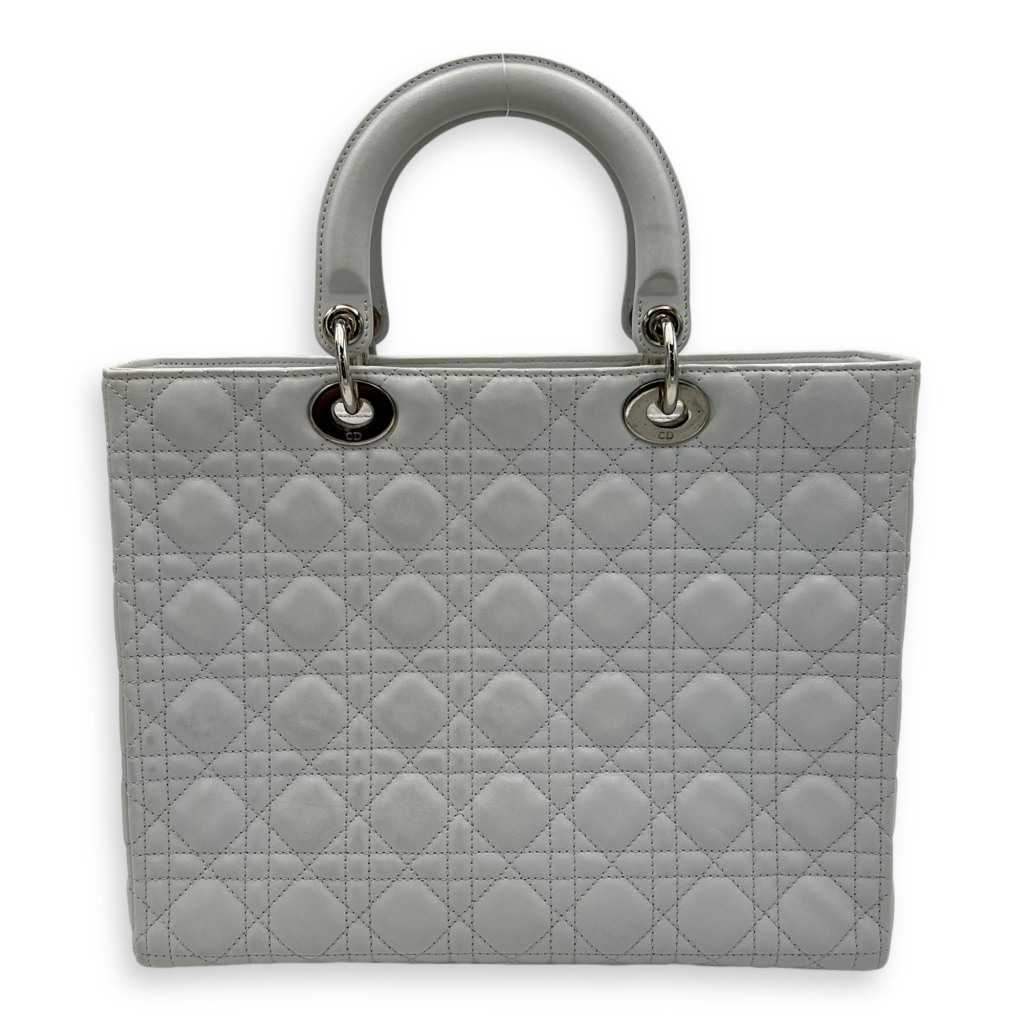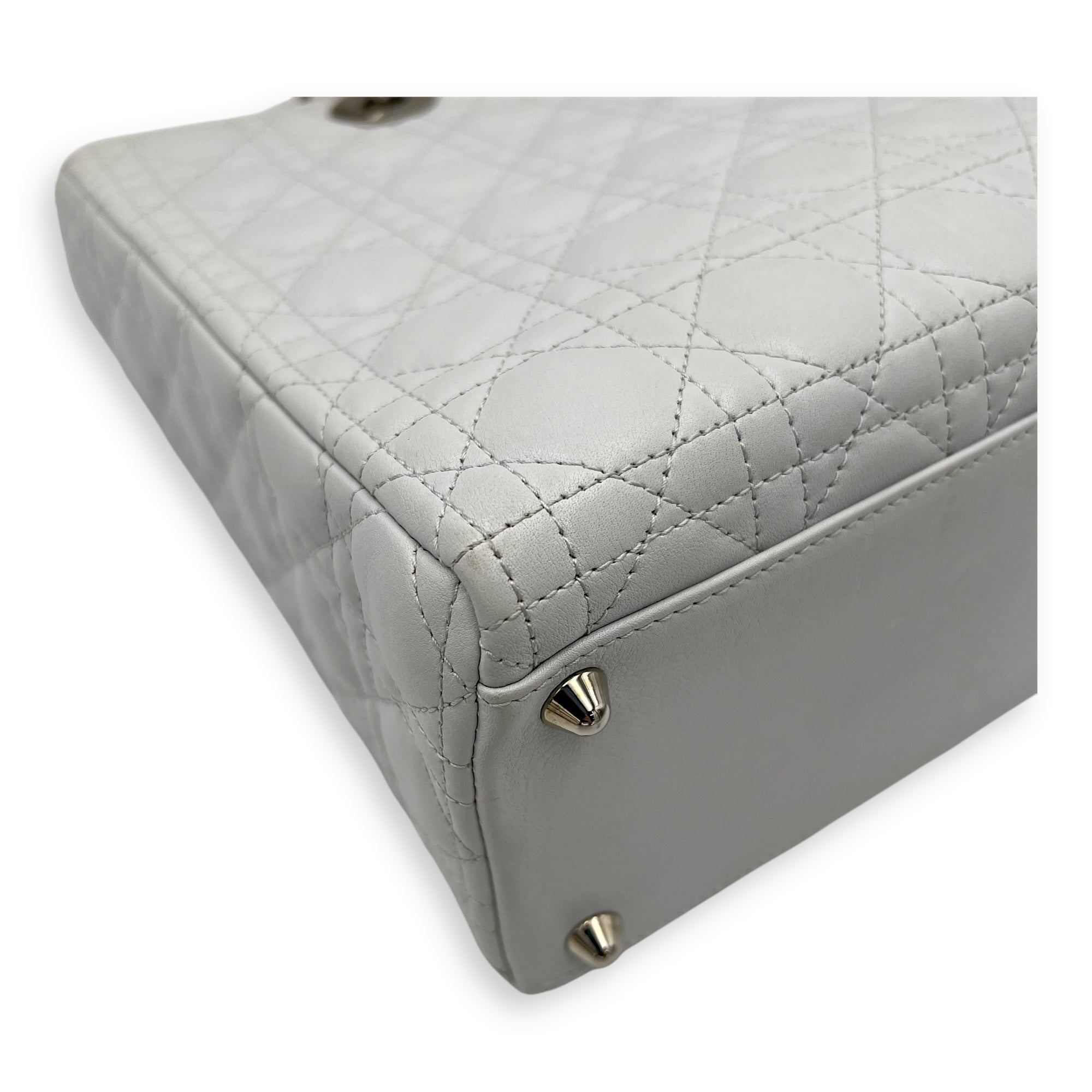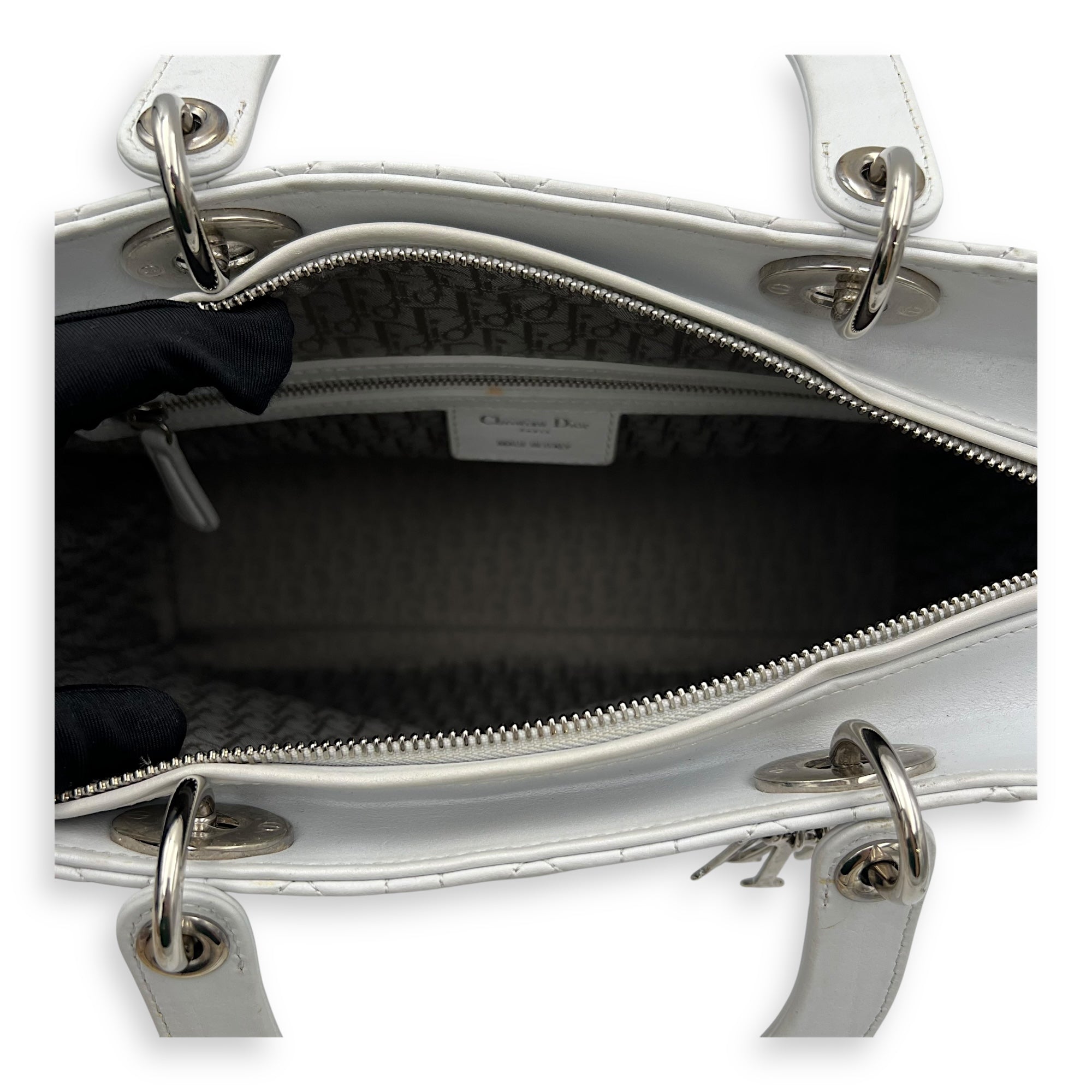 Bags Christian Dior Lady Dior Large White Top Handle Bag in Lambskin, Silver hardware Good Condition White Top Handle Bag Women Lady Girl