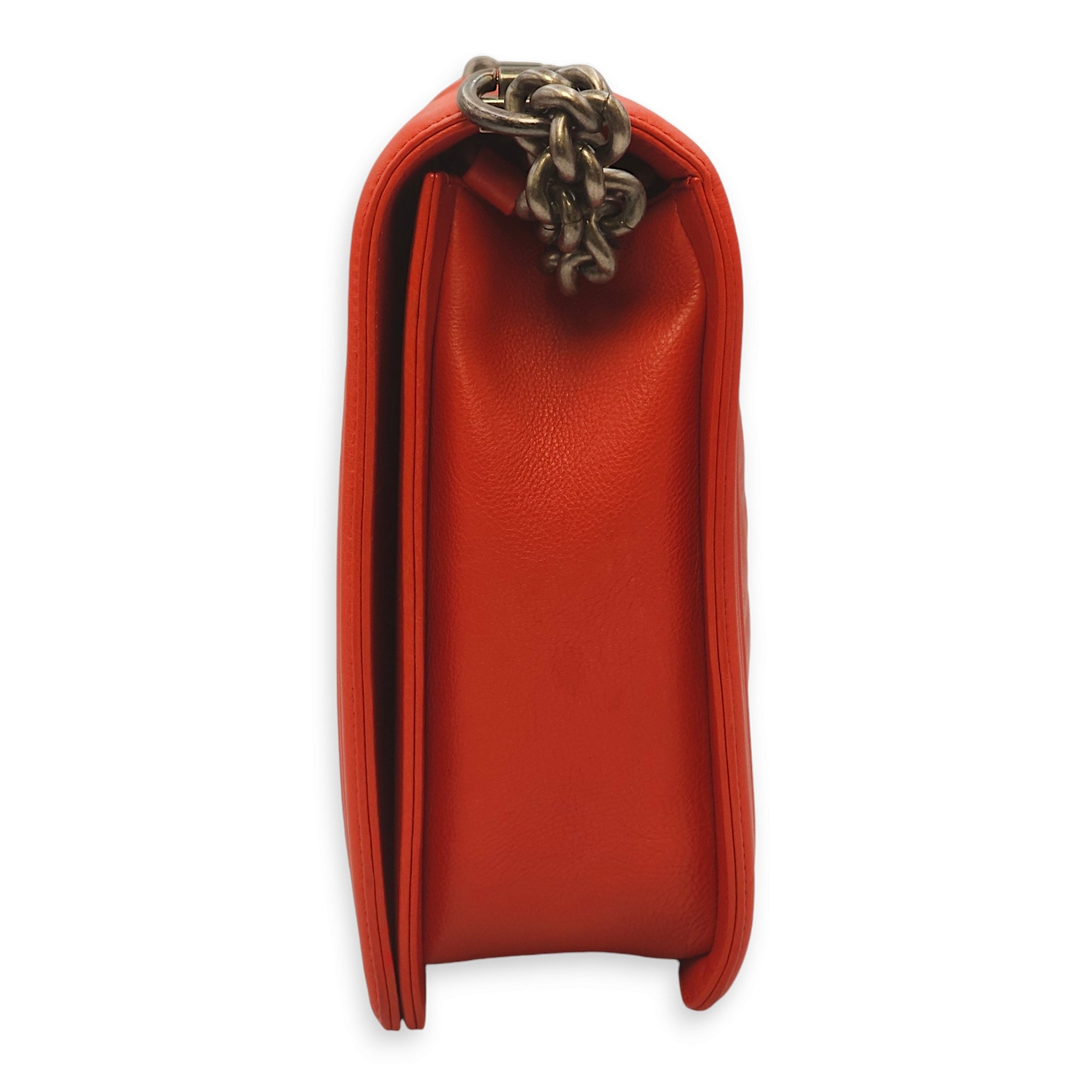 Chanel Le Boy Large Red Shoulder Bag in Calfskin, Ruthenium hardware Bags Shoulder Bag Red Very Good Condition