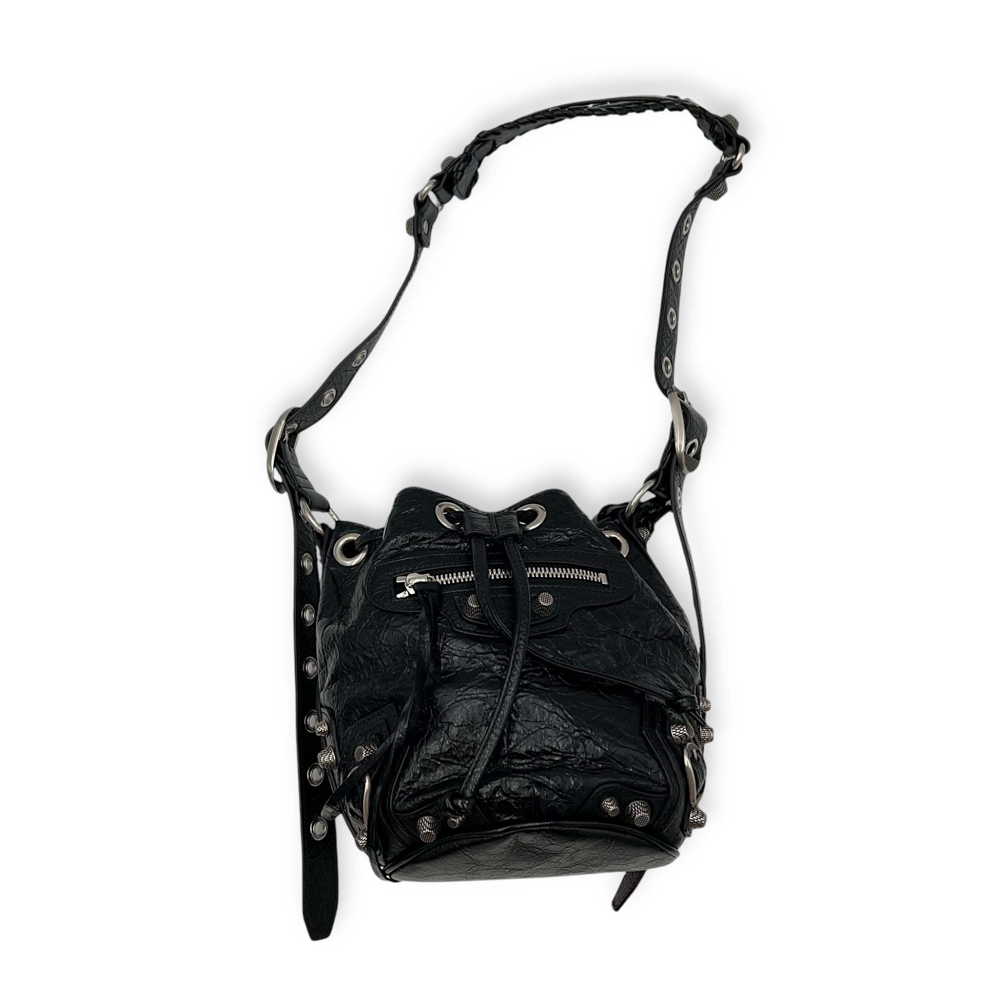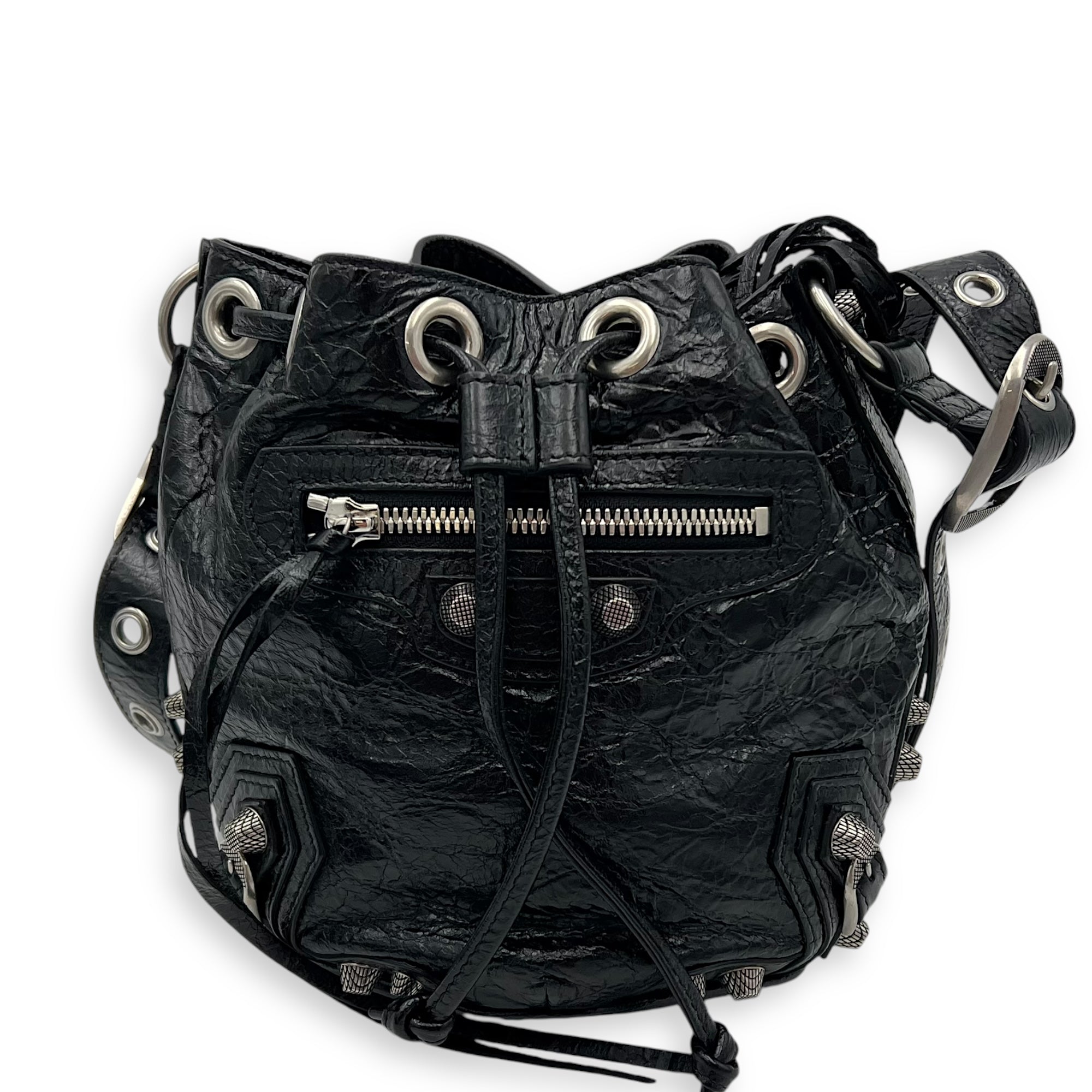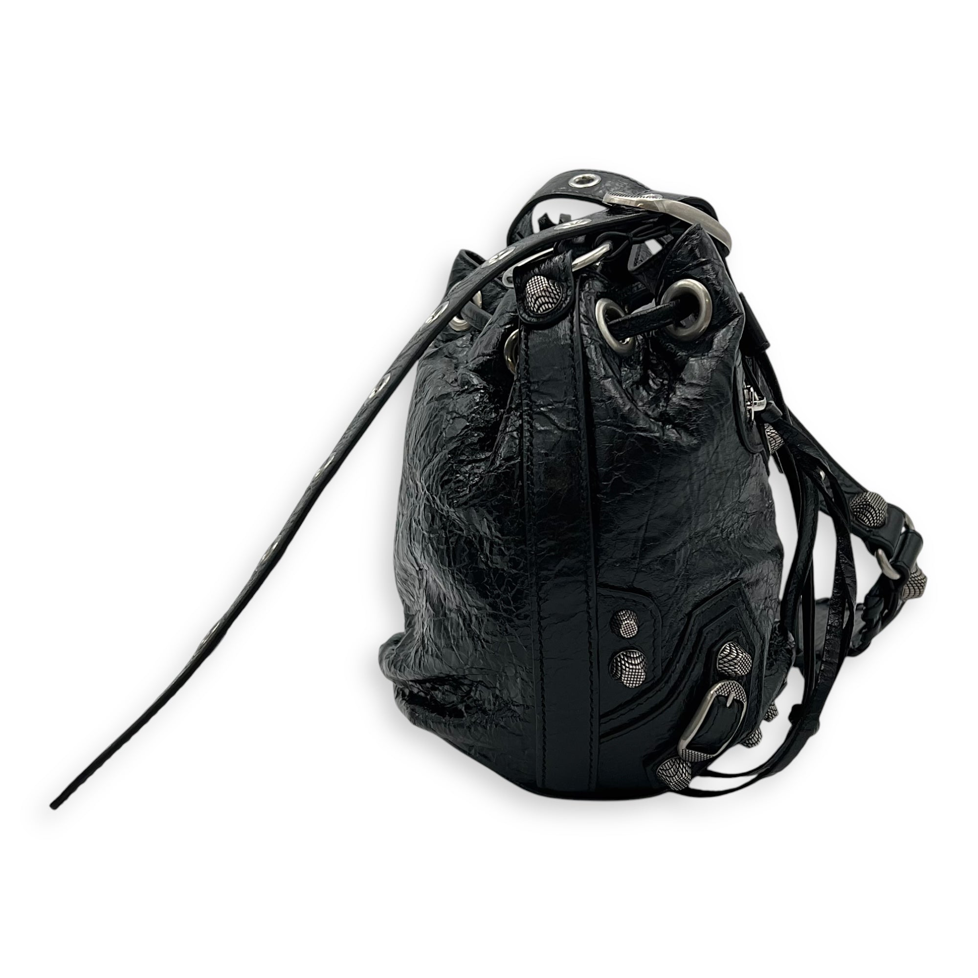 Bags Balenciaga Le Cagole Bucket Bag Black in Lambskin, Silver hardware Very Good Condition Black Bucket Bag Women Lady Girl