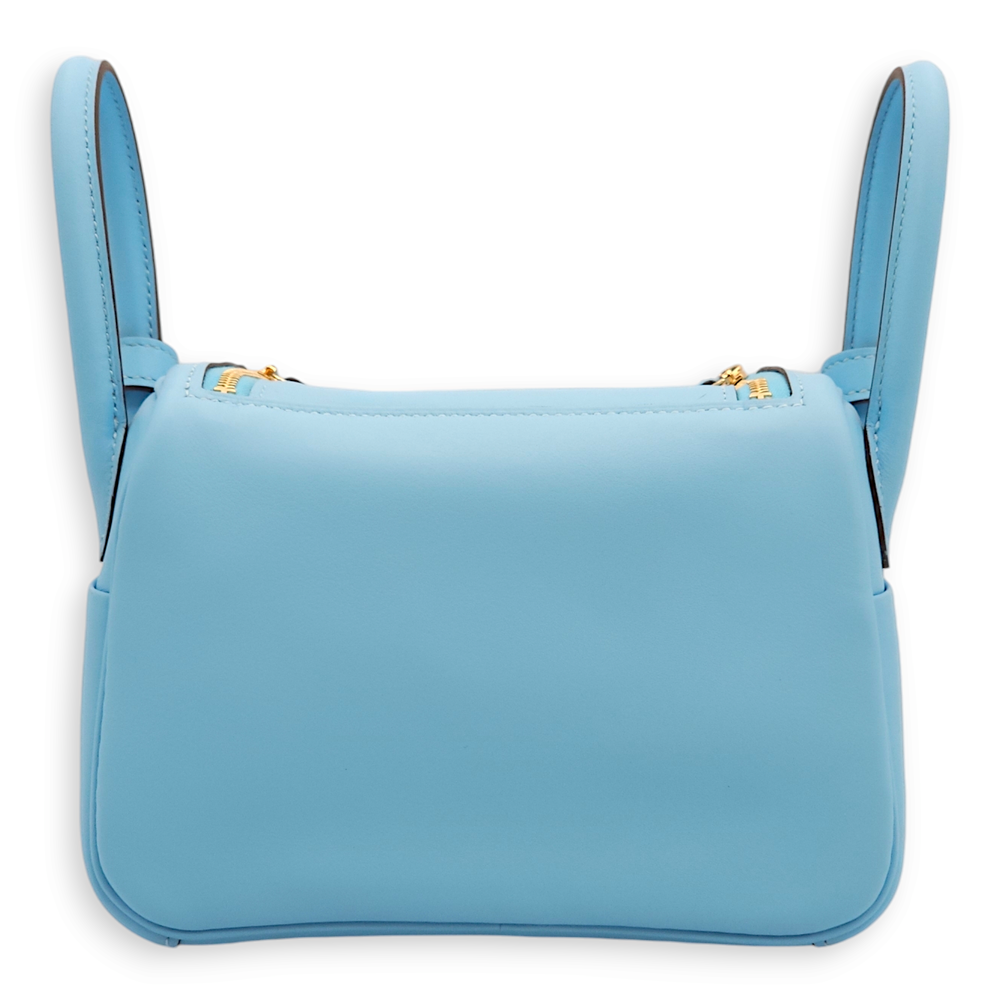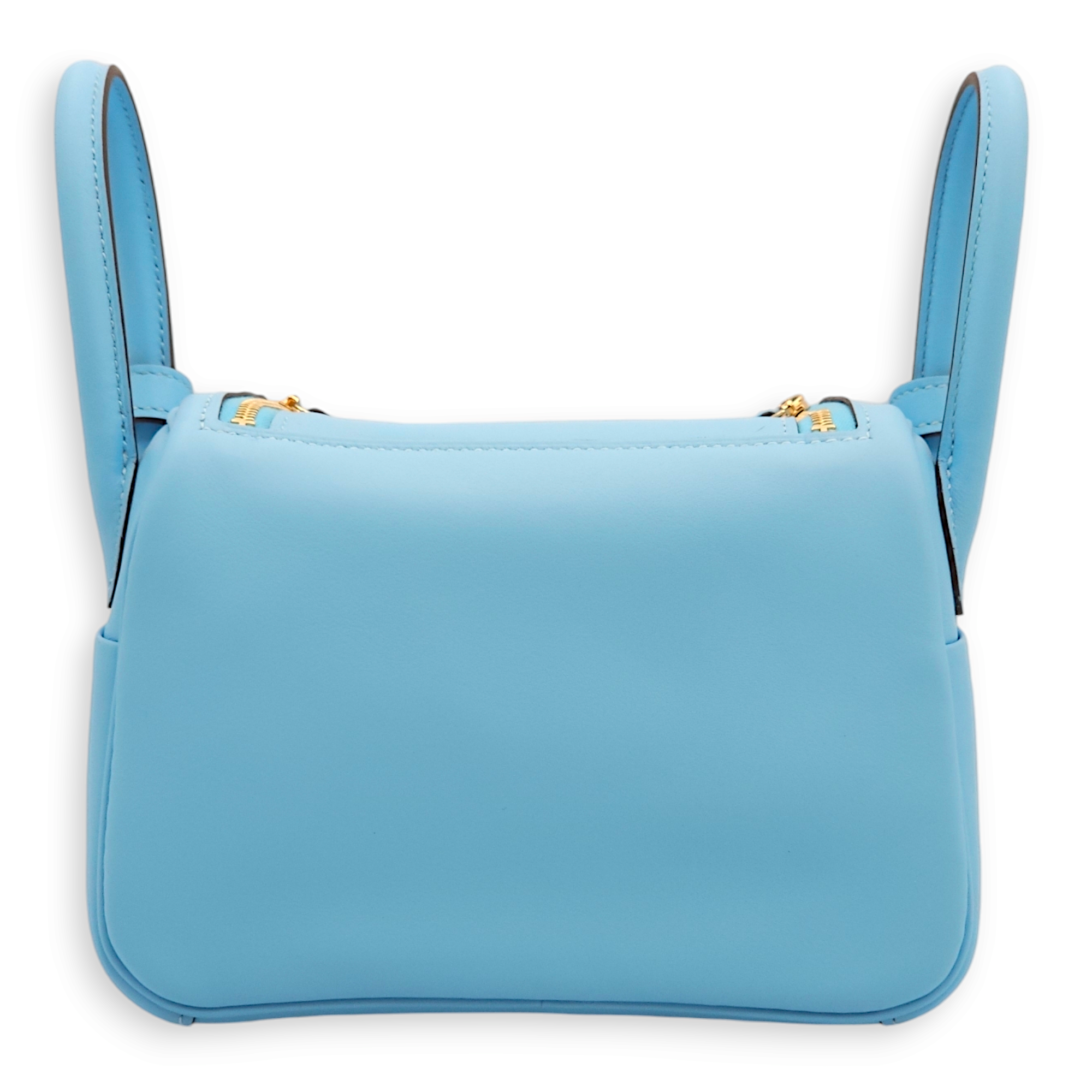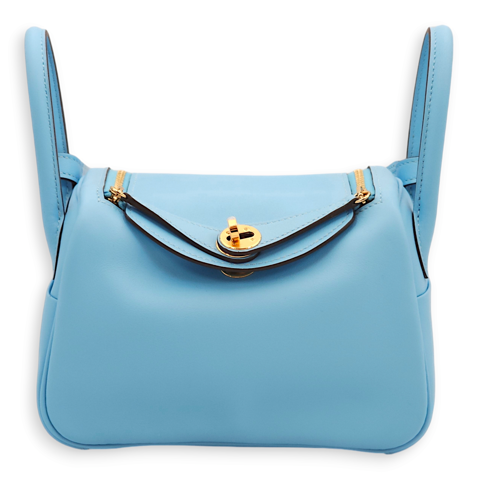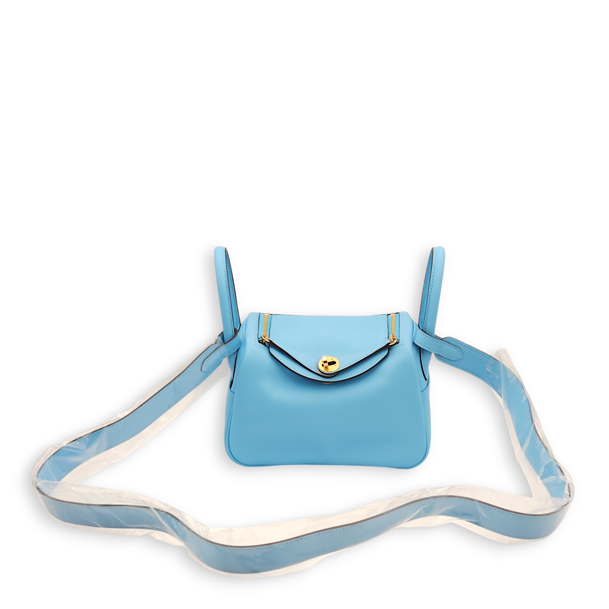 Herm?s Lindy Mini Celeste in Swift, Gold hardware Bags Crossbody Bag Blue Brand New MEN UNISEX