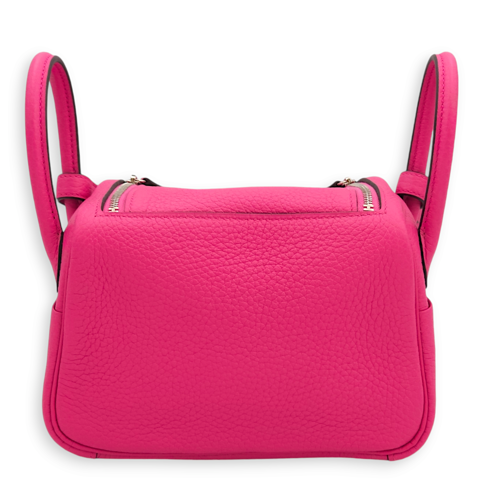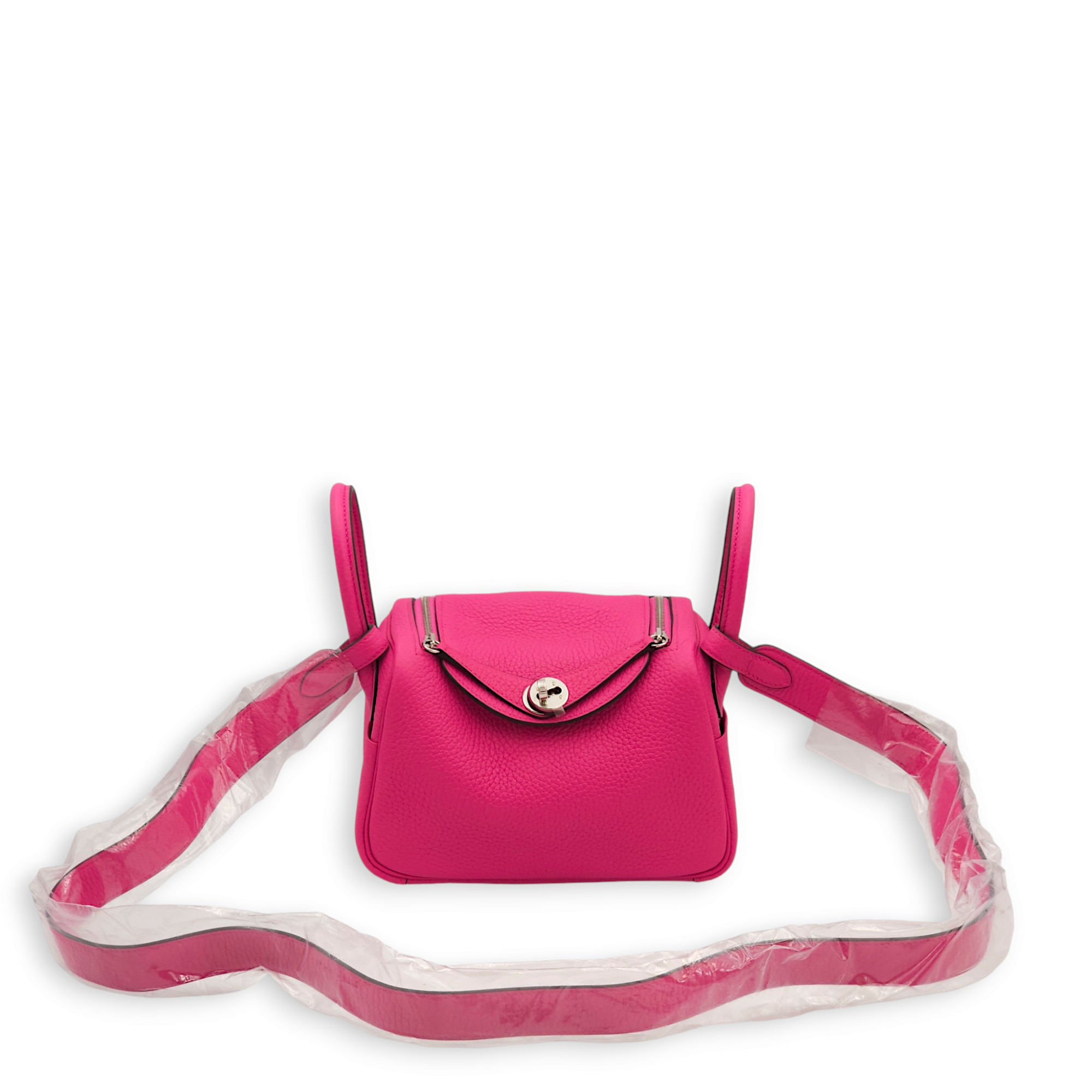 Herm?s Lindy Mini Framboise in Clemence, Palladium hardware Bags Crossbody Bag Pink Brand New MEN UNISEX