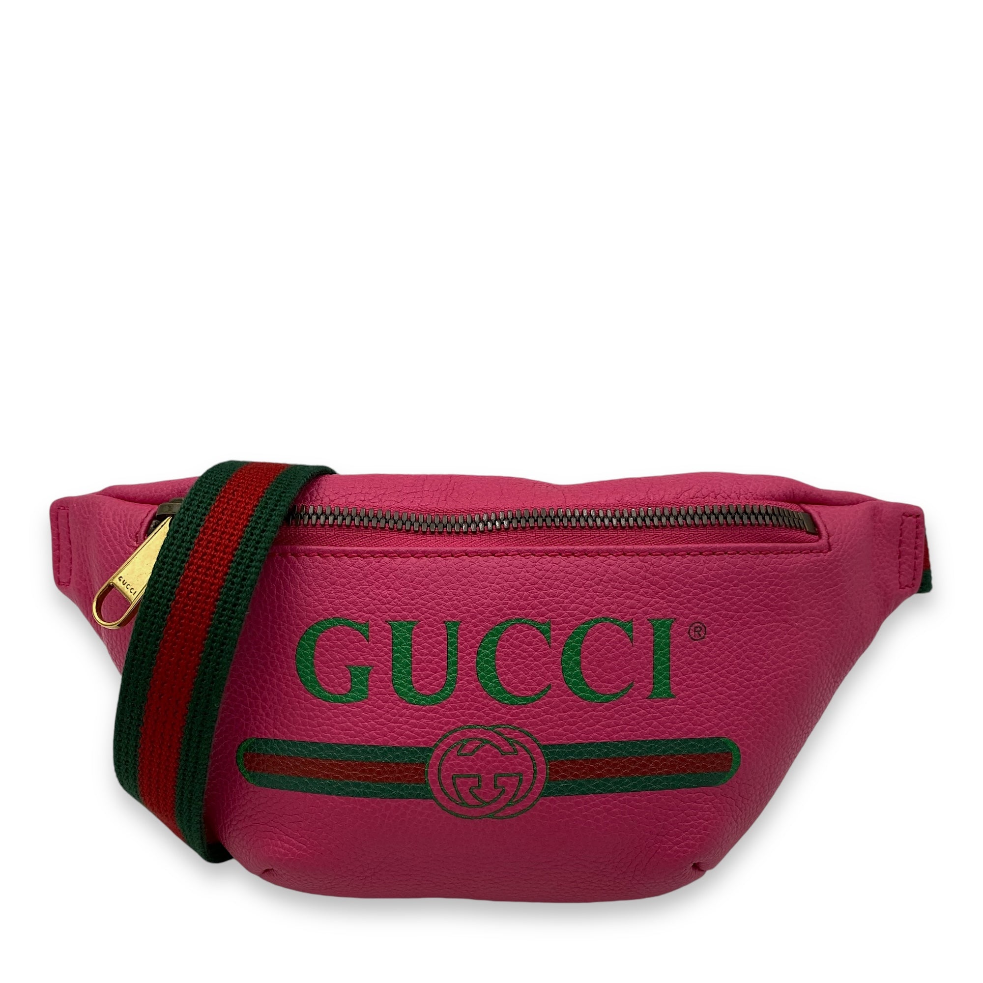 Bags Gucci Logo Belt Bag Pink in Calfskin, Silver hardware Very Good Condition Pink Belt Bag Women Lady Girl