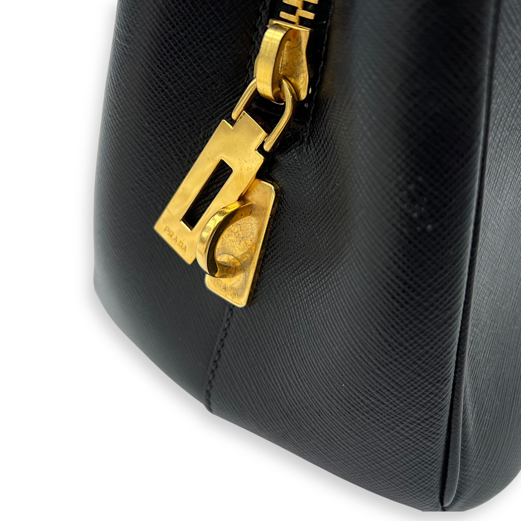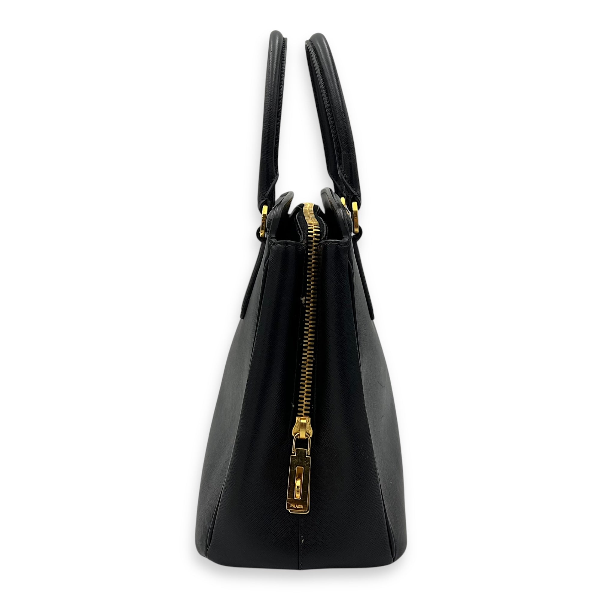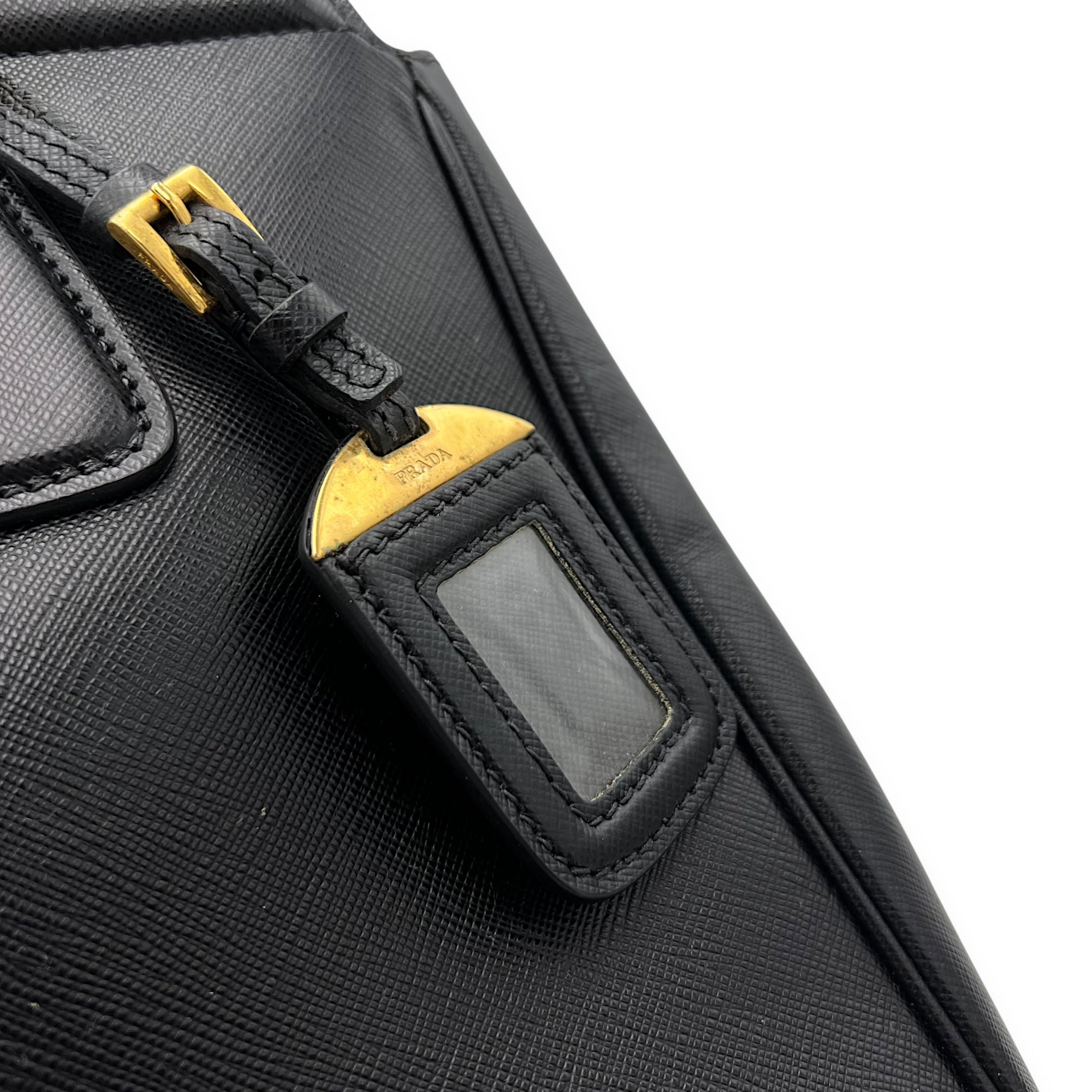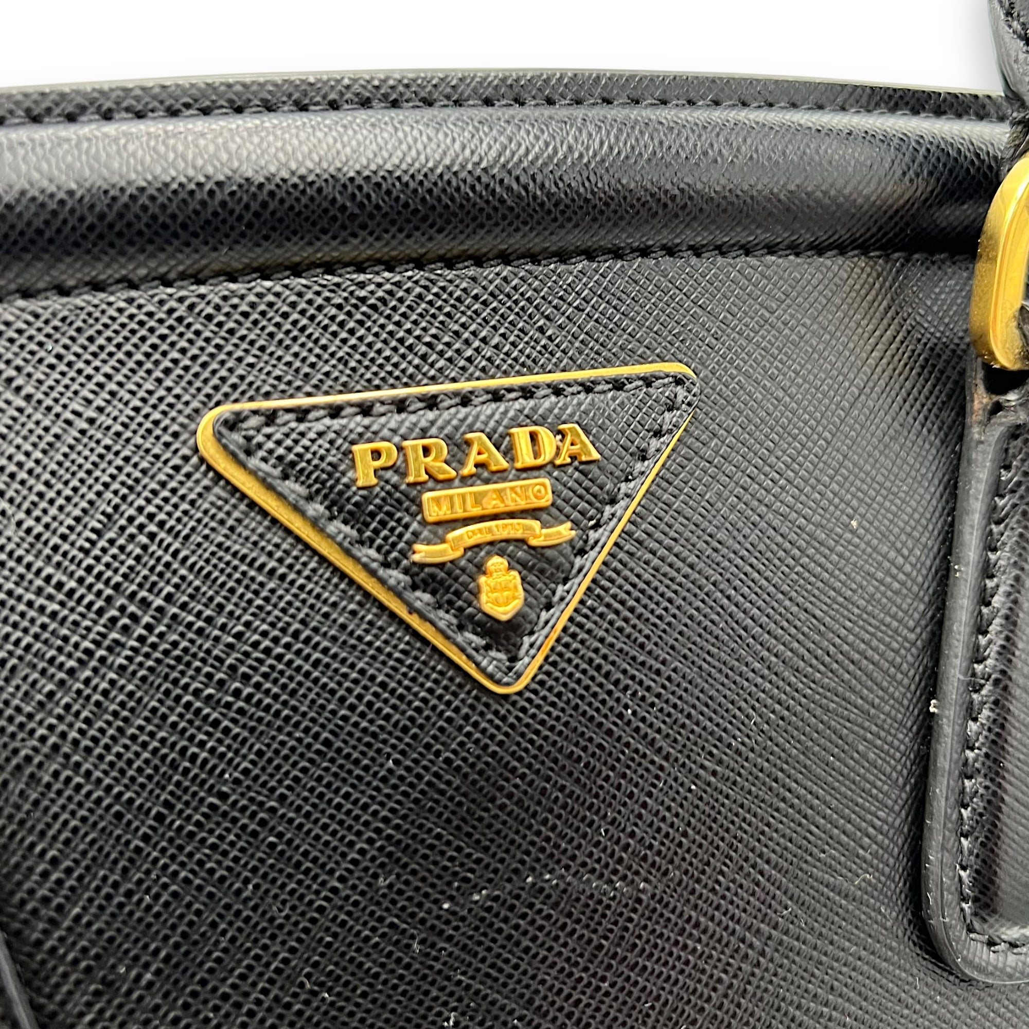 Bags Prada Logo Top Handle Bag Black in Saffiano Leather, Gold hardware Good Condition Black Top Handle Bag Women Lady Girl