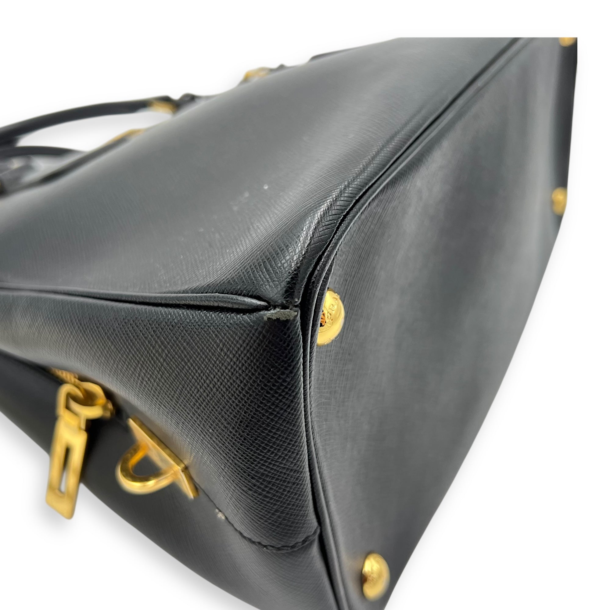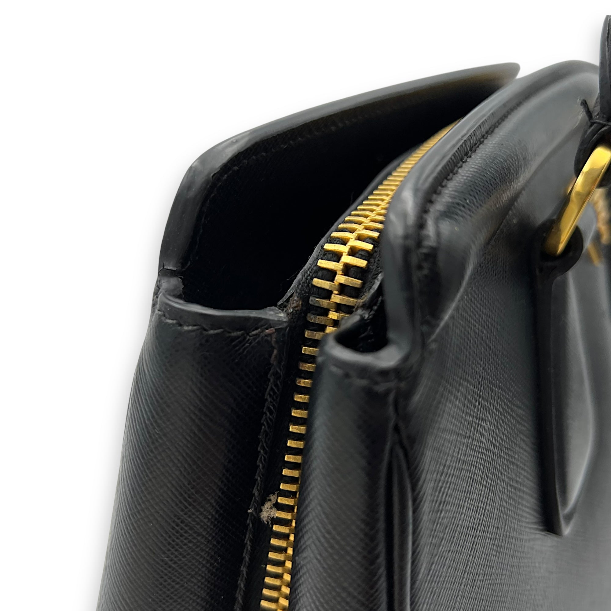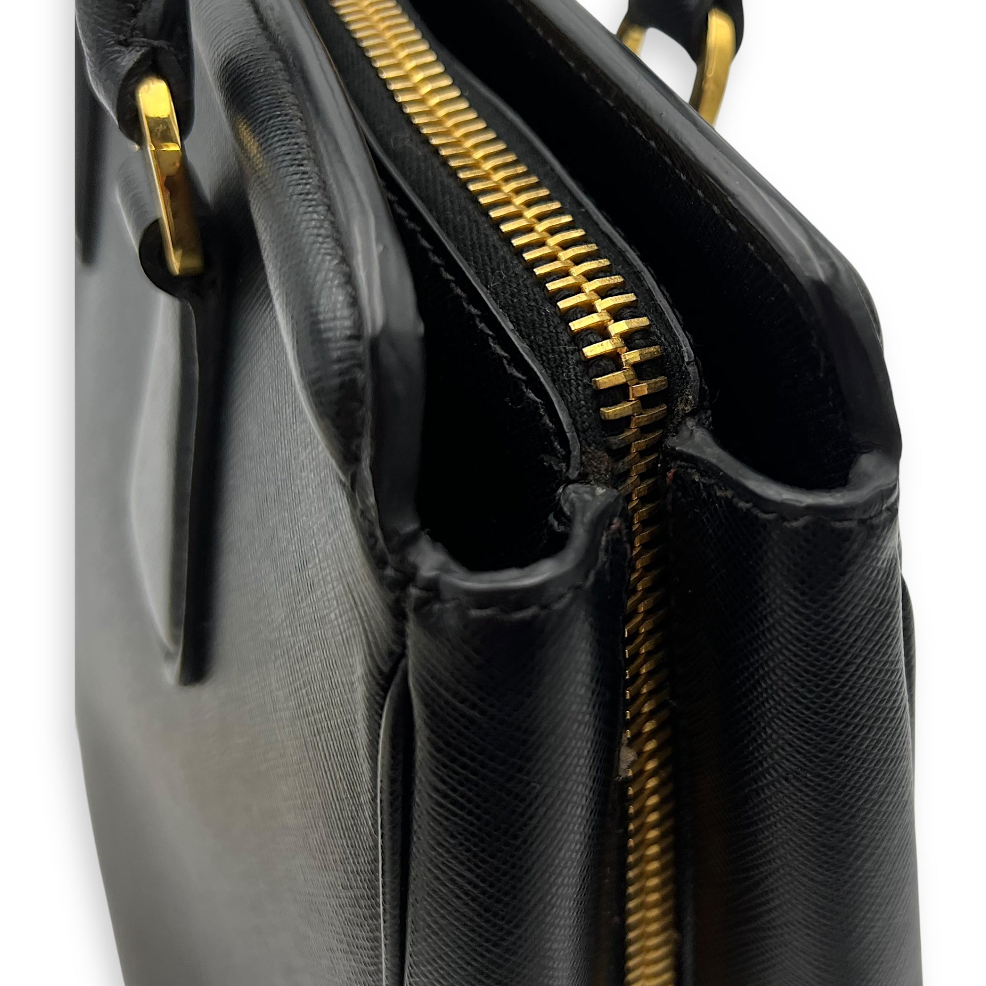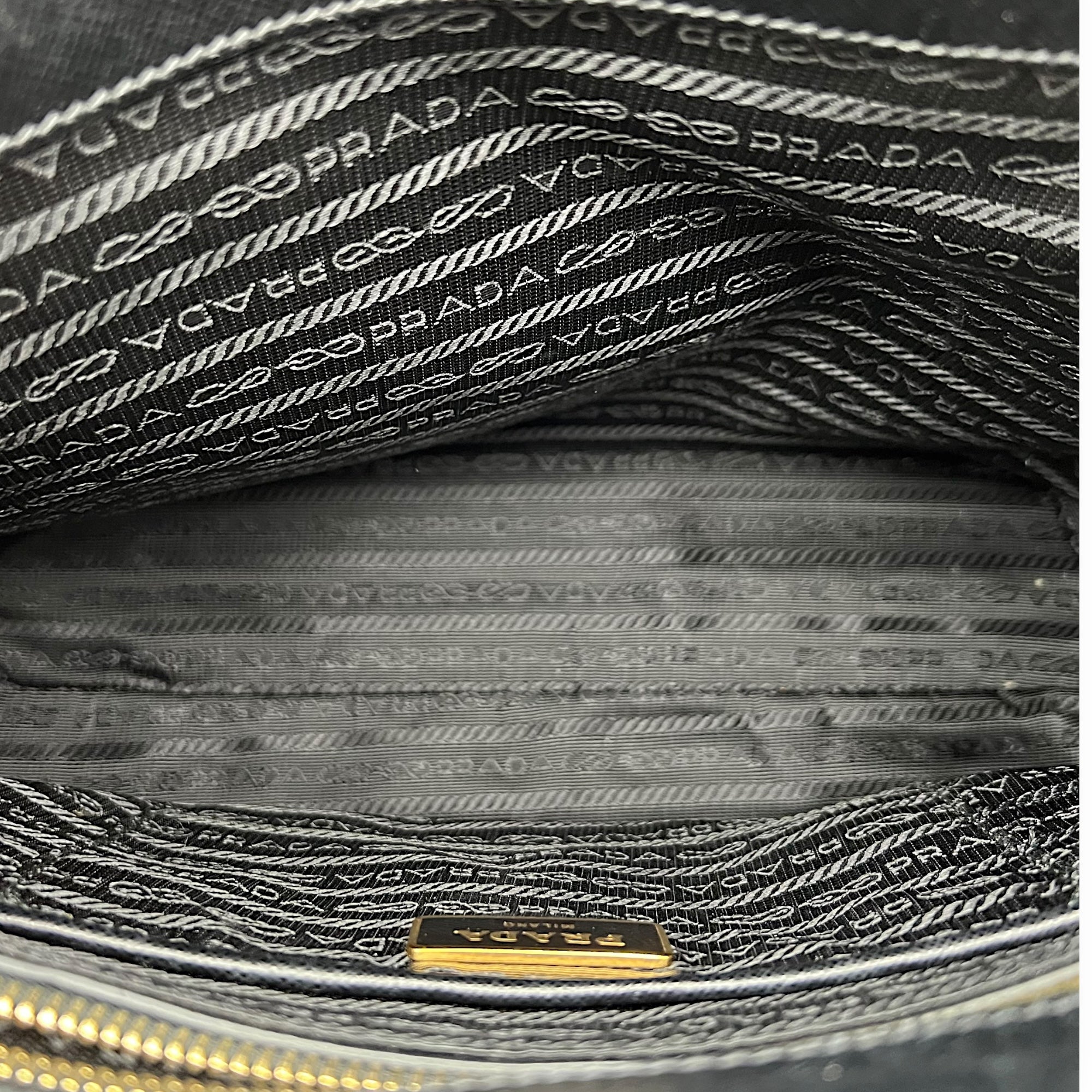 Bags Prada Logo Top Handle Bag Black in Saffiano Leather, Gold hardware Good Condition Black Top Handle Bag Women Lady Girl