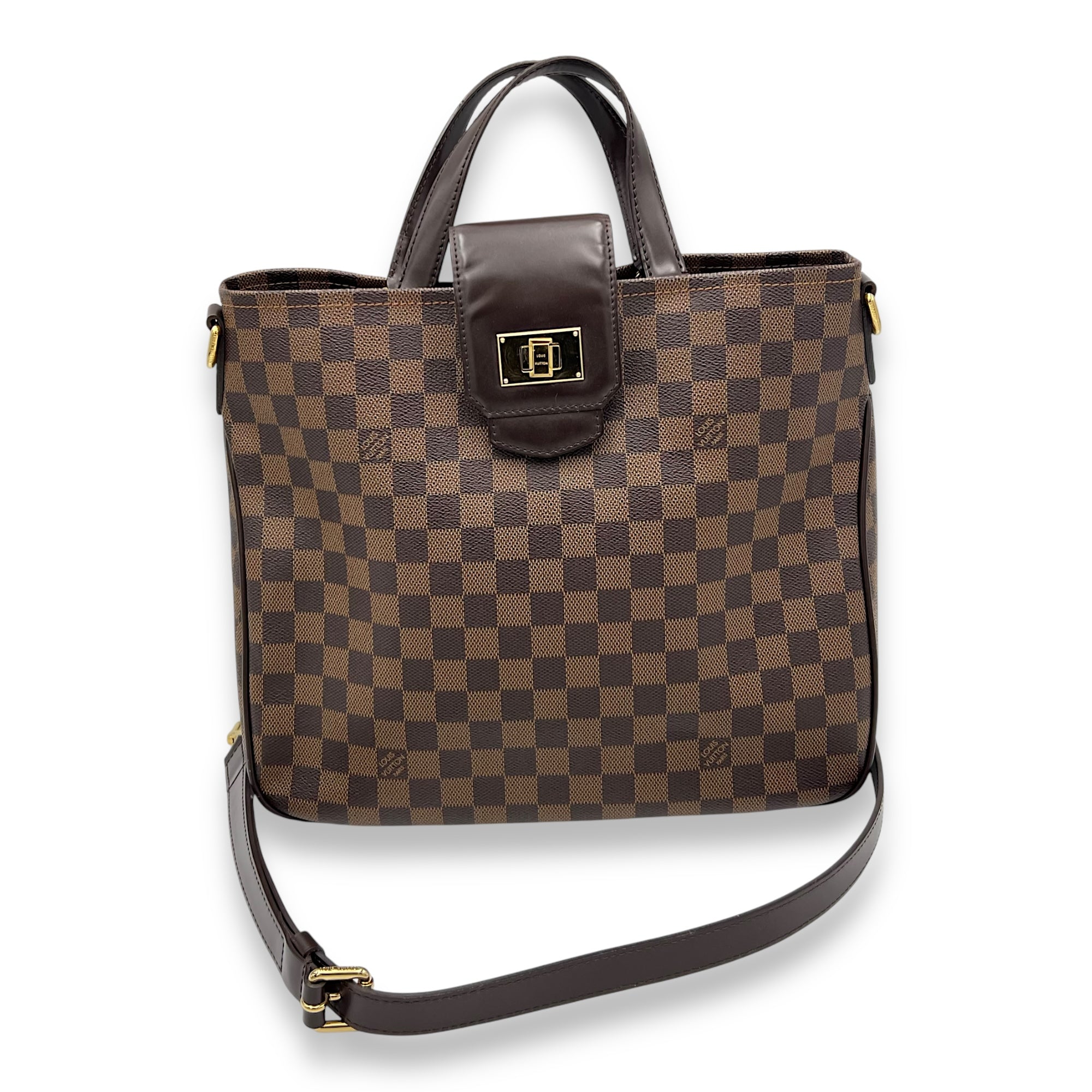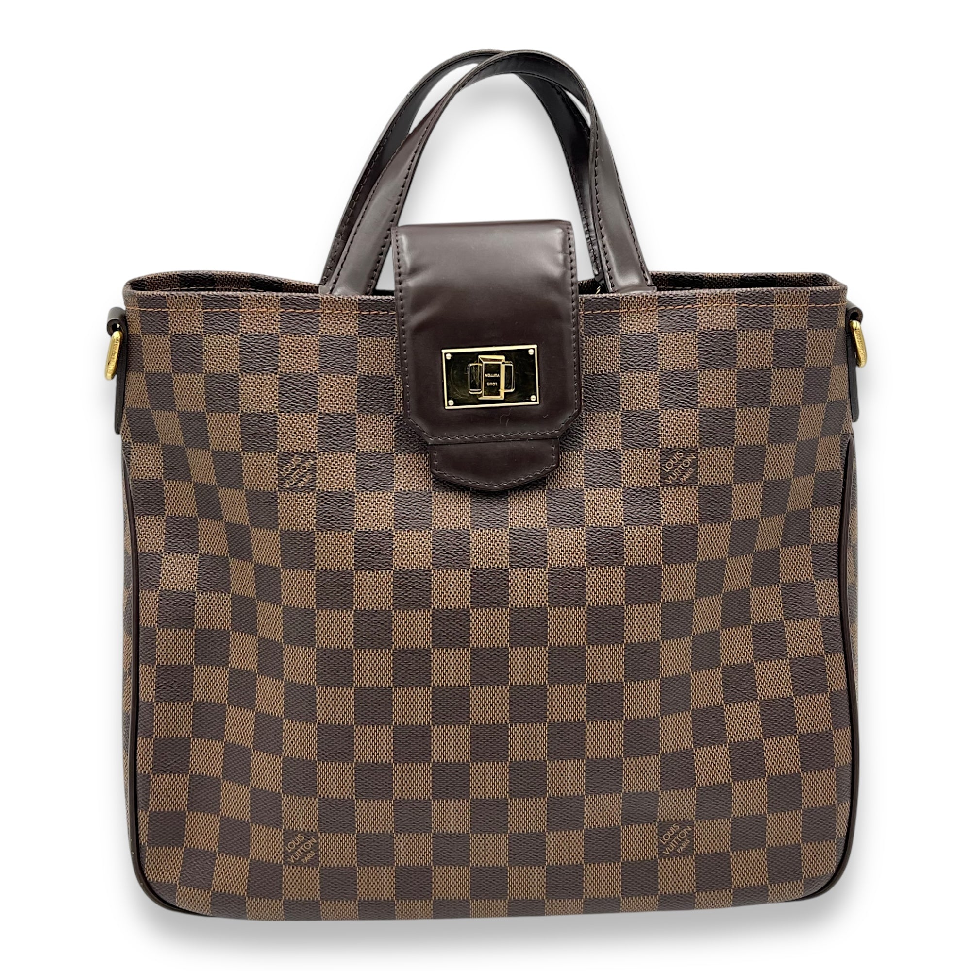 Bags Louis Vuitton Logo Top Handle Bag Brown in Coated Canvas, Gold hardware Good Condition Brown Top Handle Bag Women Lady Girl
