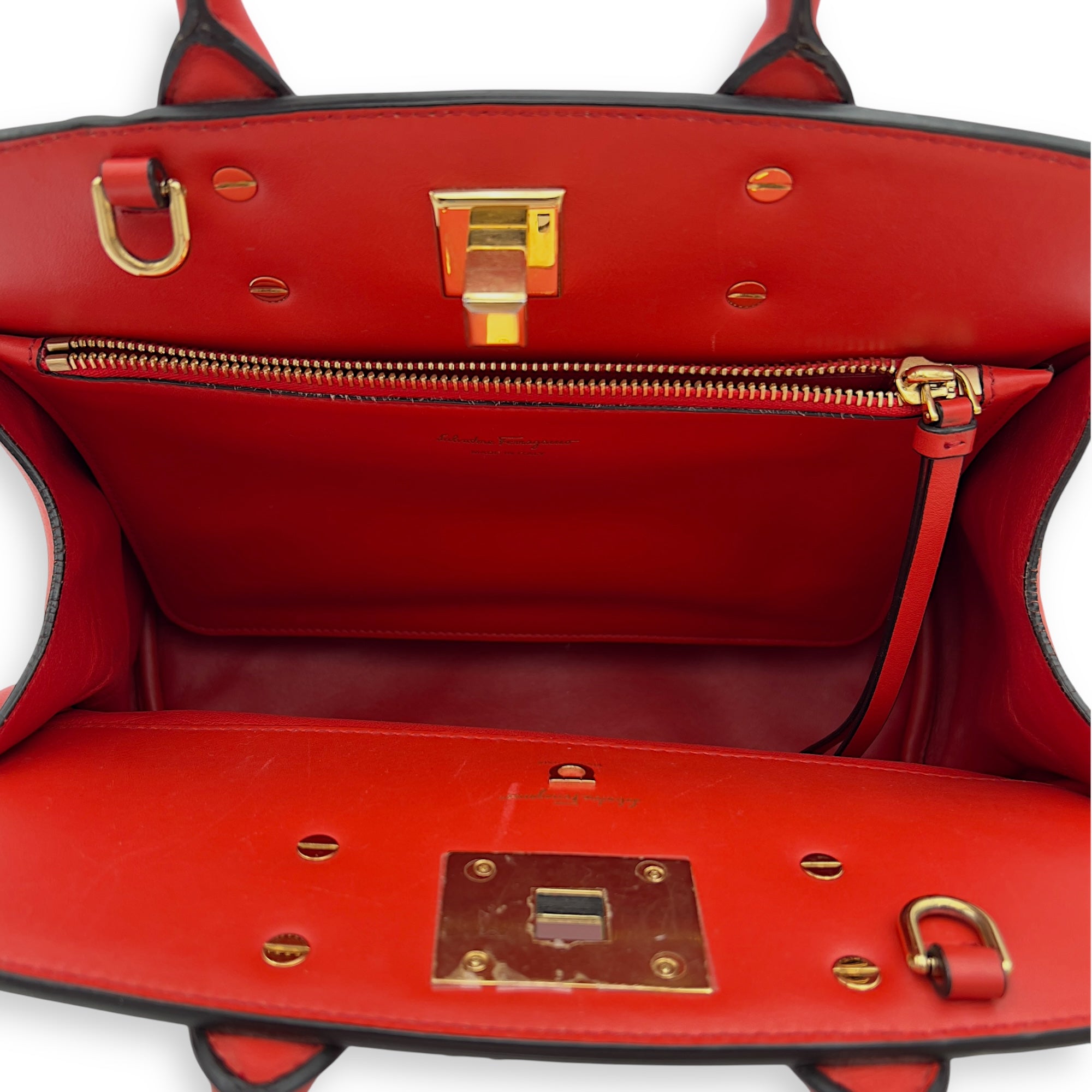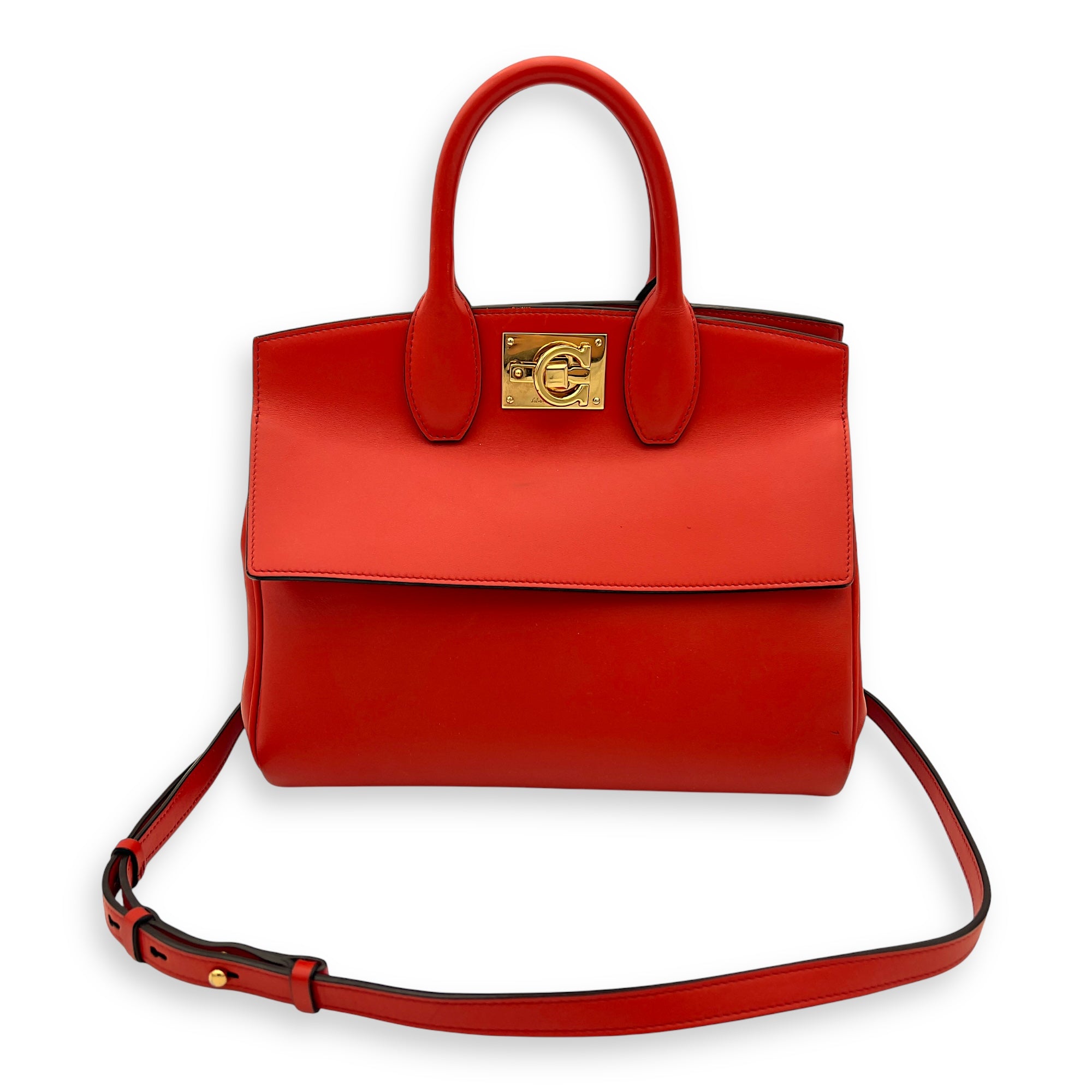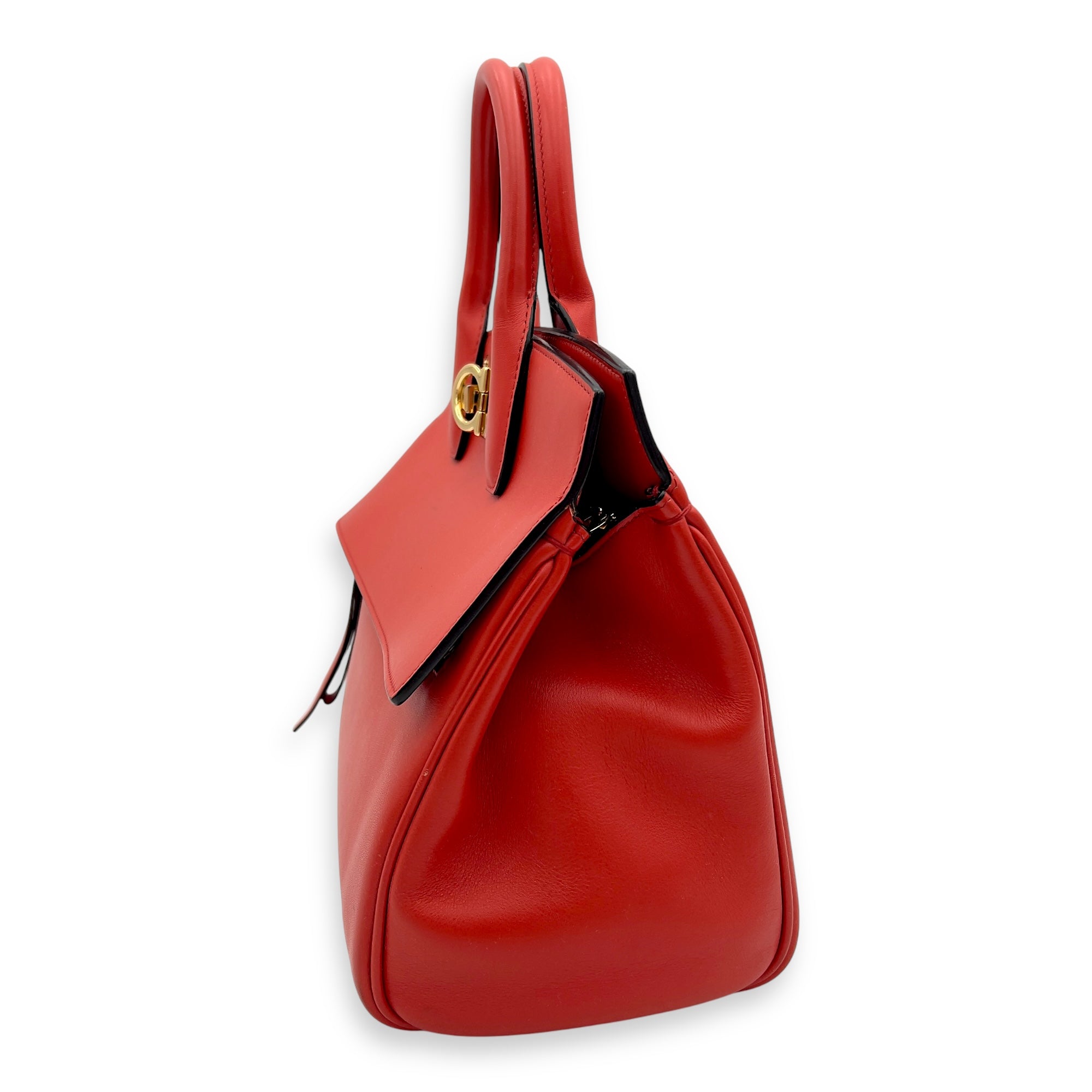 Bags Salvatore Ferragamo Studio Red Top Handle Bag in Calfskin, Gold hardware Good Condition Red Top Handle Bag Women Lady Girl