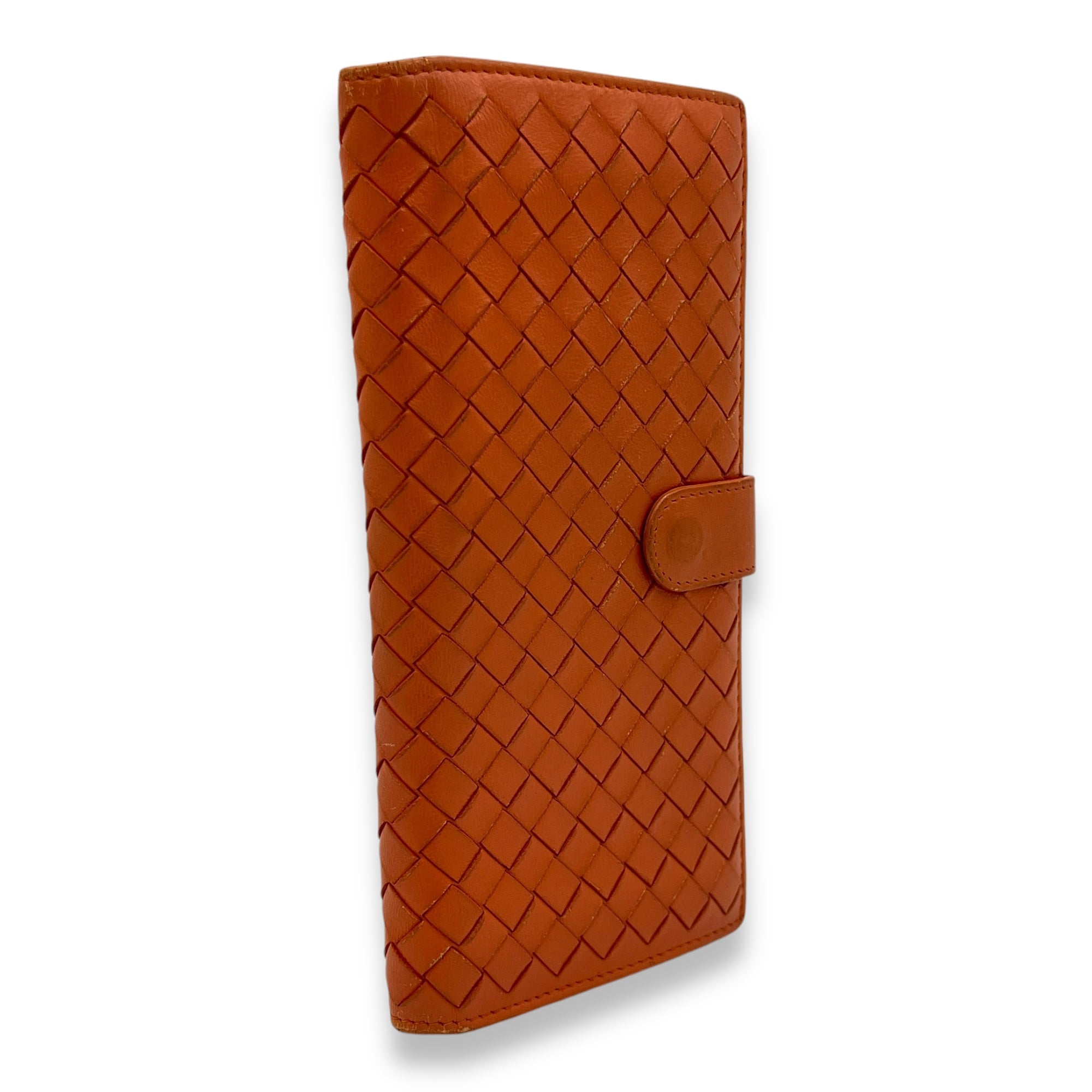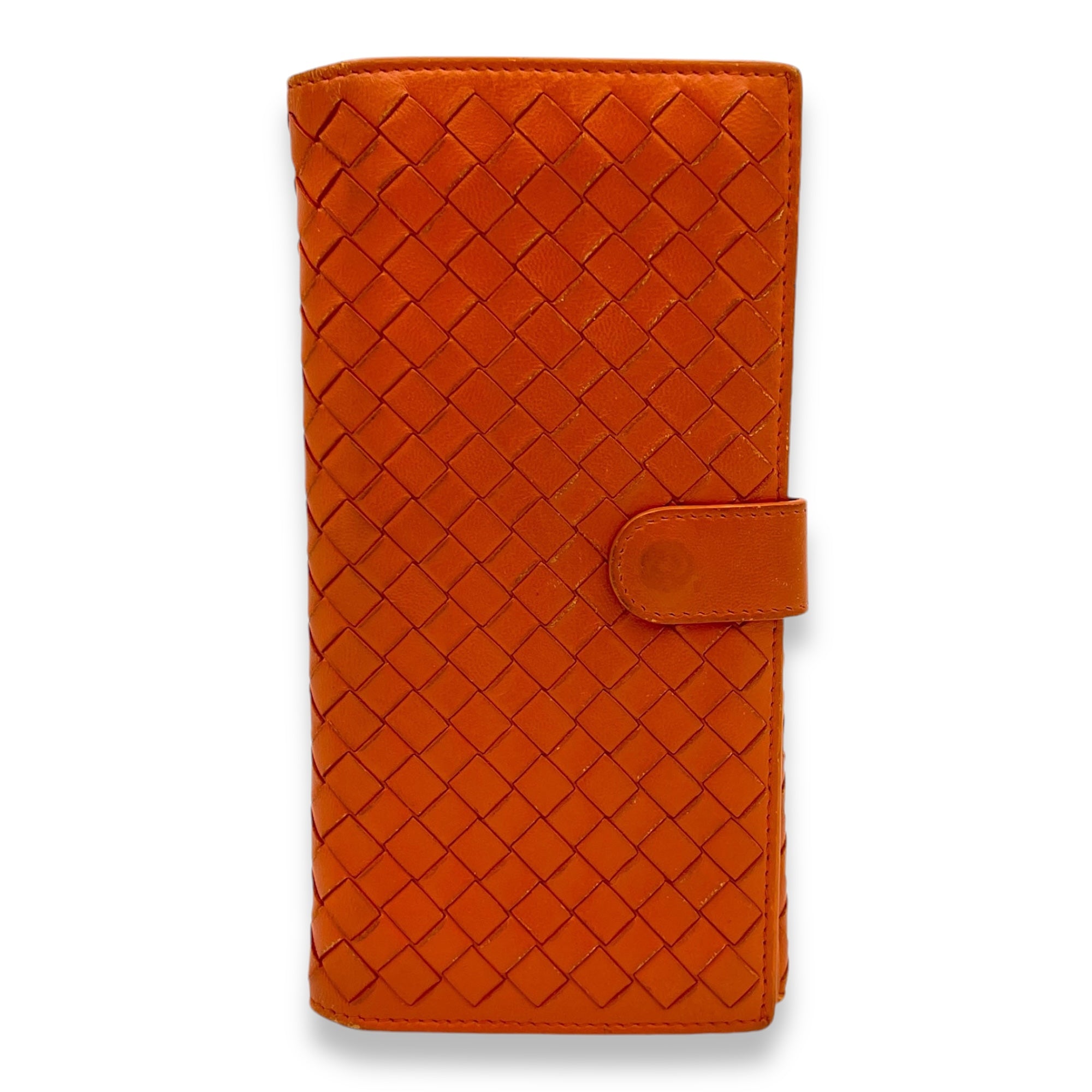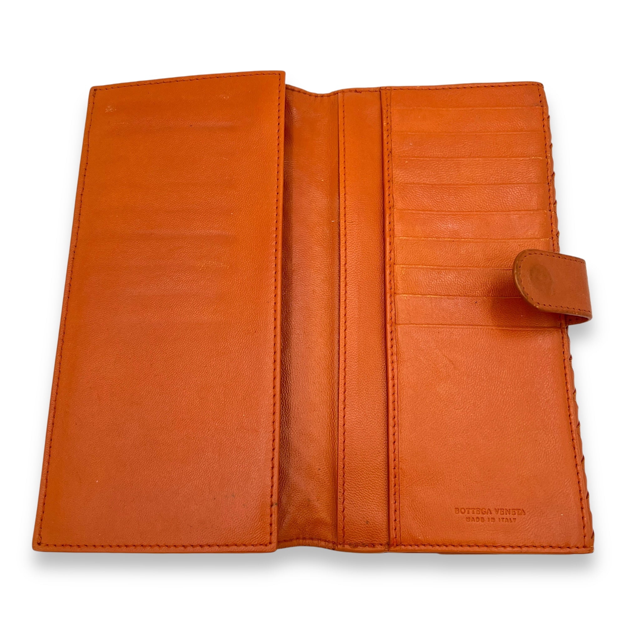 Small Leather Goods Bottega Veneta Long Wallet in Intrecciato leather, Silver Hardware Good Condition Orange Wallet Men Unisex