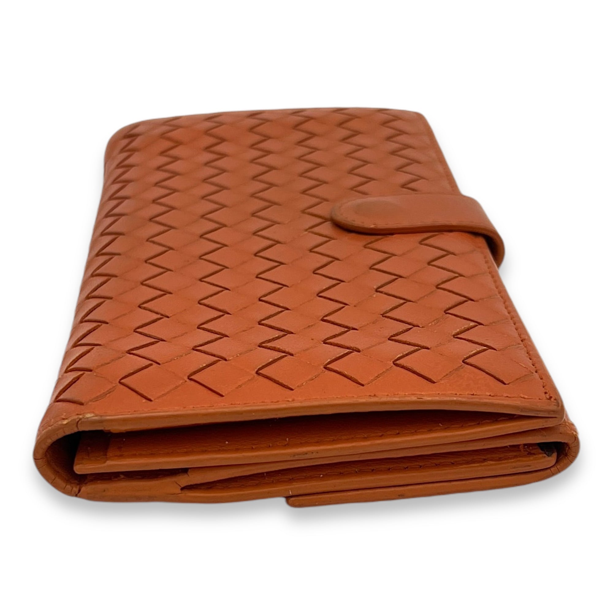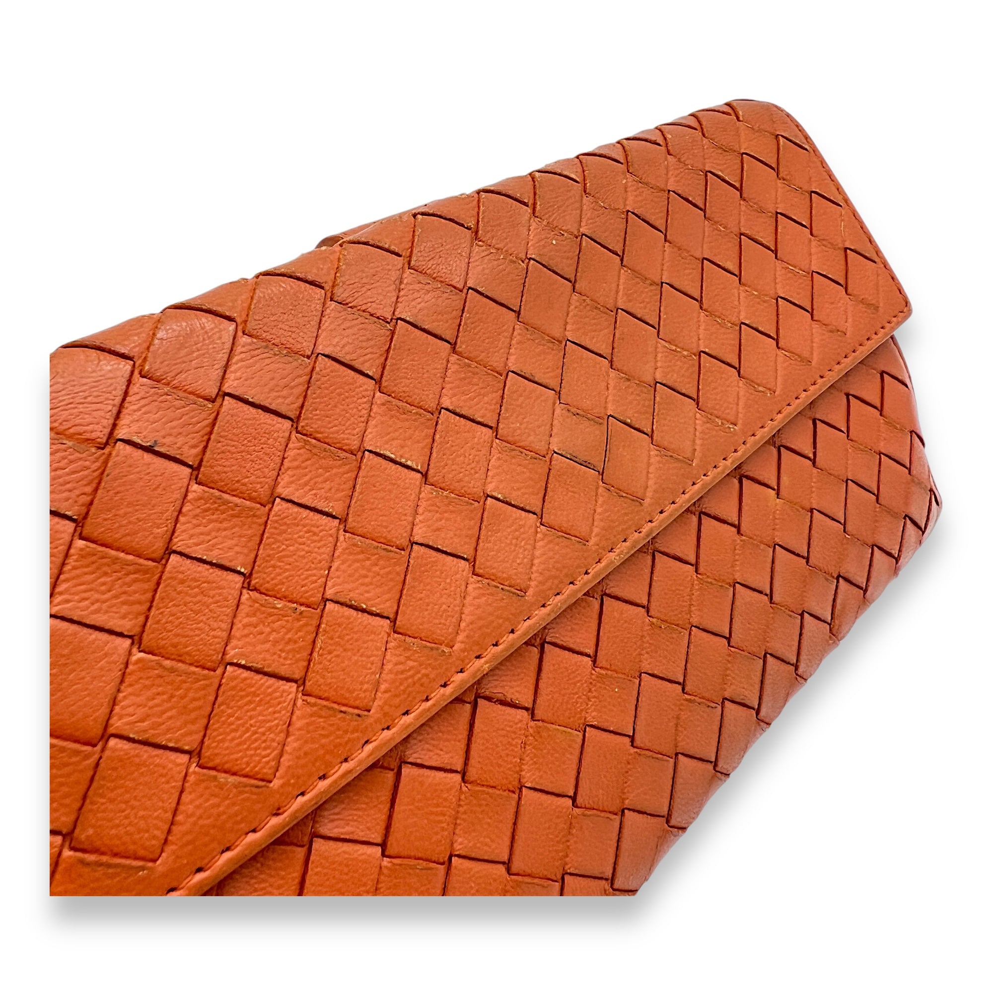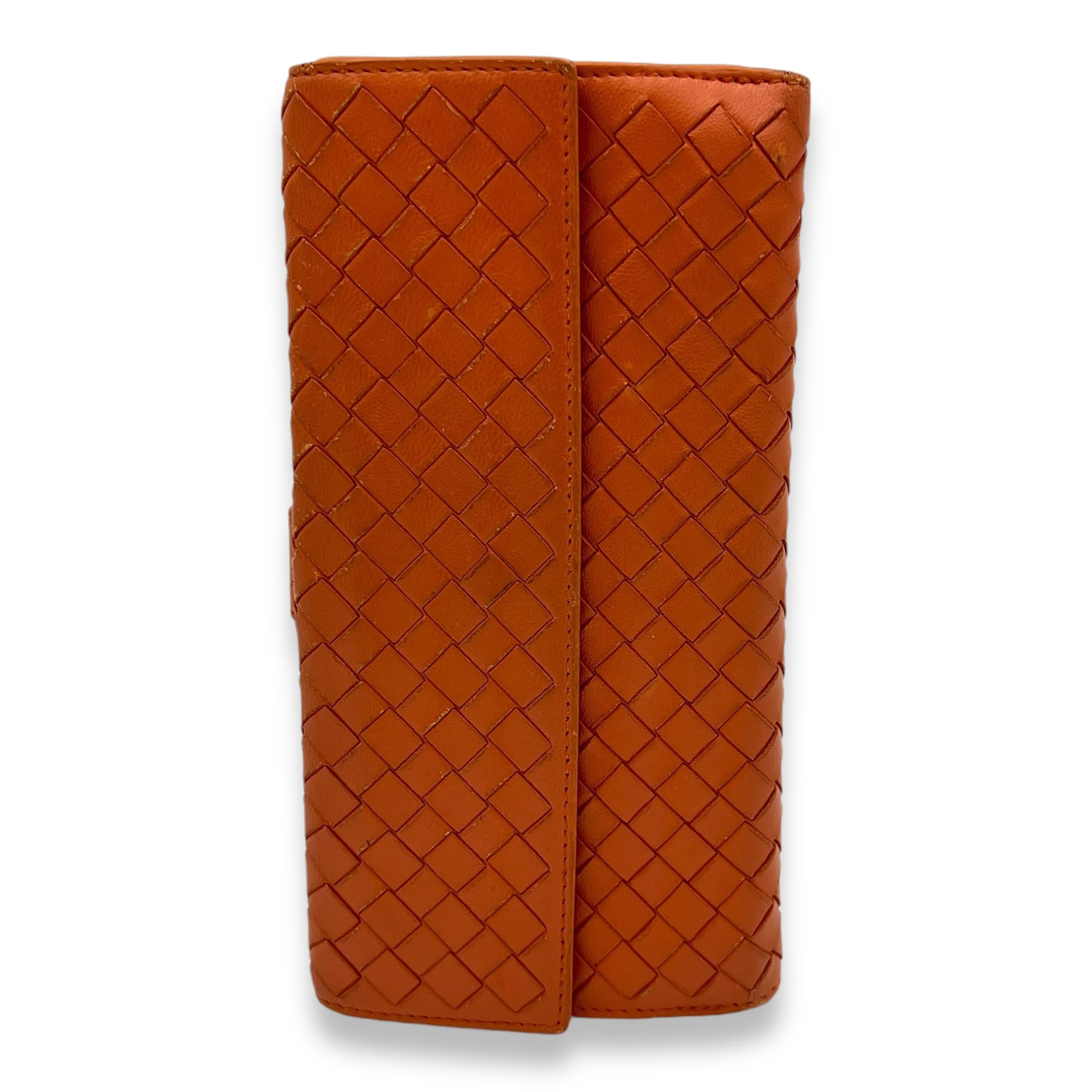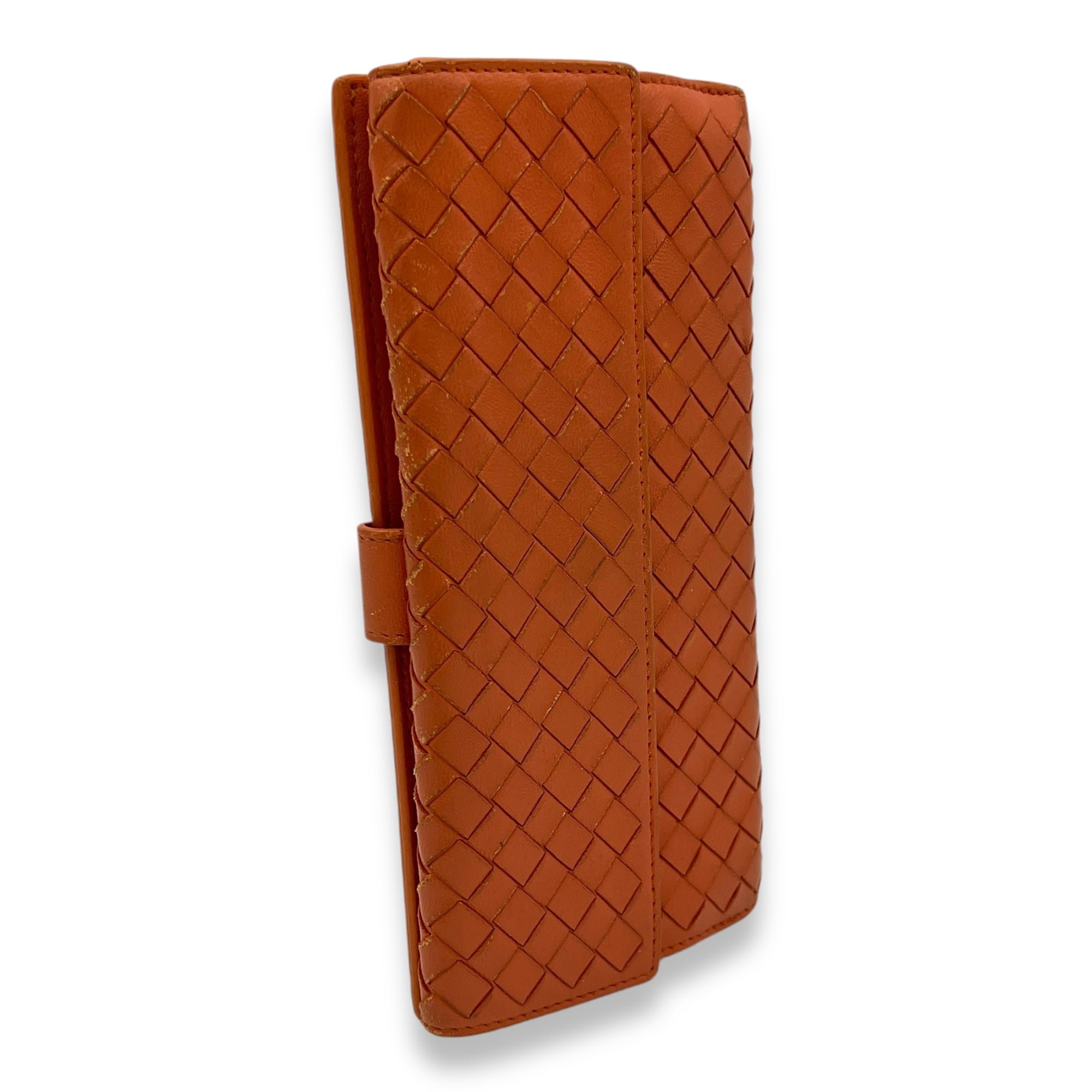 Small Leather Goods Bottega Veneta Long Wallet in Intrecciato leather, Silver Hardware Good Condition Orange Wallet Men Unisex