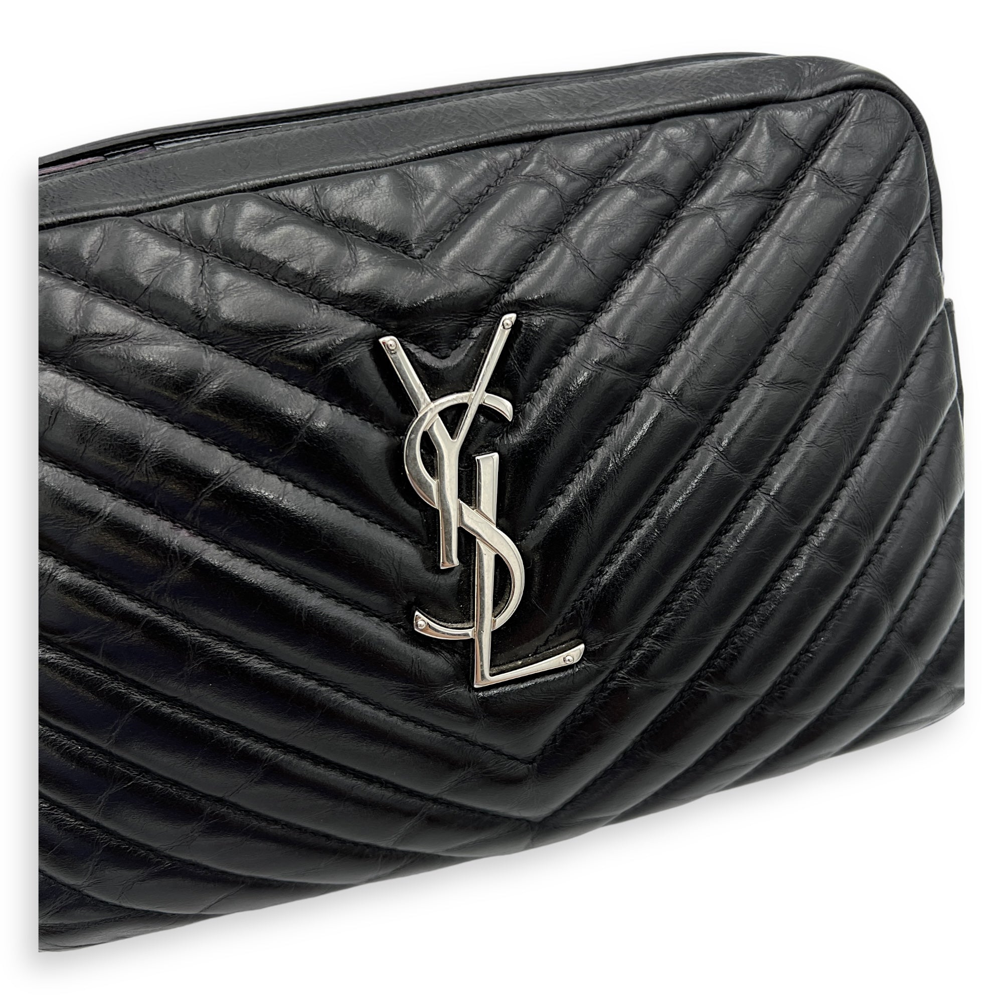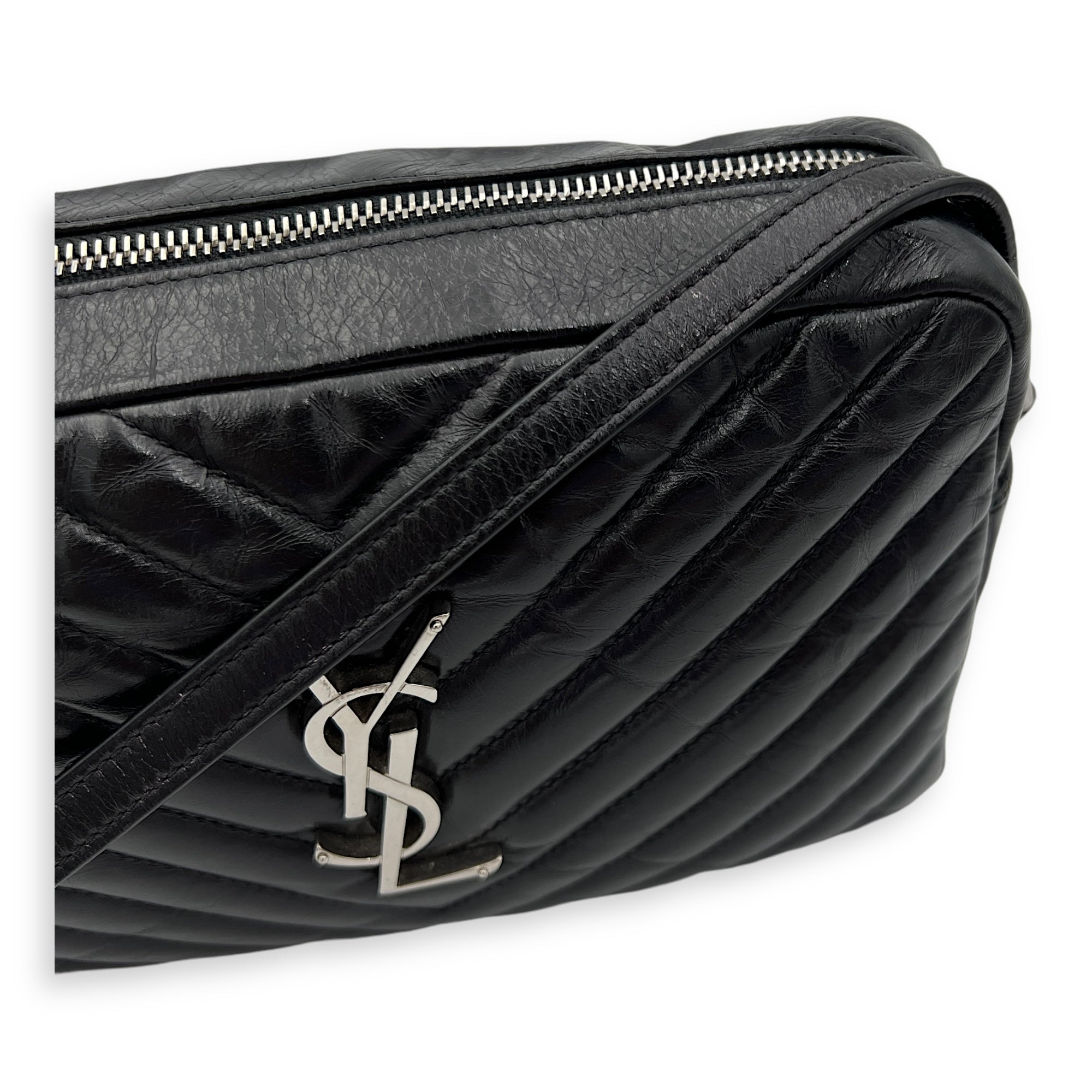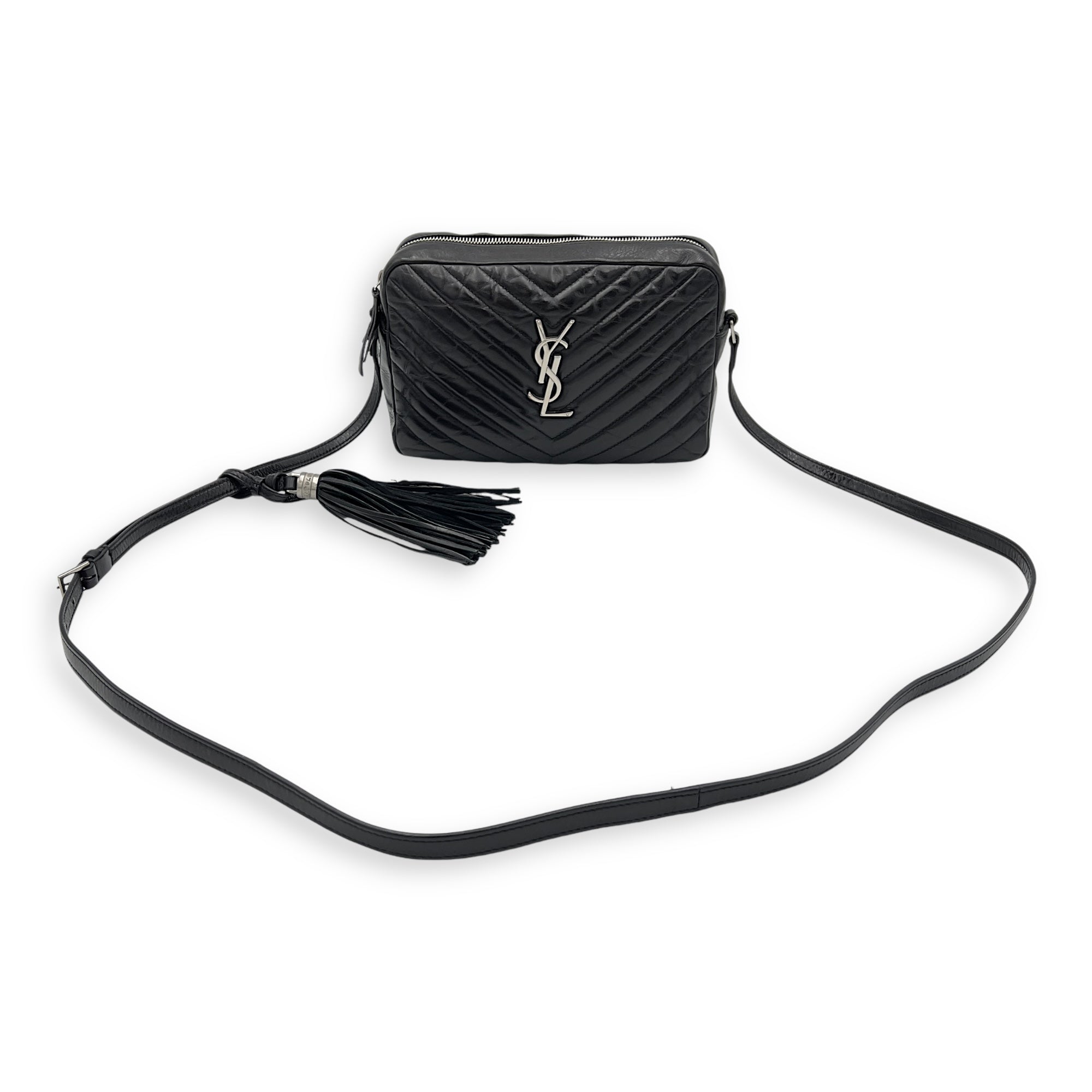 Bags Saint Laurent Lou Crossbody Bag Black in Calfskin, Silver hardware Good Condition Black Crossbody Bag Women Lady Girl