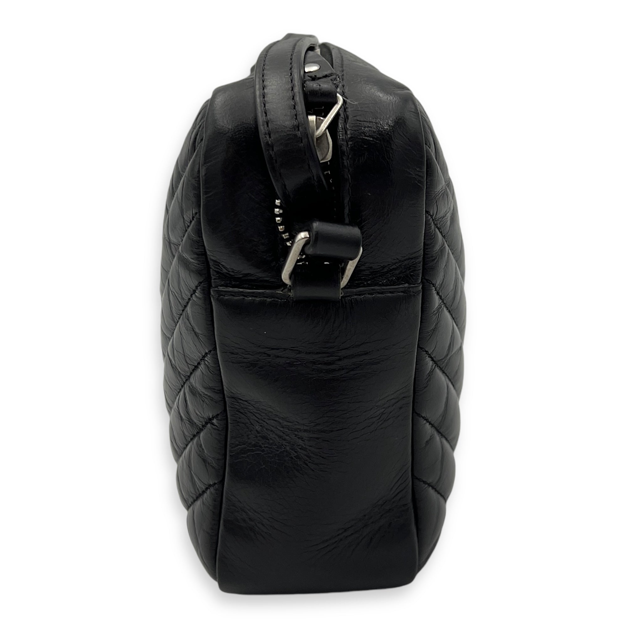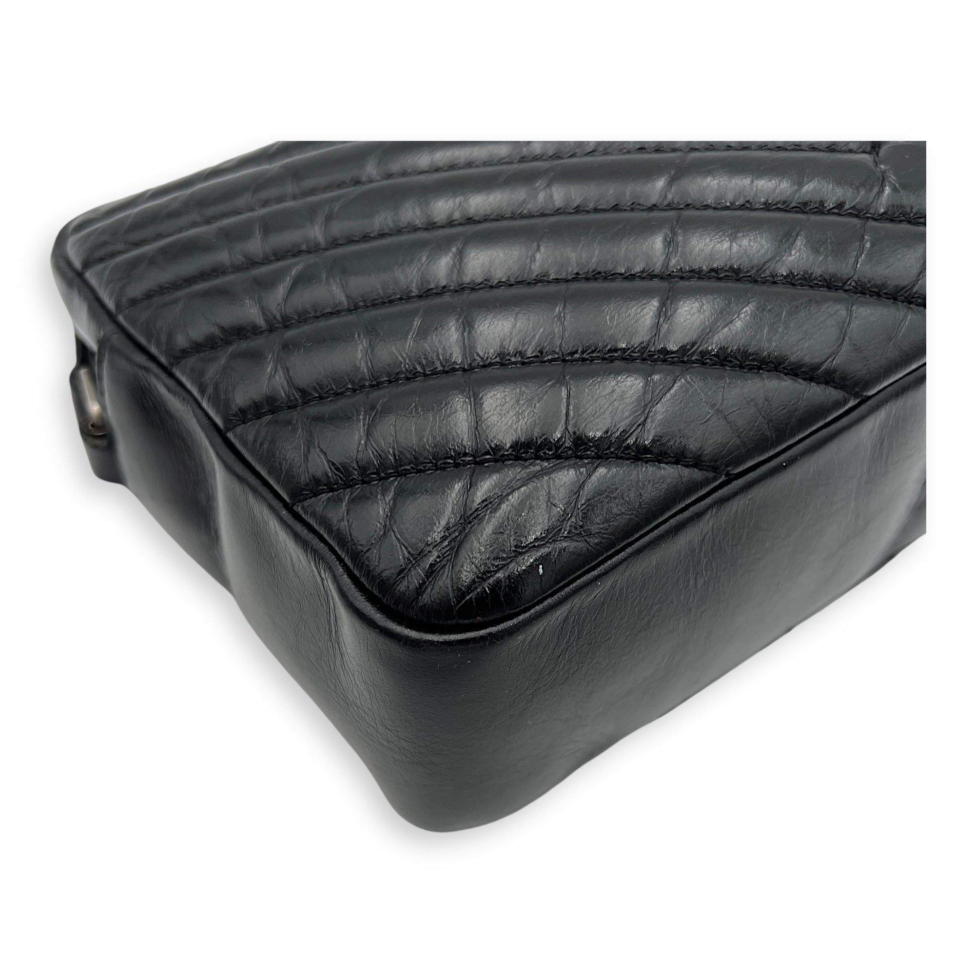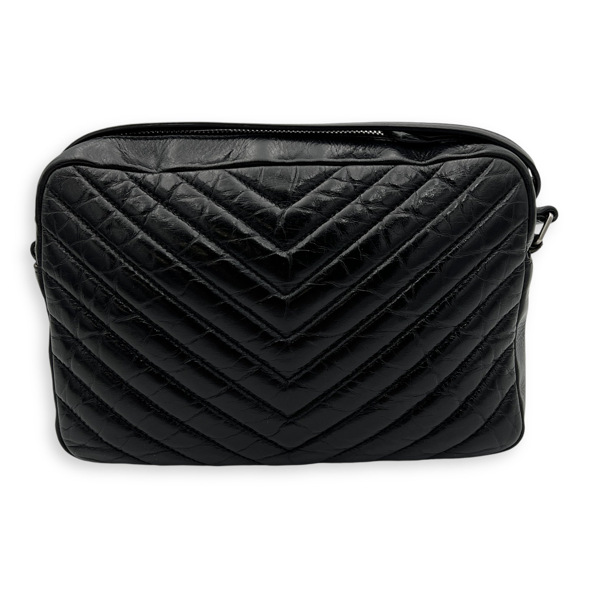 Bags Saint Laurent Lou Crossbody Bag Black in Calfskin, Silver hardware Good Condition Black Crossbody Bag Women Lady Girl
